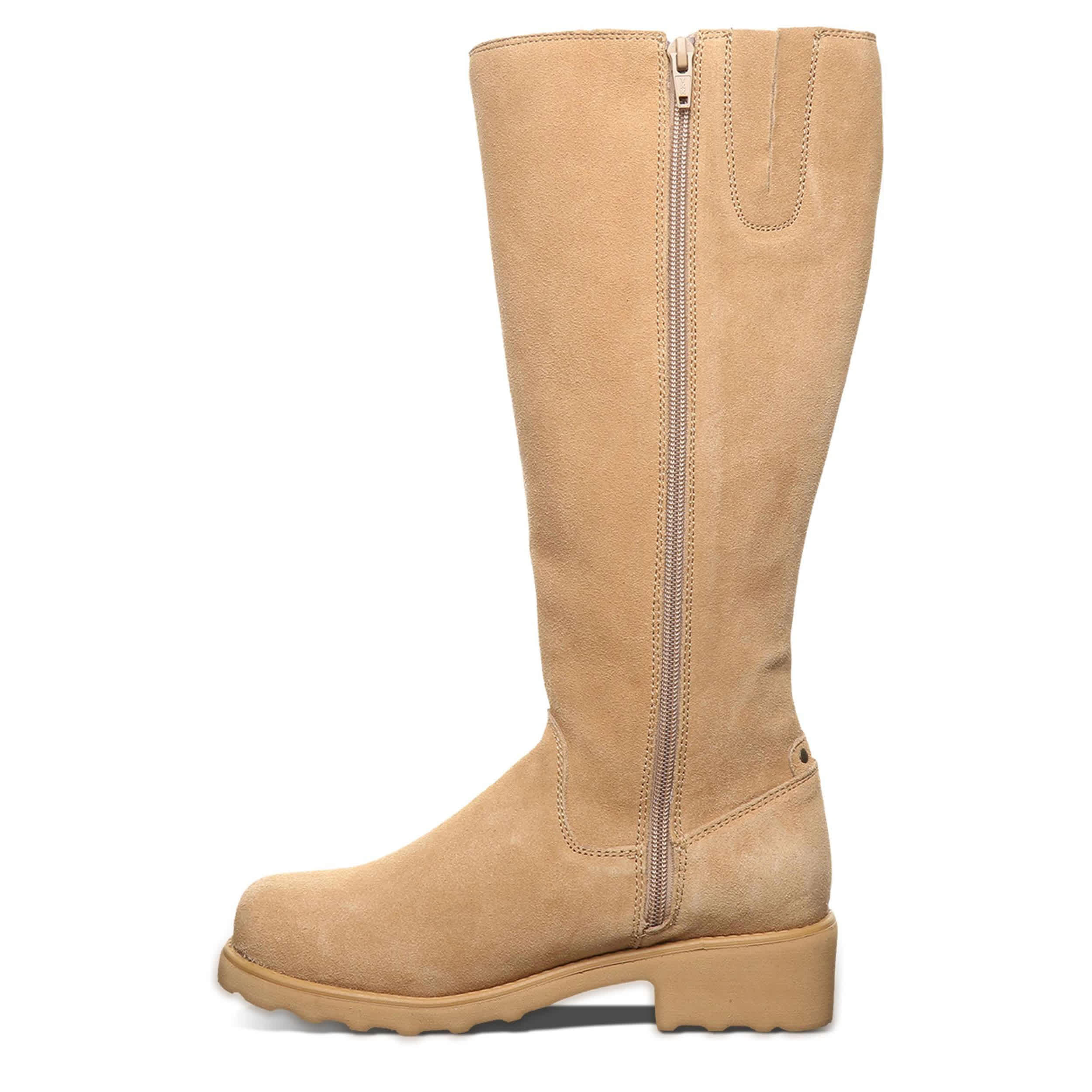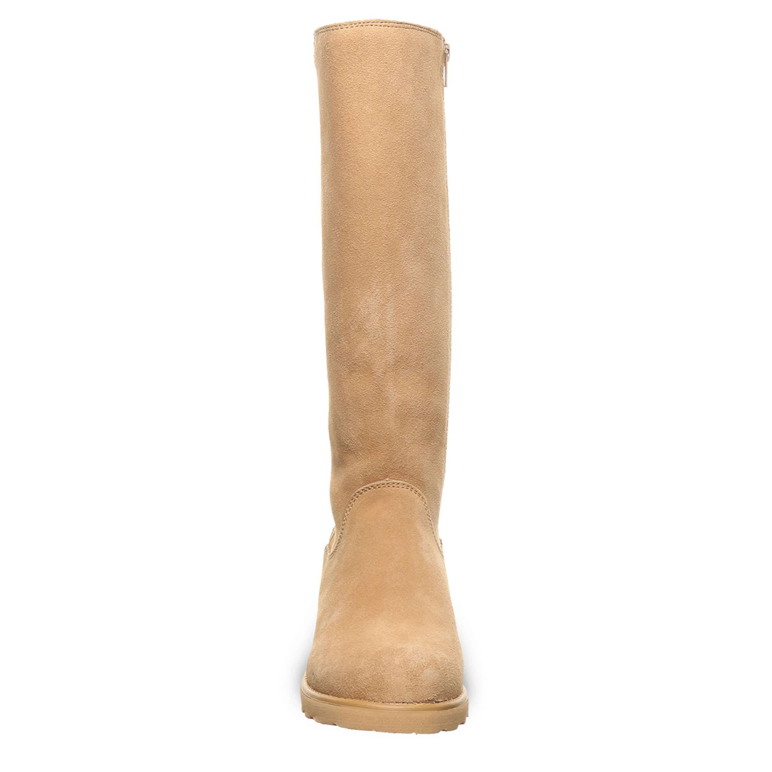 Show up in the Bearpaw Audrina women's tall boot. With a suede upper treated with BearCoatâ„¢ Rain and Stain Repellent for extra protection, these boots make an impression with no worries about snow or rain. Your feet will be soothed by the plush footbed and traction sole.