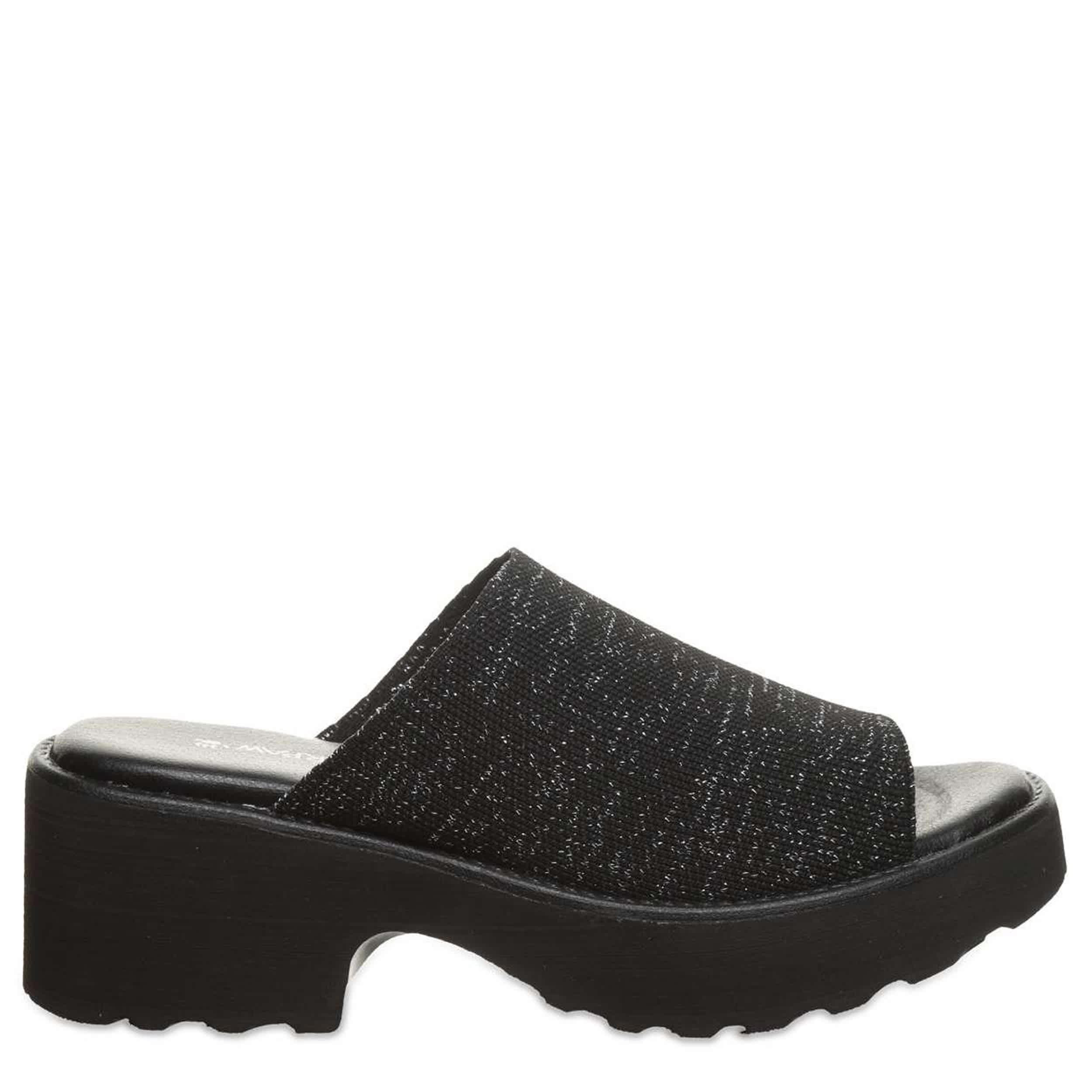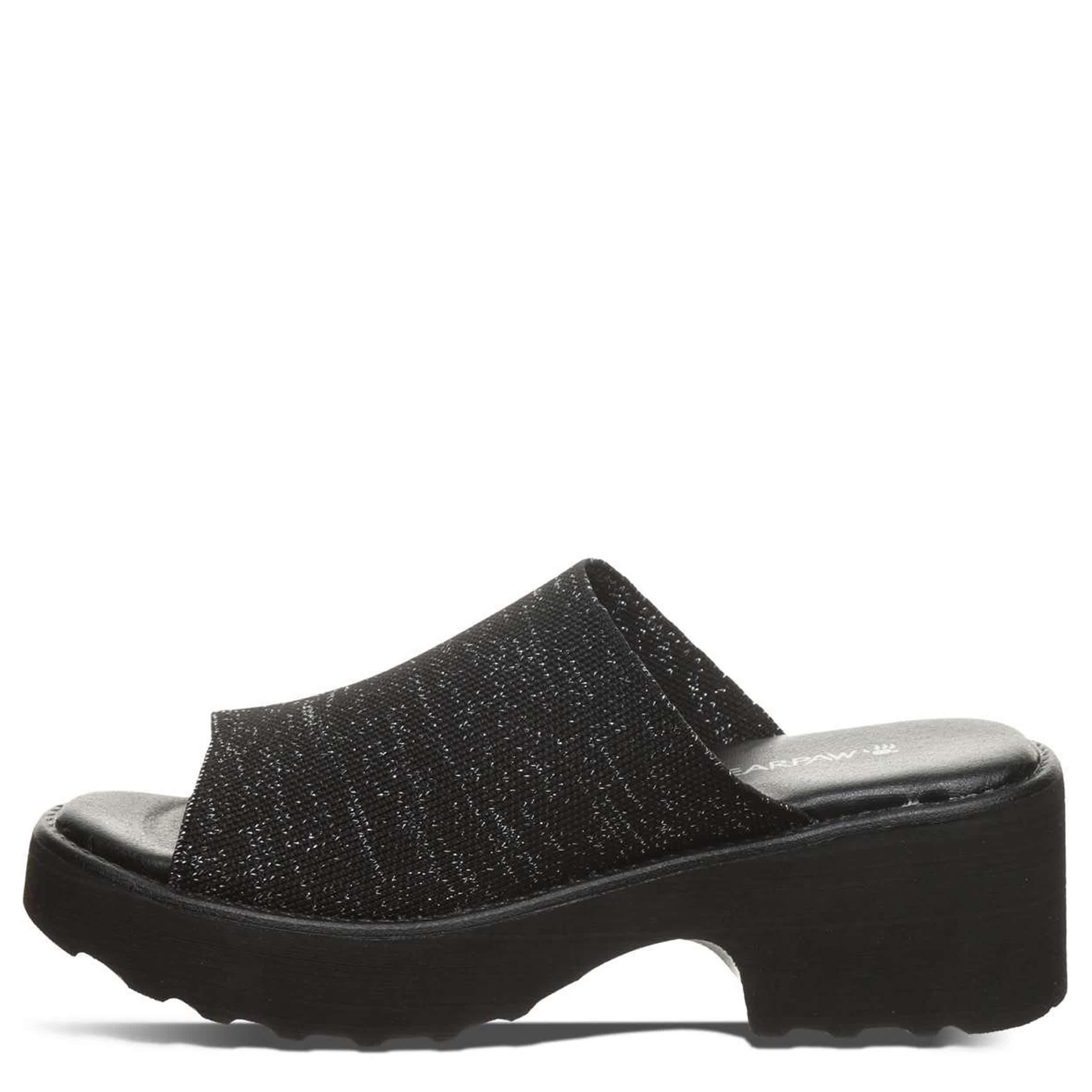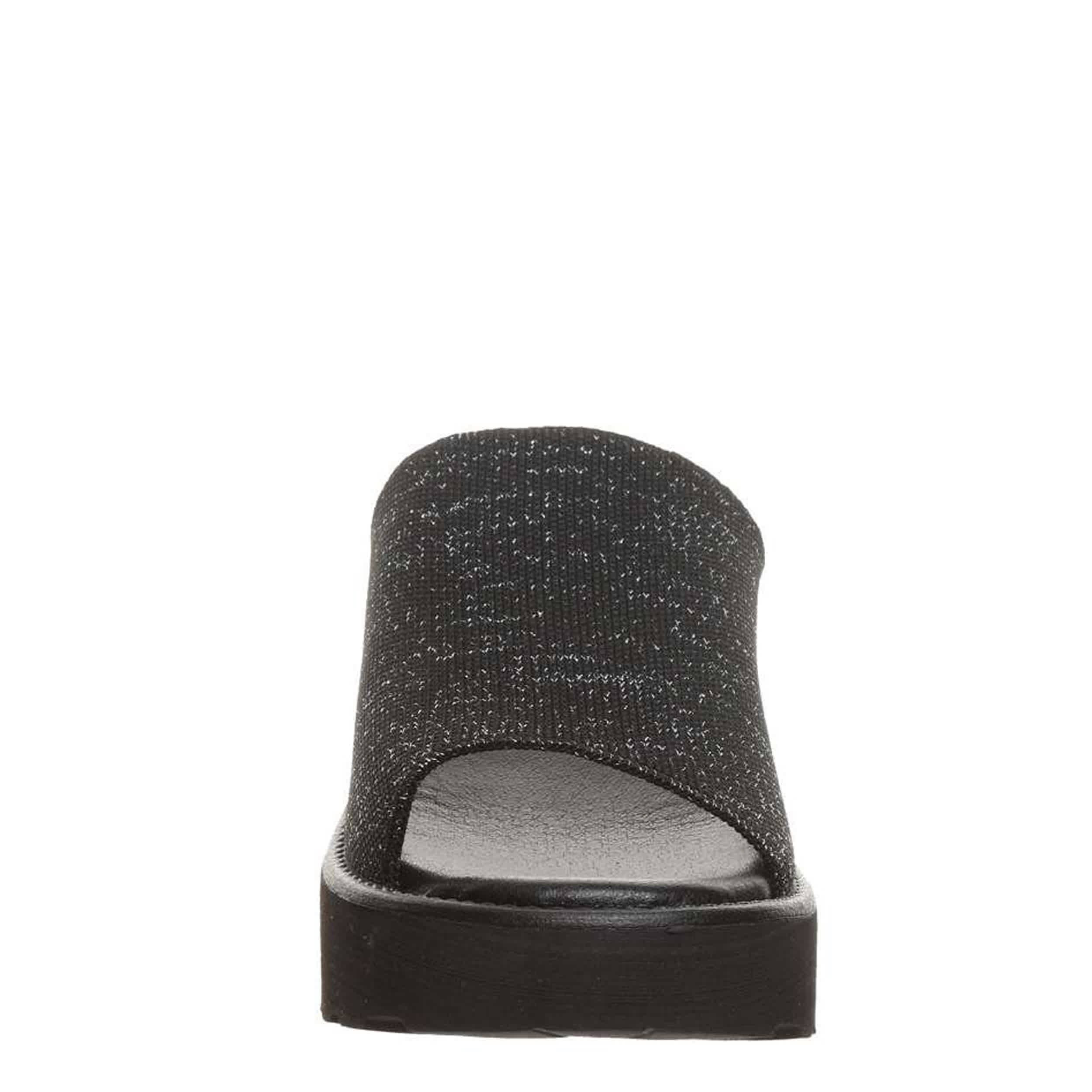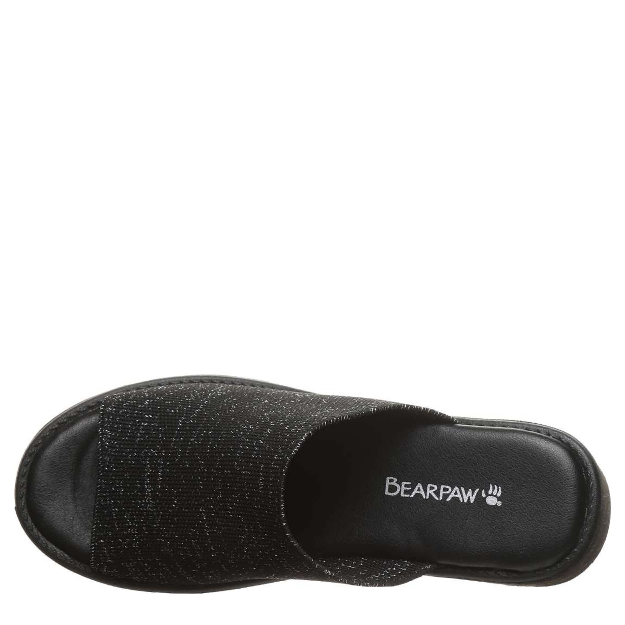 Flex your everyday style in the Blanche women's dress sandal from Bearpaw. Featuring a breathable knit upper that hugs the foot, this platform clog also has metallic flecks and a soft textile lining. The faux leather footbed comforts your foot, while the supportive outsole and platform add stable lift.