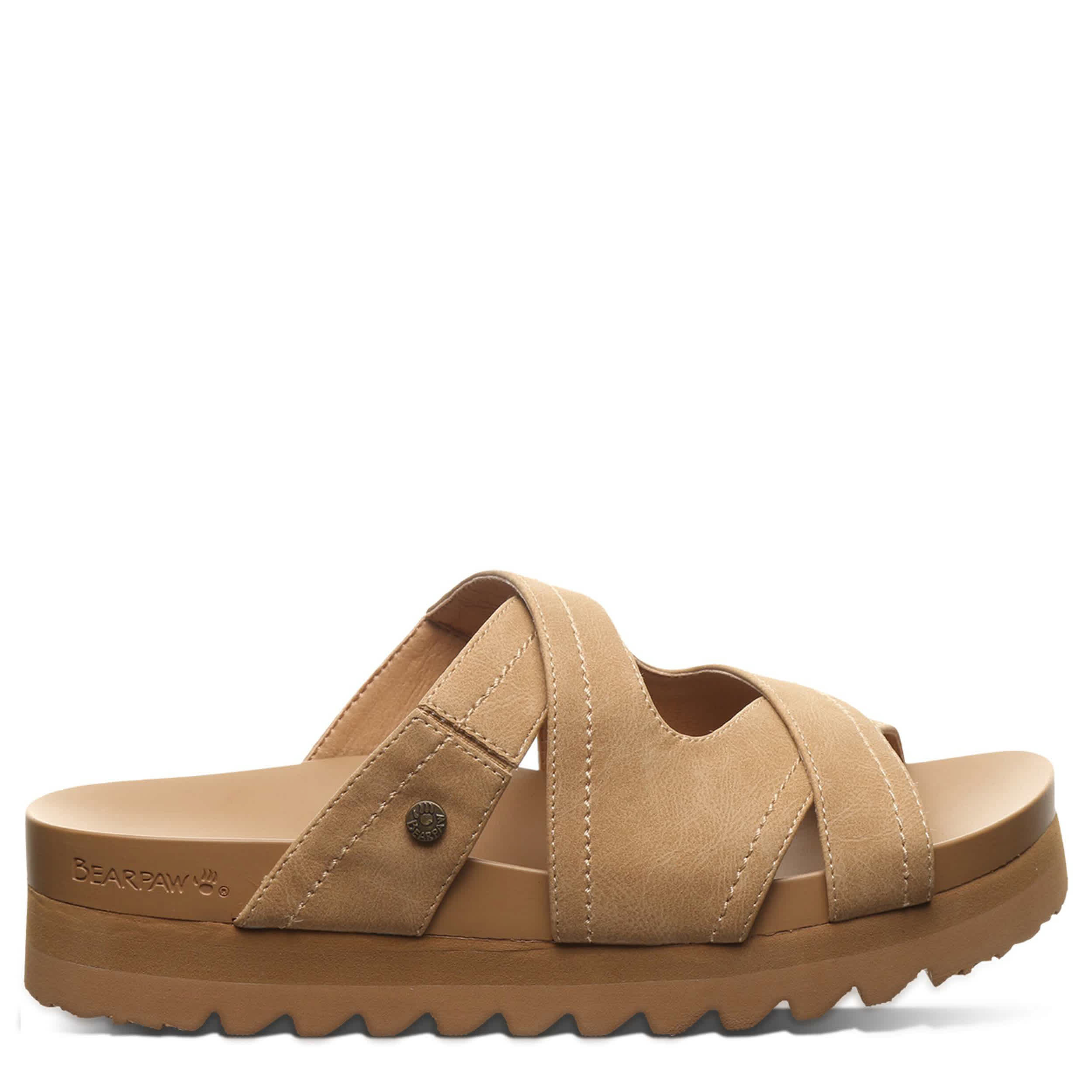 Whether you're running errands or going to eat with friends, the Crux slide sandal from Bearpaw has you covered. This shoe, with a strappy faux leather upper, is the perfect style for the summer. Designed with comfort in mind, this pair soothes your feet with a molded footbed & EVA midsole, and ensures lightweight, flexible steps with a shock absorbent rubber outsole.