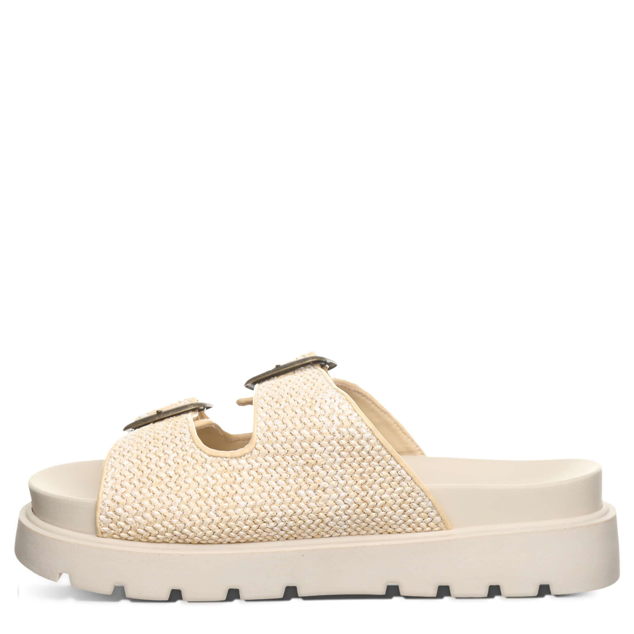 Summer chic in the Eternal slide sandal from Bearpaw. Featuring a woven raffia upper, this slip-on has wide straps with adjustable buckles for a stylish touch. Enjoy cradling support with the molded footbed, while the platform adds nice lift.