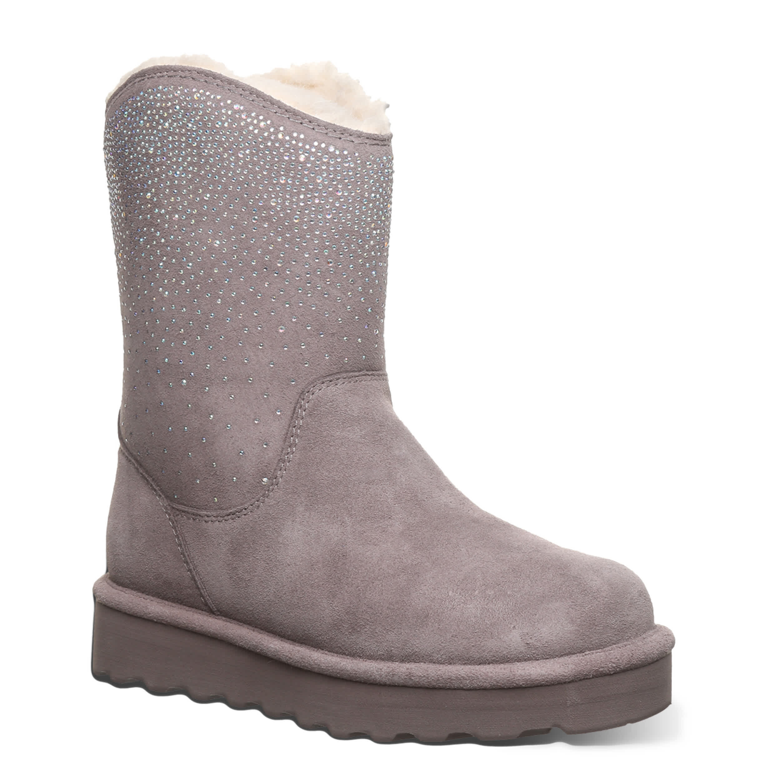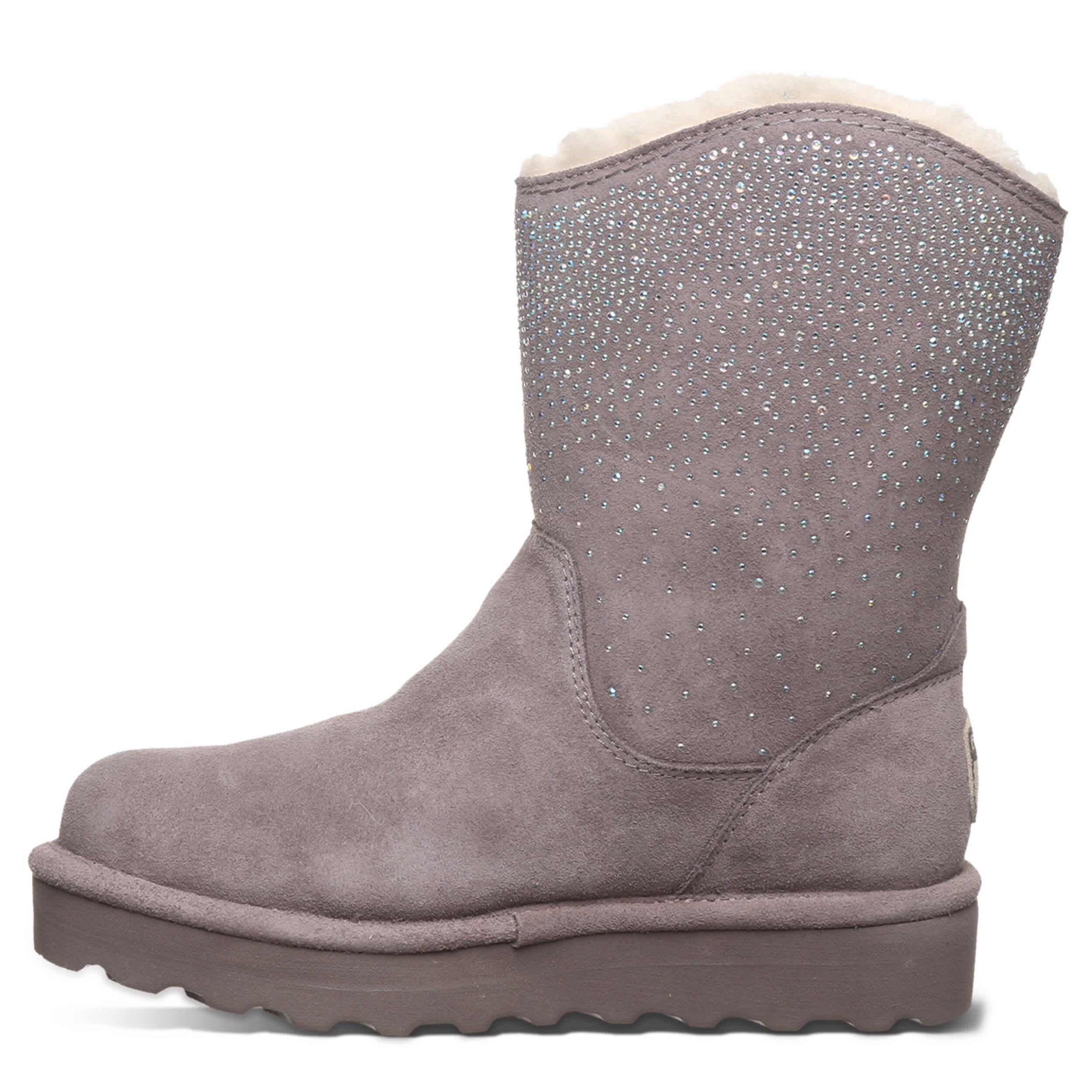 Comfort feels a bit Western in the Glam Platform Lo boot from Bearpaw. Featuring rhinestones on suede with a warm lining to block the chilly temps, this boot won't stop from the couch to the mall. A removable footbed cushions over a platform that adds just enough lift.