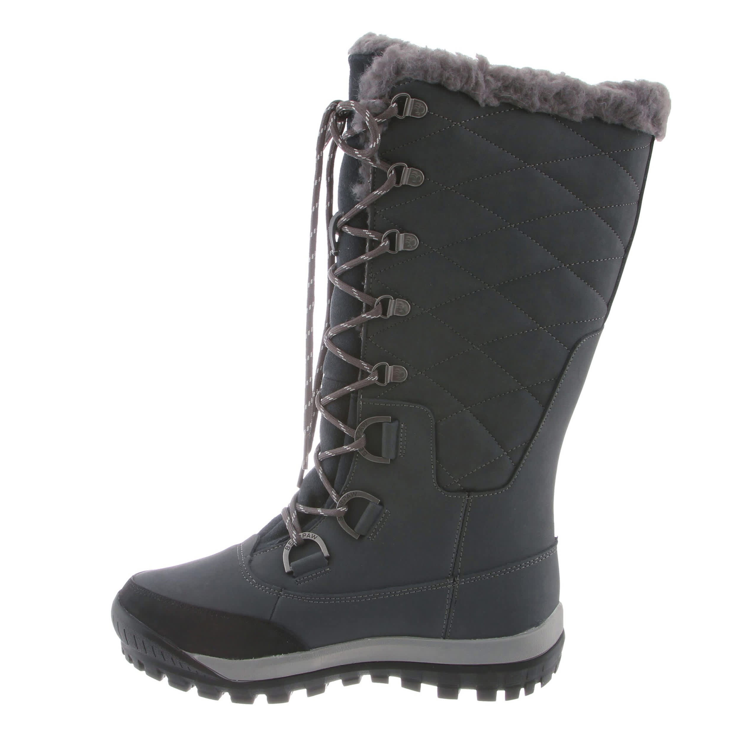 Fashion and function pair perfectly with this Isabella women's snow boot from Bearpaw. The waterproof leather upper has a beautiful quilted pattern with a wool collar foraddedstyle. The wool lining will keep your foot nice and toasty, while the rubber outsole provides grip and traction. This is the perfect boot to take on the winter weather in style.