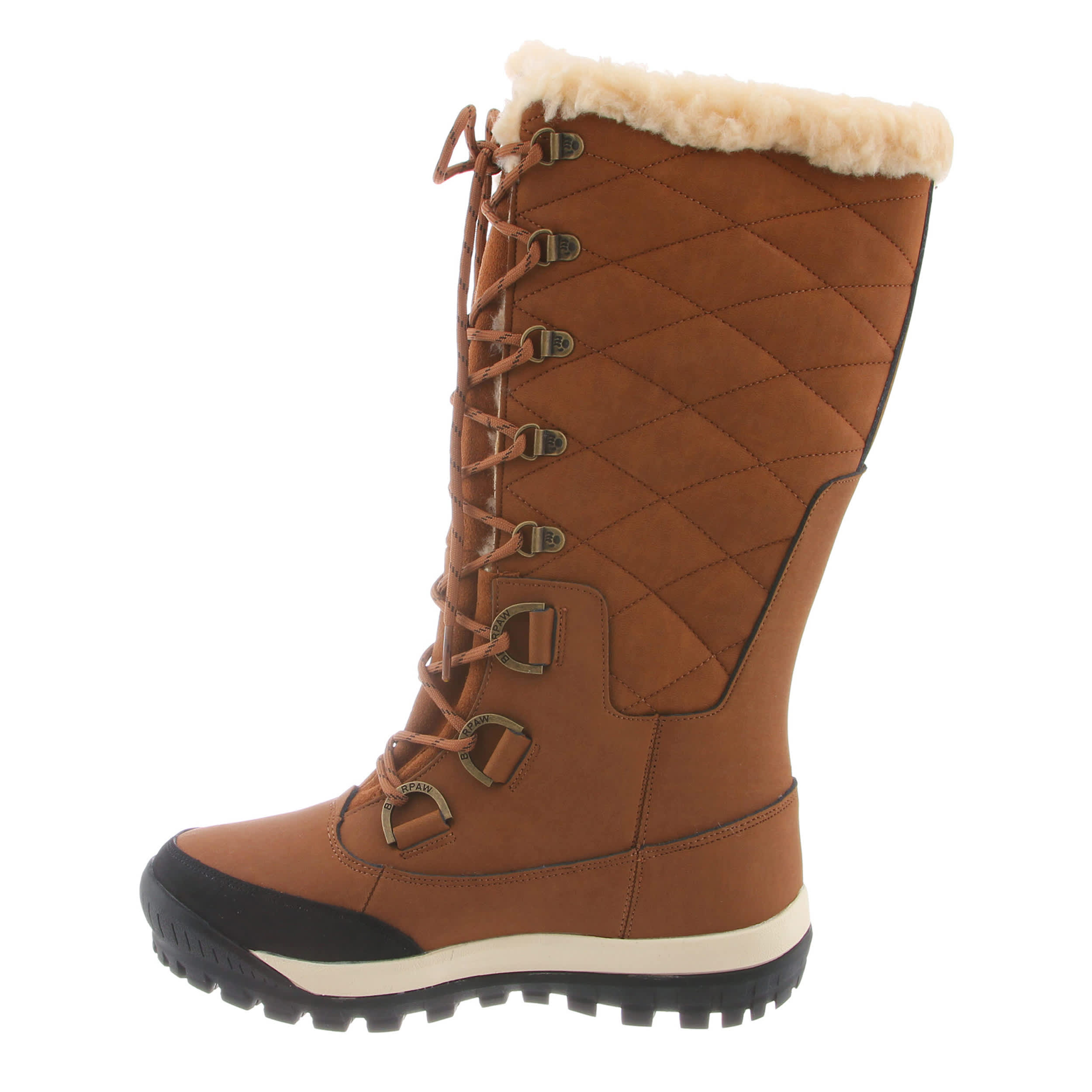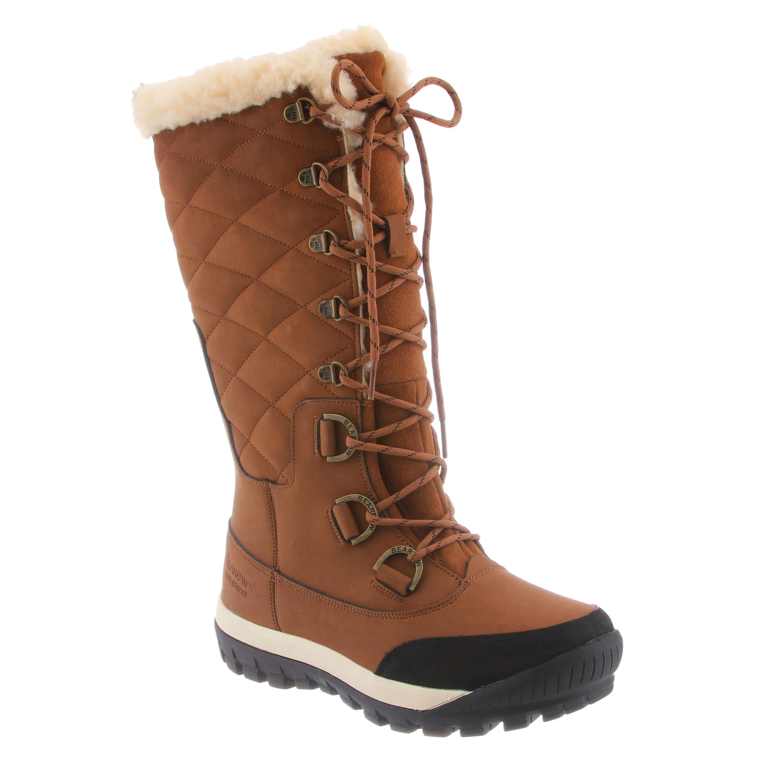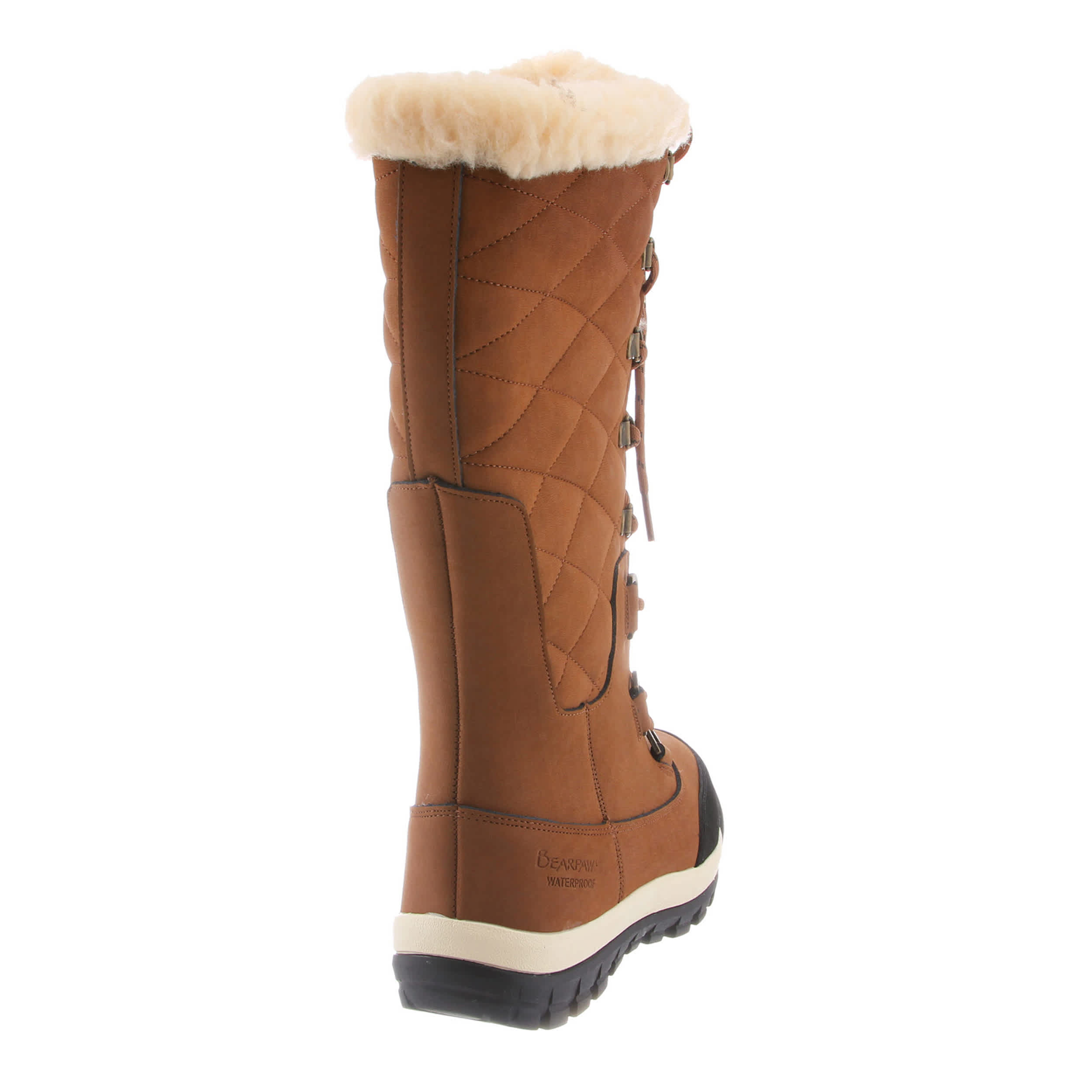 Fashion and function pair perfectly with this Isabella women's snow boot from Bearpaw. The waterproof leather upper has a beautiful quilted pattern with a wool collar foraddedstyle. The wool lining will keep your foot nice and toasty, while the rubber outsole provides grip and traction. This is the perfect boot to take on the winter weather in style.