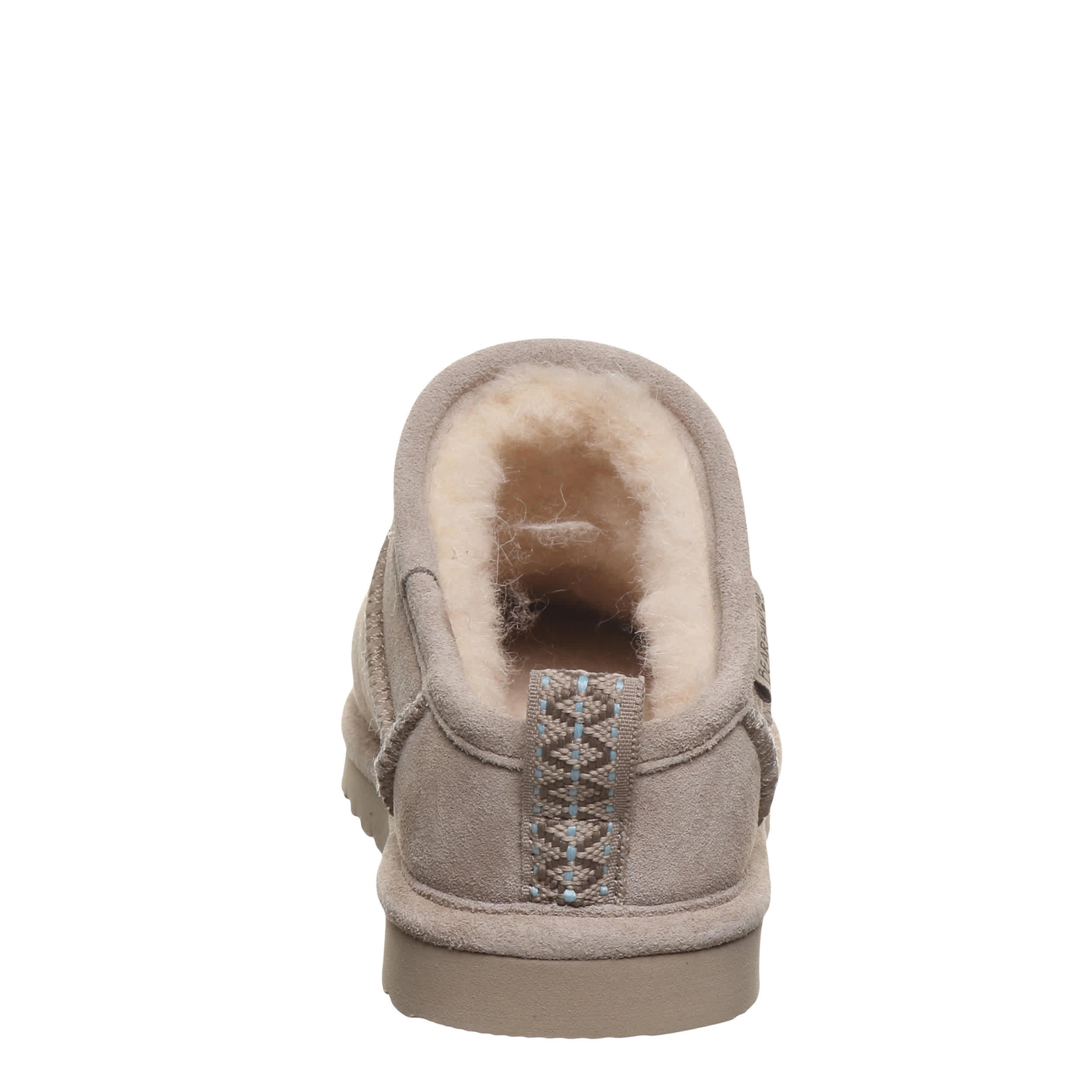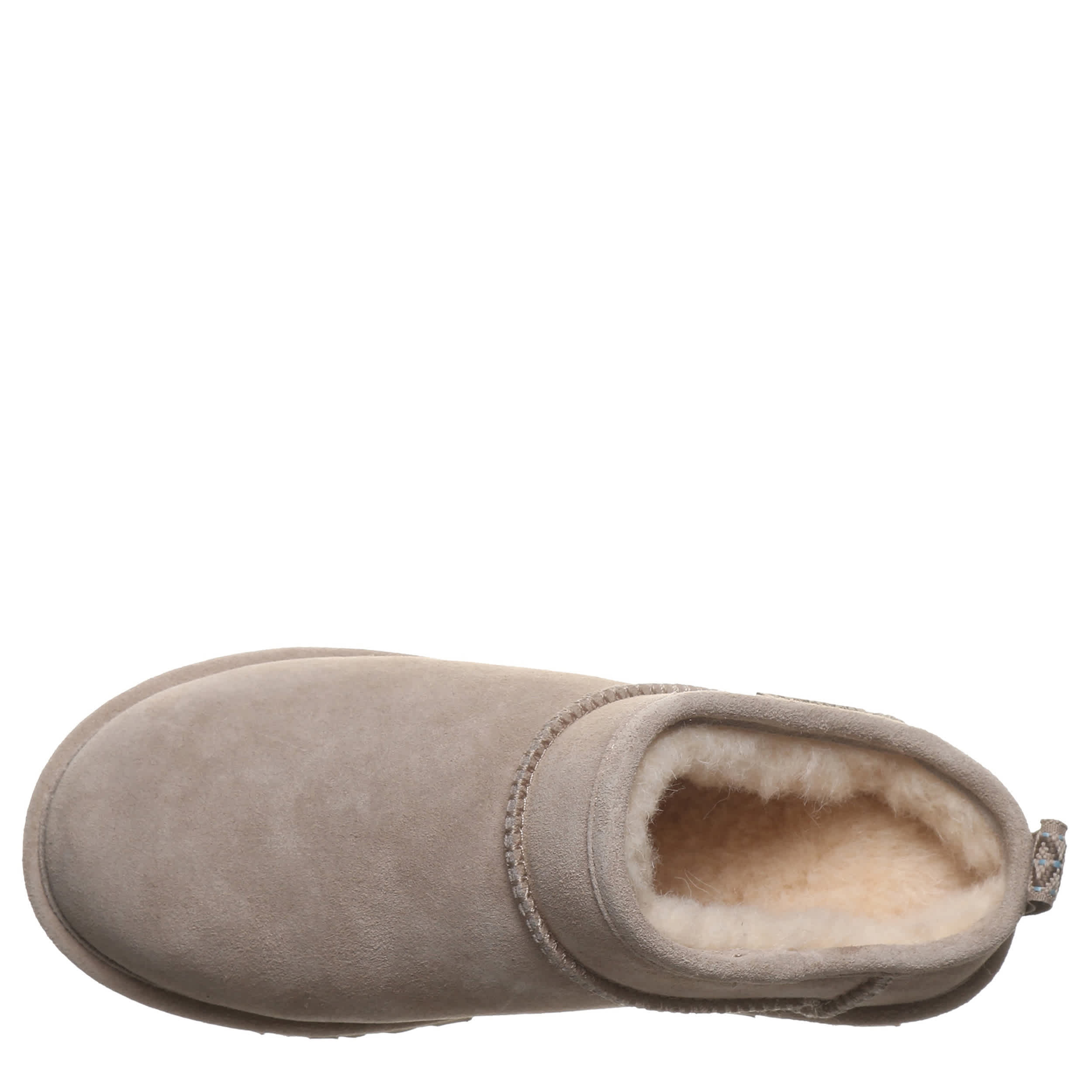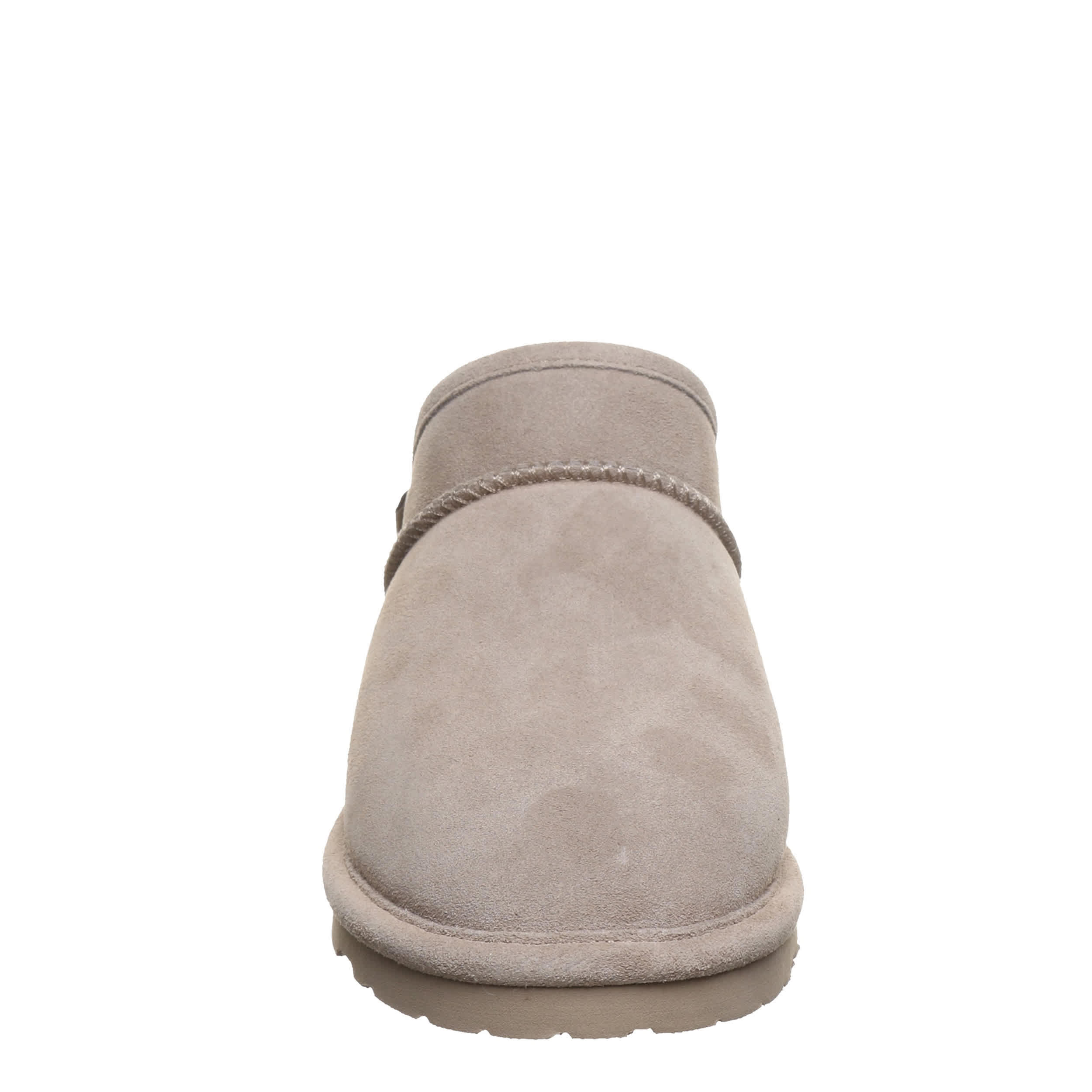 Enjoy slow starts in the Kam women's slipper from Bearpaw. With a suede upper featuring a slightly angled design for easier entry, this slipper cradles your foot. The wool blend lining is comfortably warm, while the lightweight outsole keeps you supported.