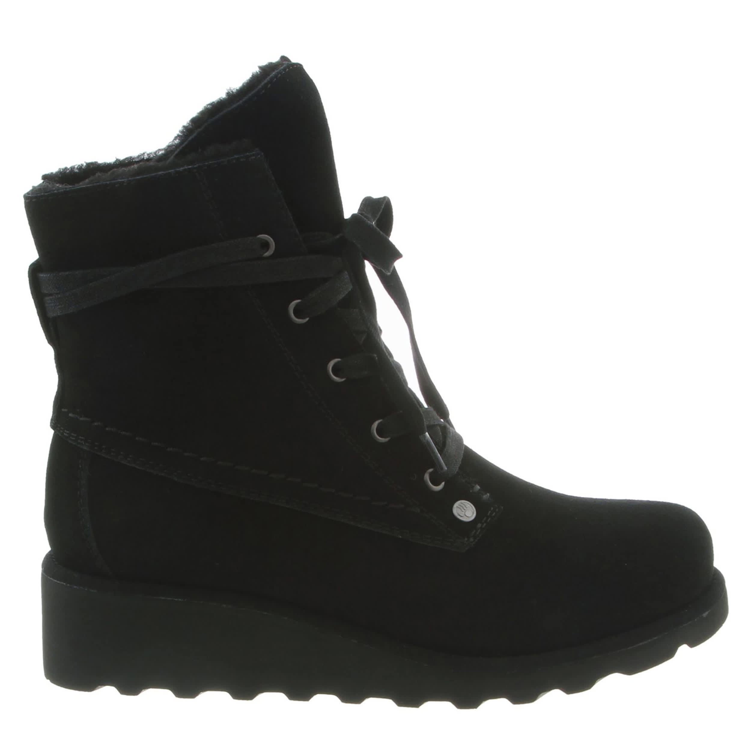 Head out into the world confidently with the Bearpaw Krista Wide women's wedge boot. Featuring a suede upper and lace-up closure, this mid-high boot provides loads of comfort with a cushioned insole and slightly larger leg opening. Treated with BearCoatâ„¢ Rain and Stain Repellent and a wool blend lining to keep your feet warm and dry.