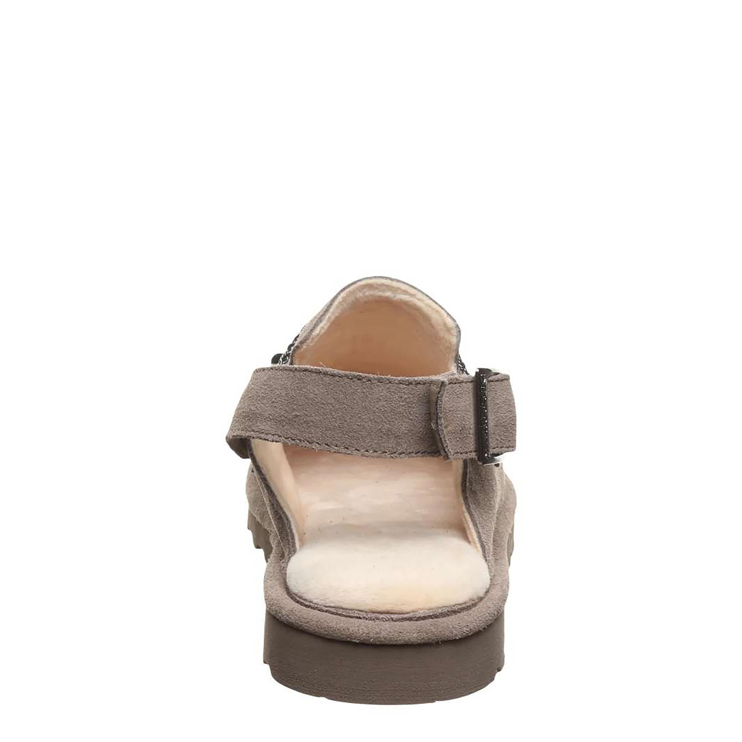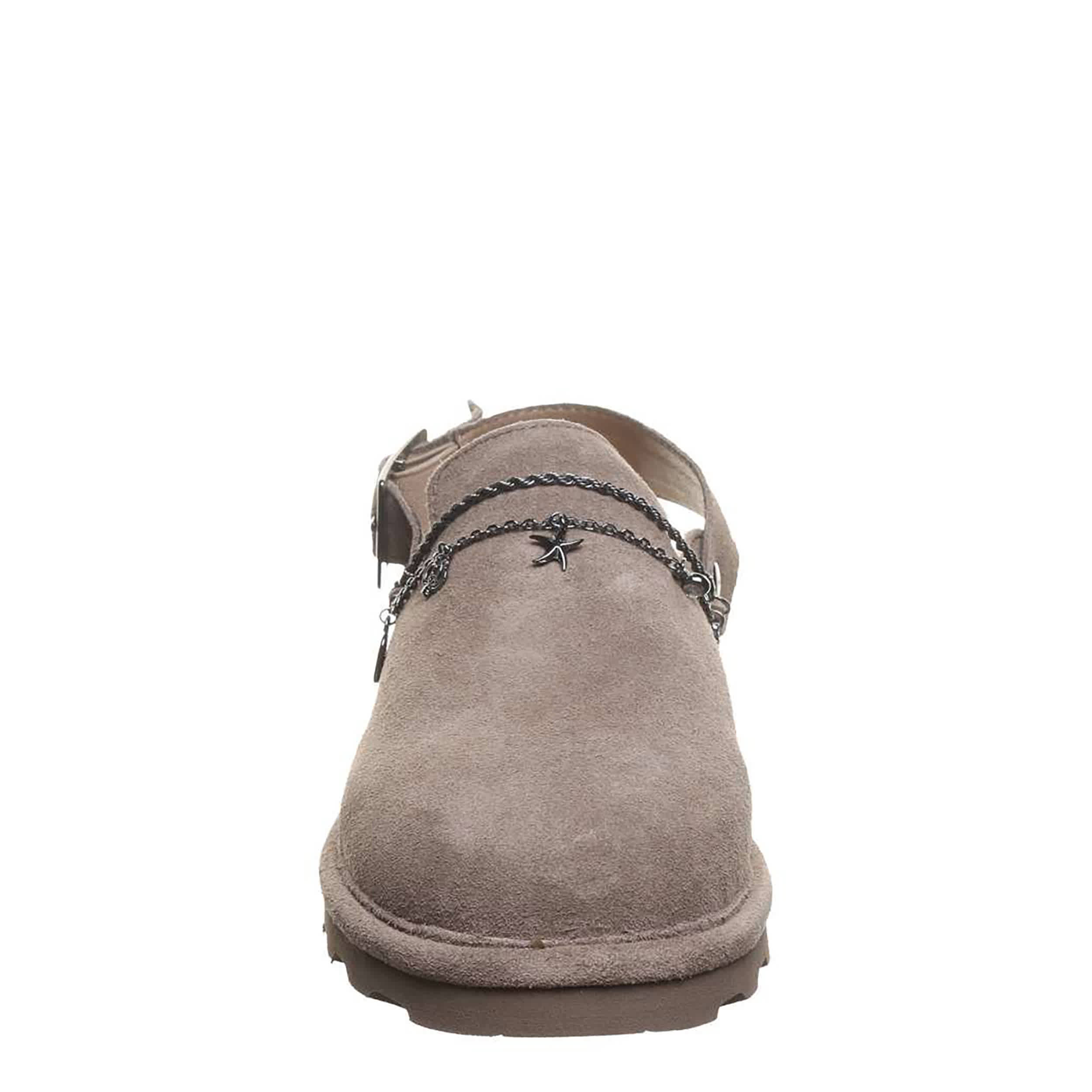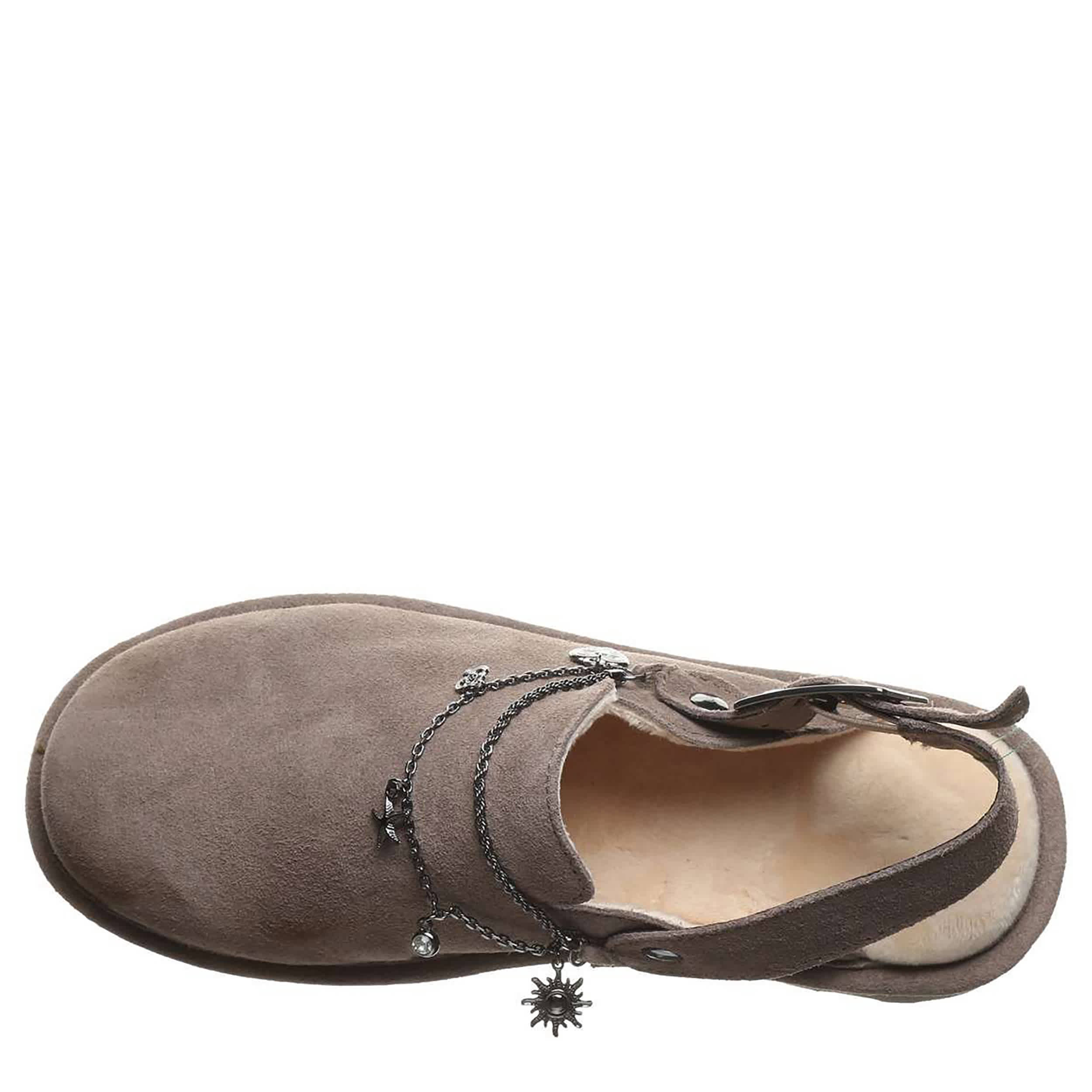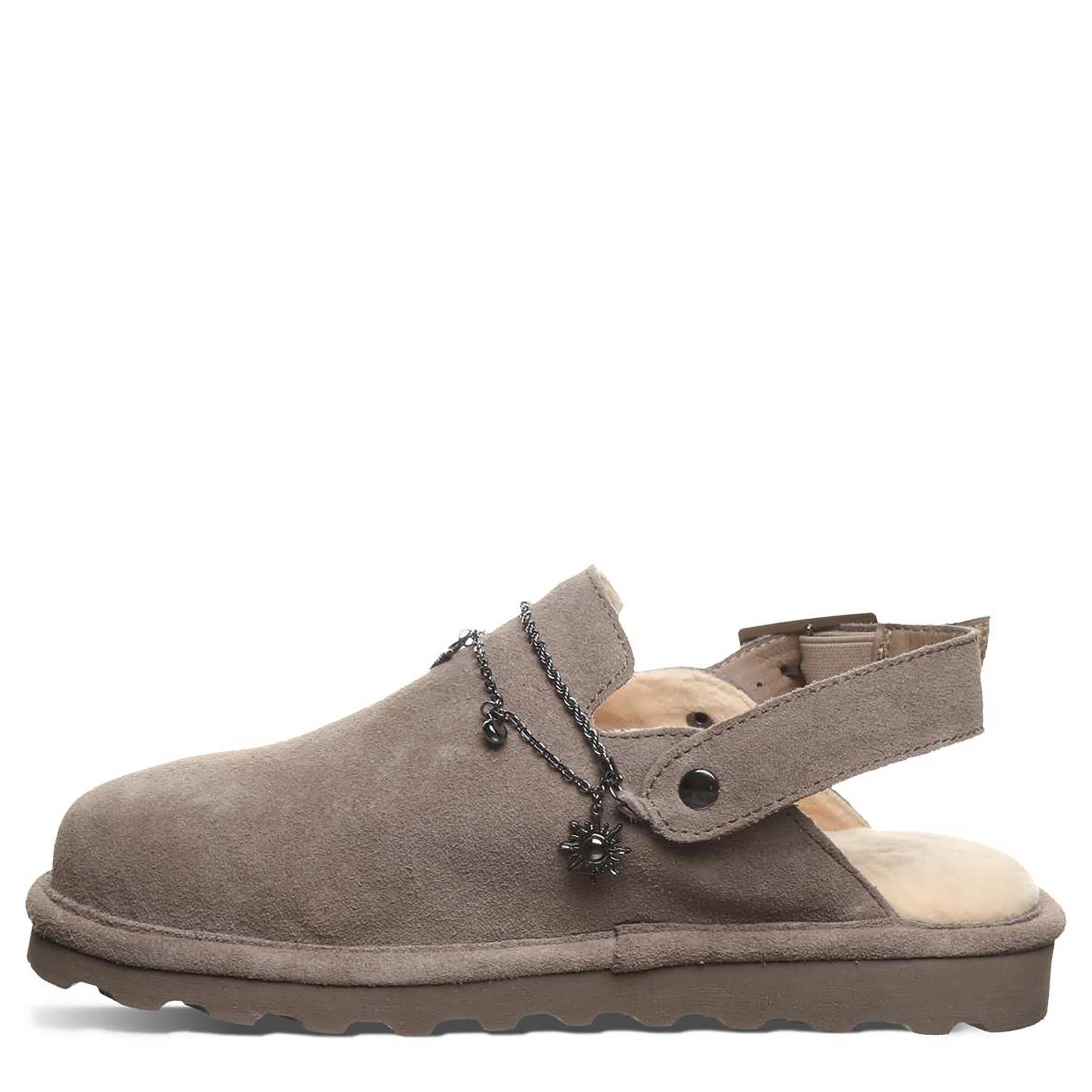 On trend and cozy, the Bearpaw Lexi women's slipper has a delicate charm chain for full-on shoelery. Featuring a suede upper and plush faux shearling, these shoes also have a slingback strap that adjusts for a great fit. The cushy footbed may mean you never take them off.
