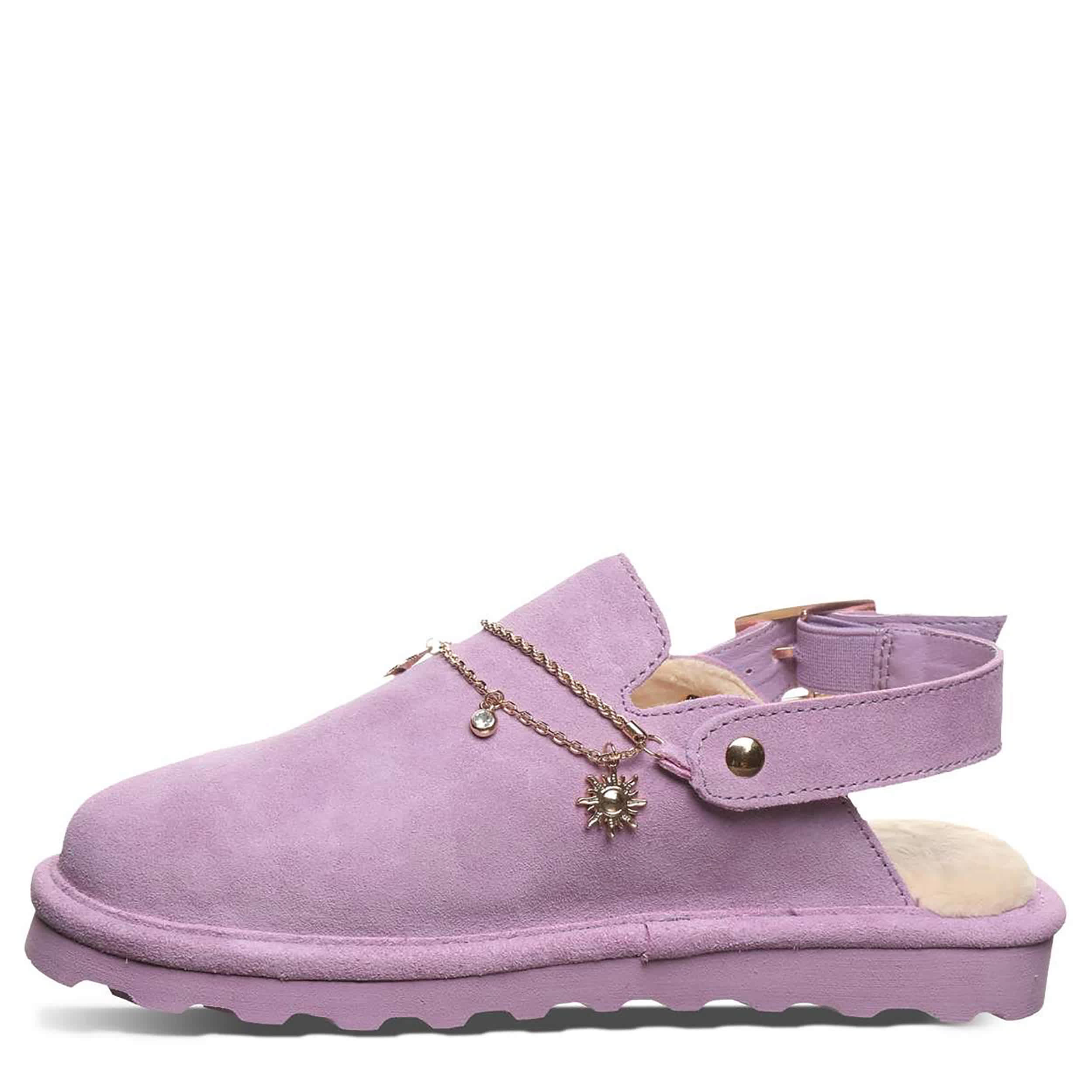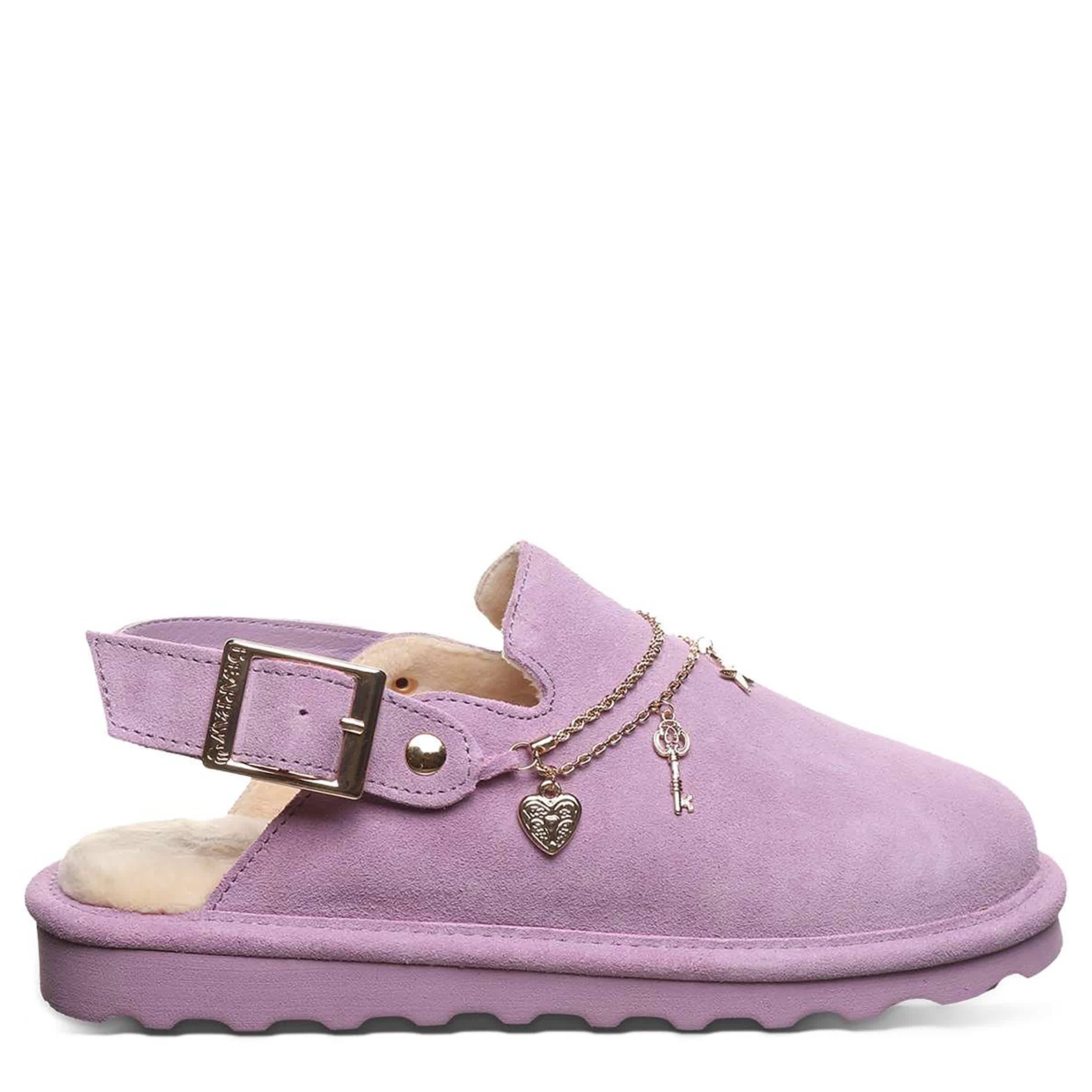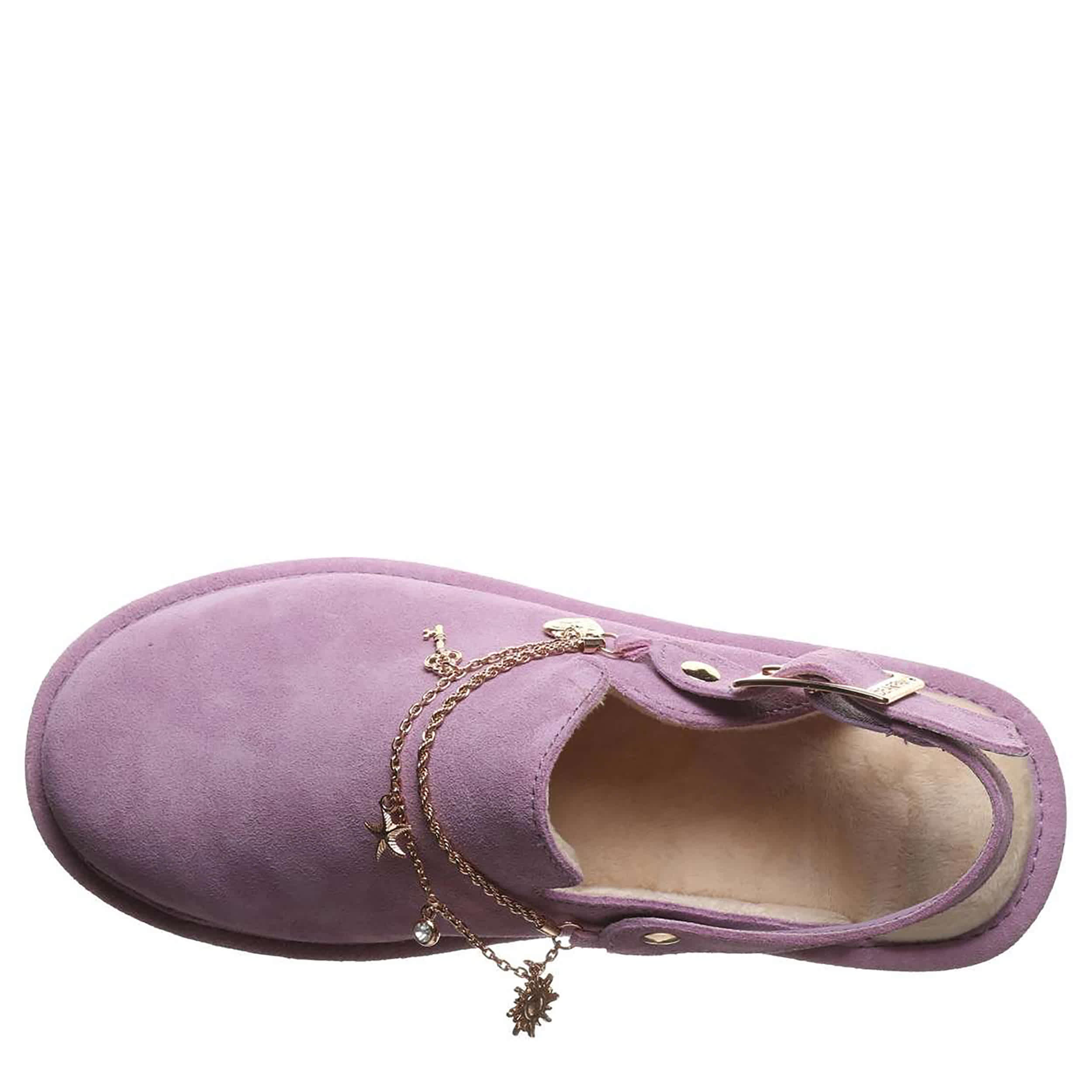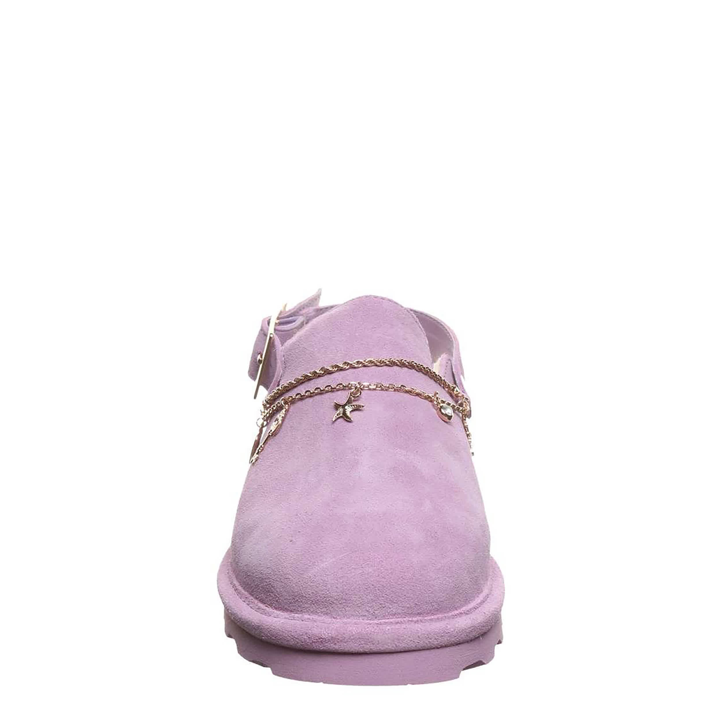 On trend and cozy, the Bearpaw Lexi women's slipper has a delicate charm chain for full-on shoelery. Featuring a suede upper and plush faux shearling, these shoes also have a slingback strap that adjusts for a great fit. The cushy footbed may mean you never take them off.