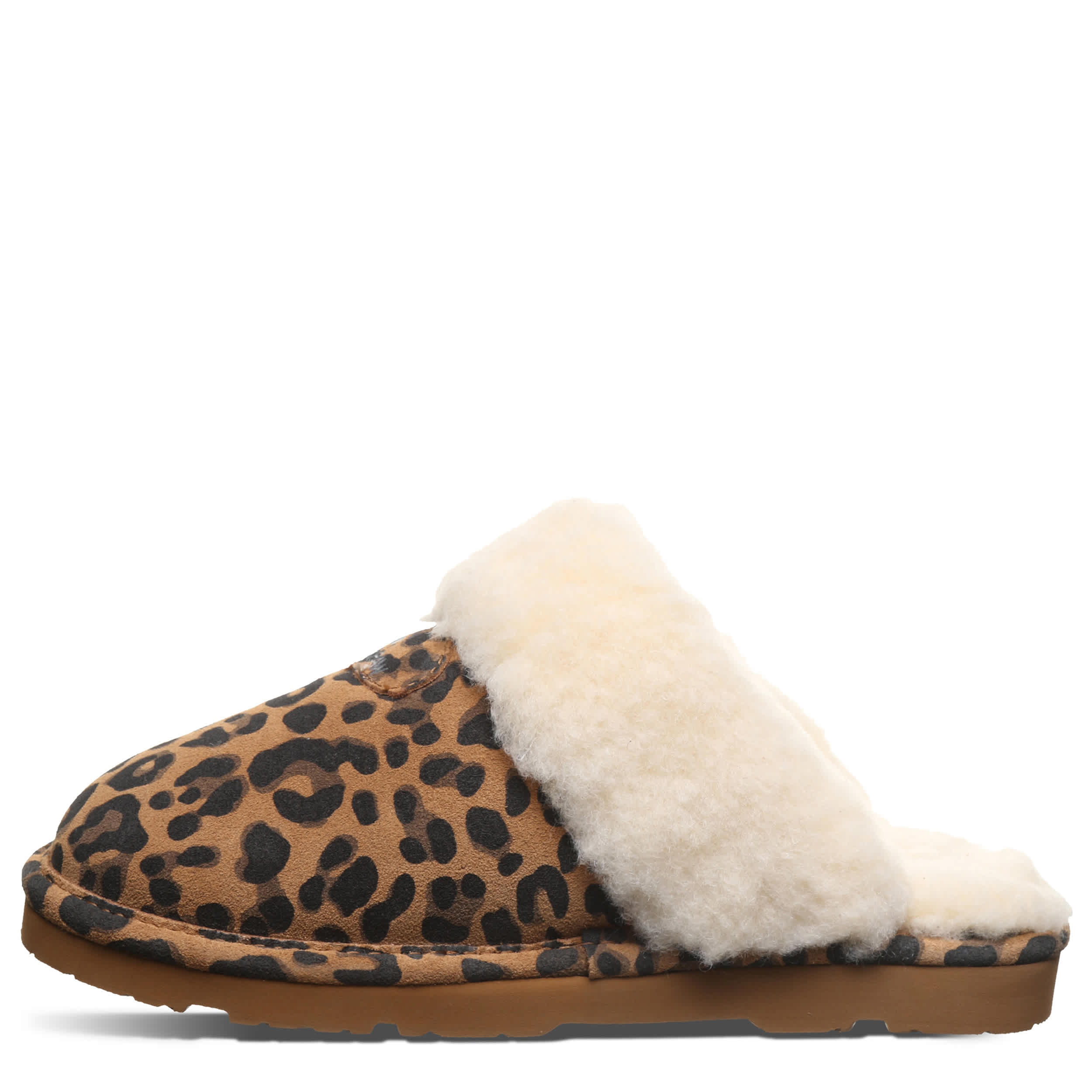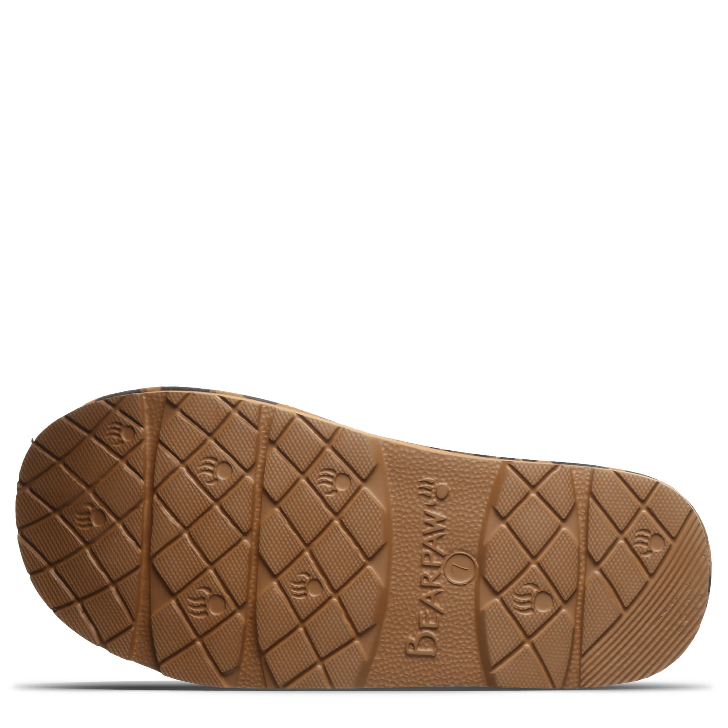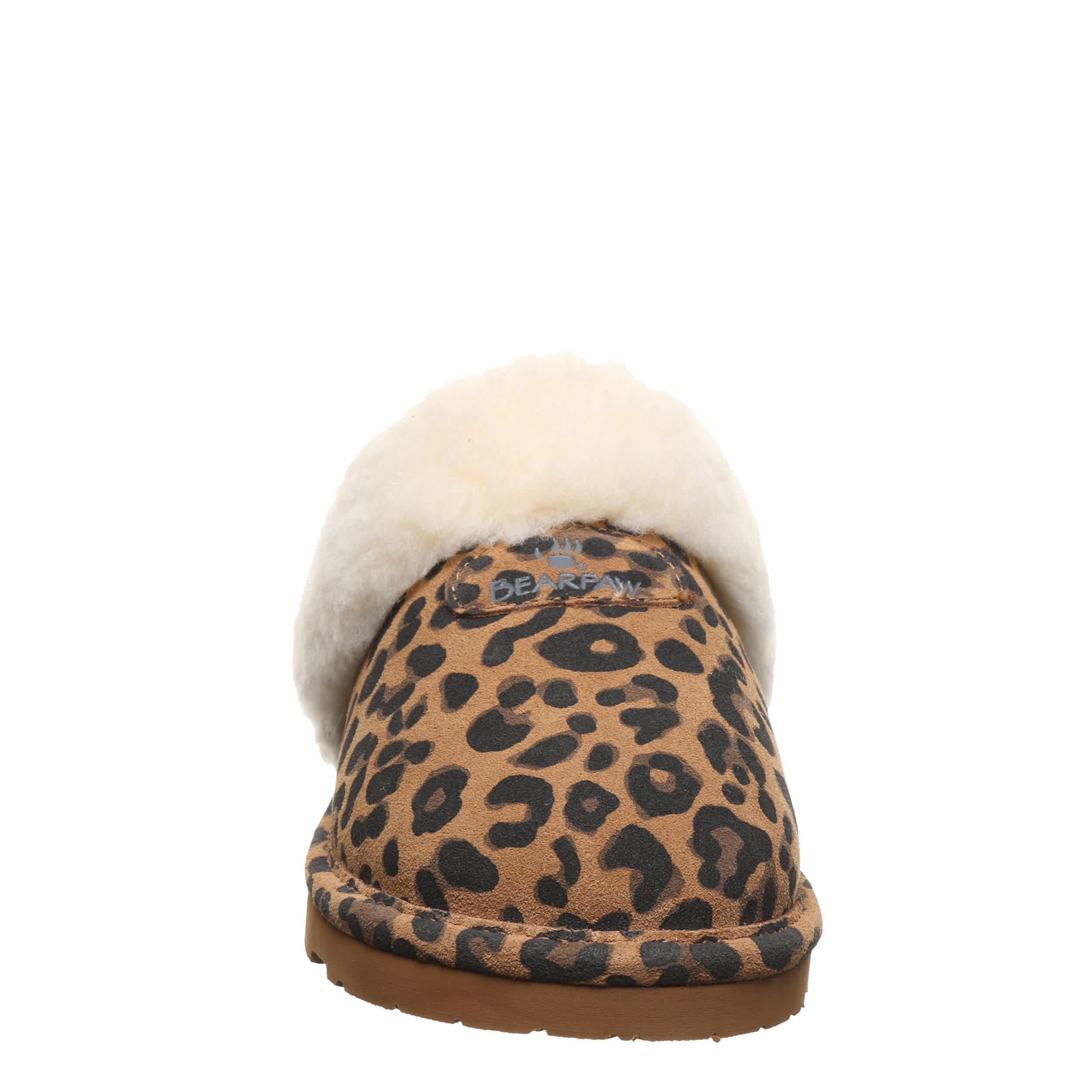 Slip on the Loki Exotic women's slipper from Bearpaw to keep that cozy feeling on lazy days. Featuring a suede upper treated with BearCoat® Rain and Stain repellent, this shoe sports a leopard print with a warm collar & lining. The lightweight EVA outsole cushions your foot and offers traction, so you step comfortably.