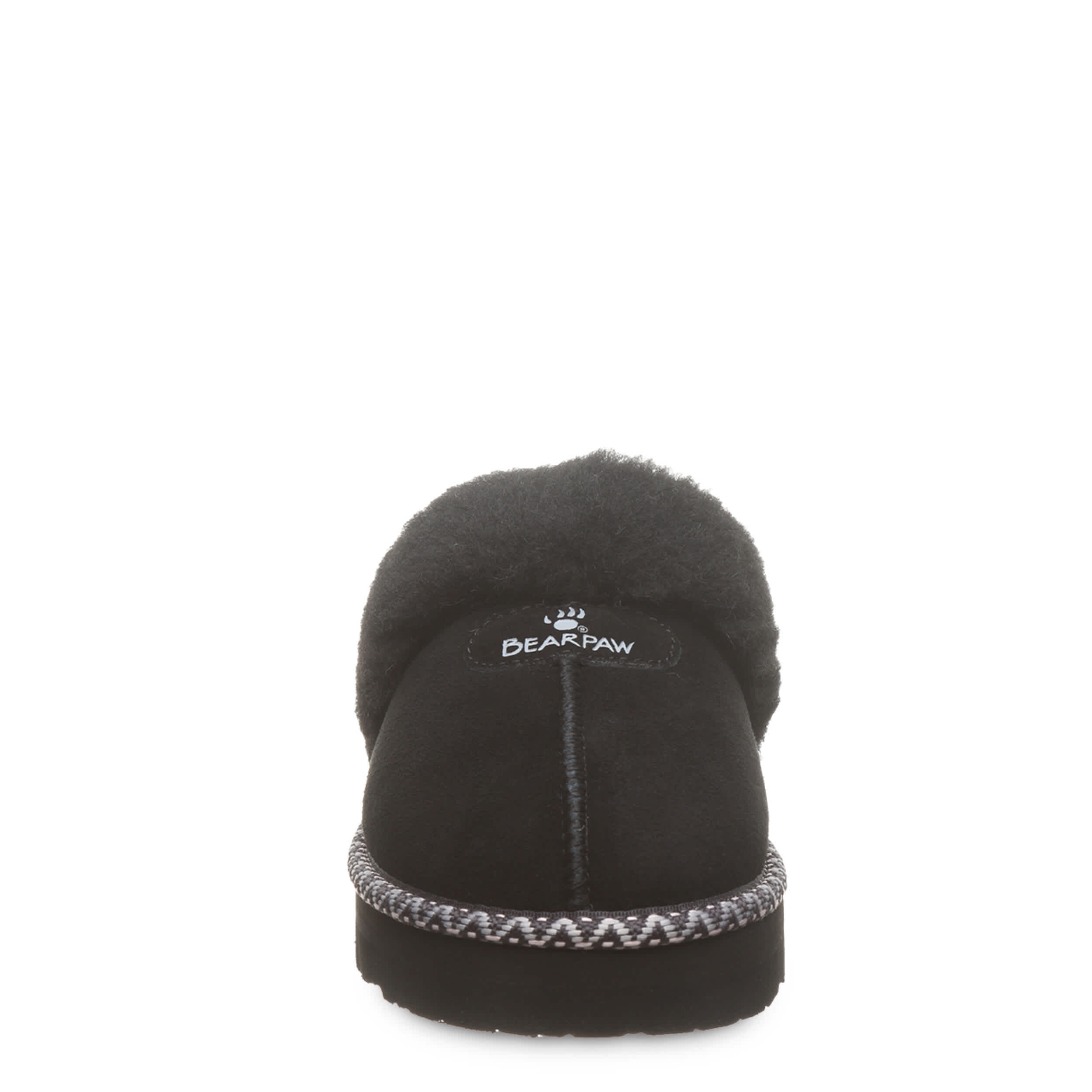 Look down in style with the Bearpaw Loki Lo Deco platform slipper. With a suede upper and colorful trim design, these slippers also feature a sheepskin lining and 2" EVA flatform midsole. Chill in some comfy sweats or head out for a quick store run.