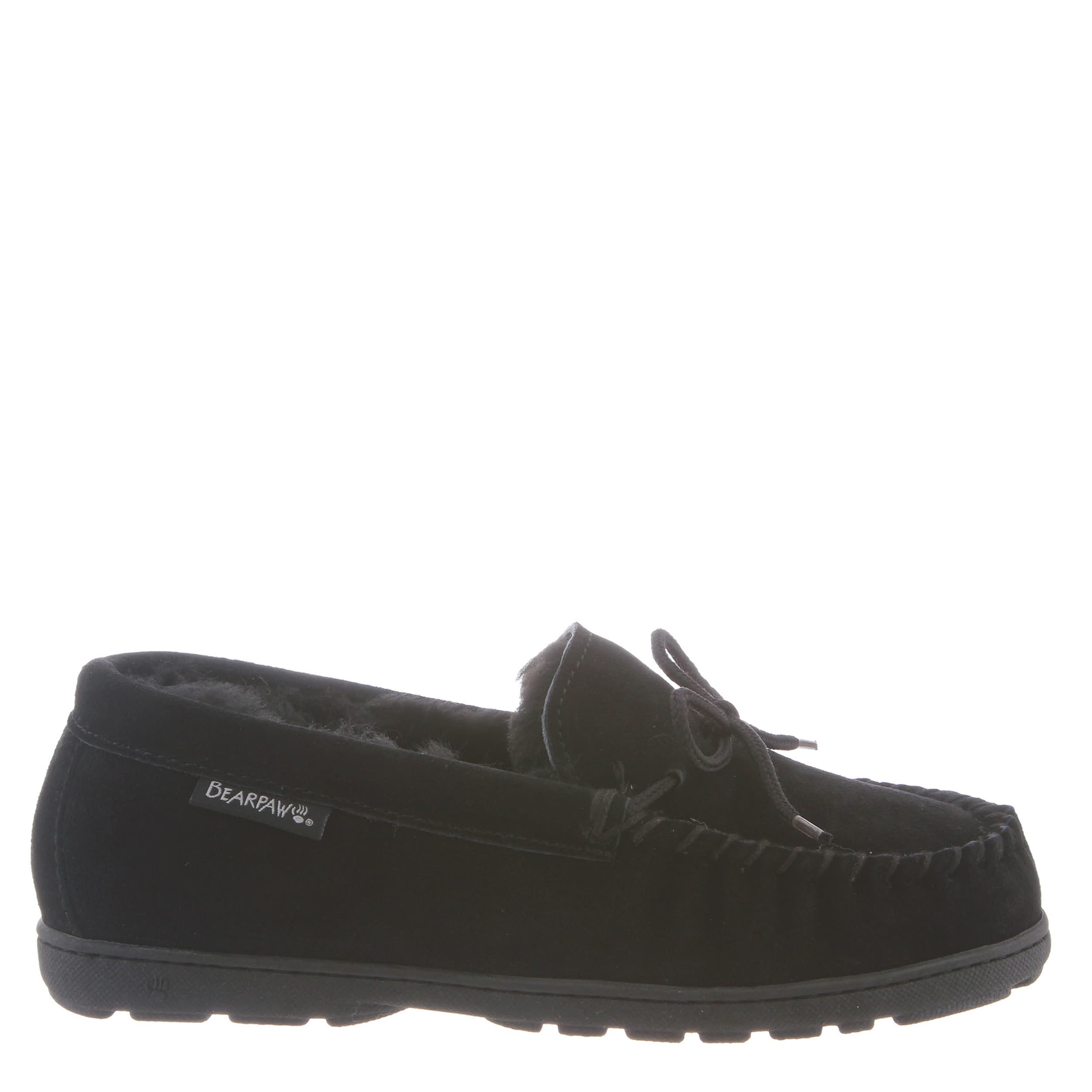 You can stop stealing your boyfriend's slippers with the Bearpaw Mindy women's slipper. With a suede upper featuring a warm faux fur lining for extra coziness, this slipper has a hand-stitched vamp and cute lace tie detail. The removable footbed comforts every step, while the molded outsole adds support and traction on errands or around the house.