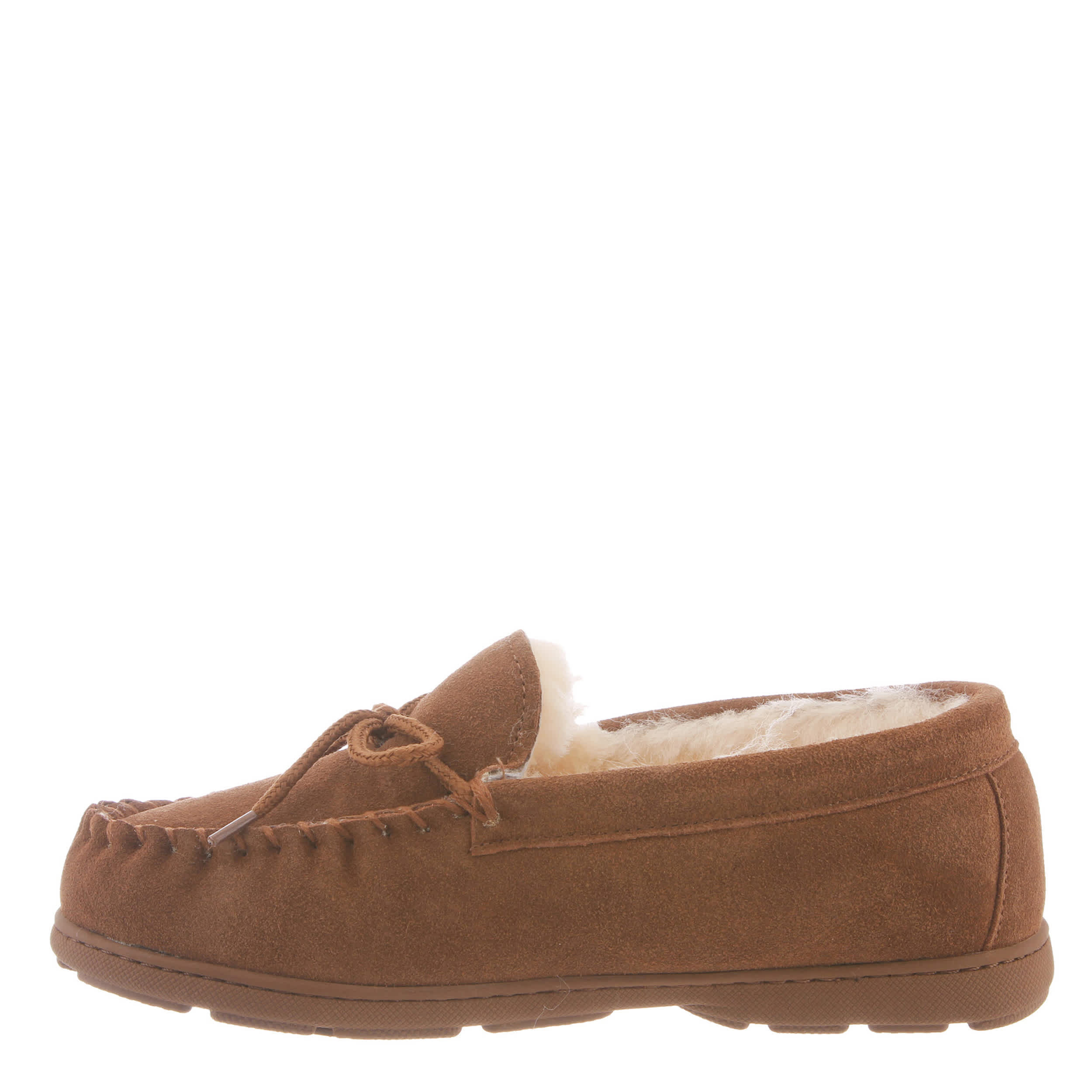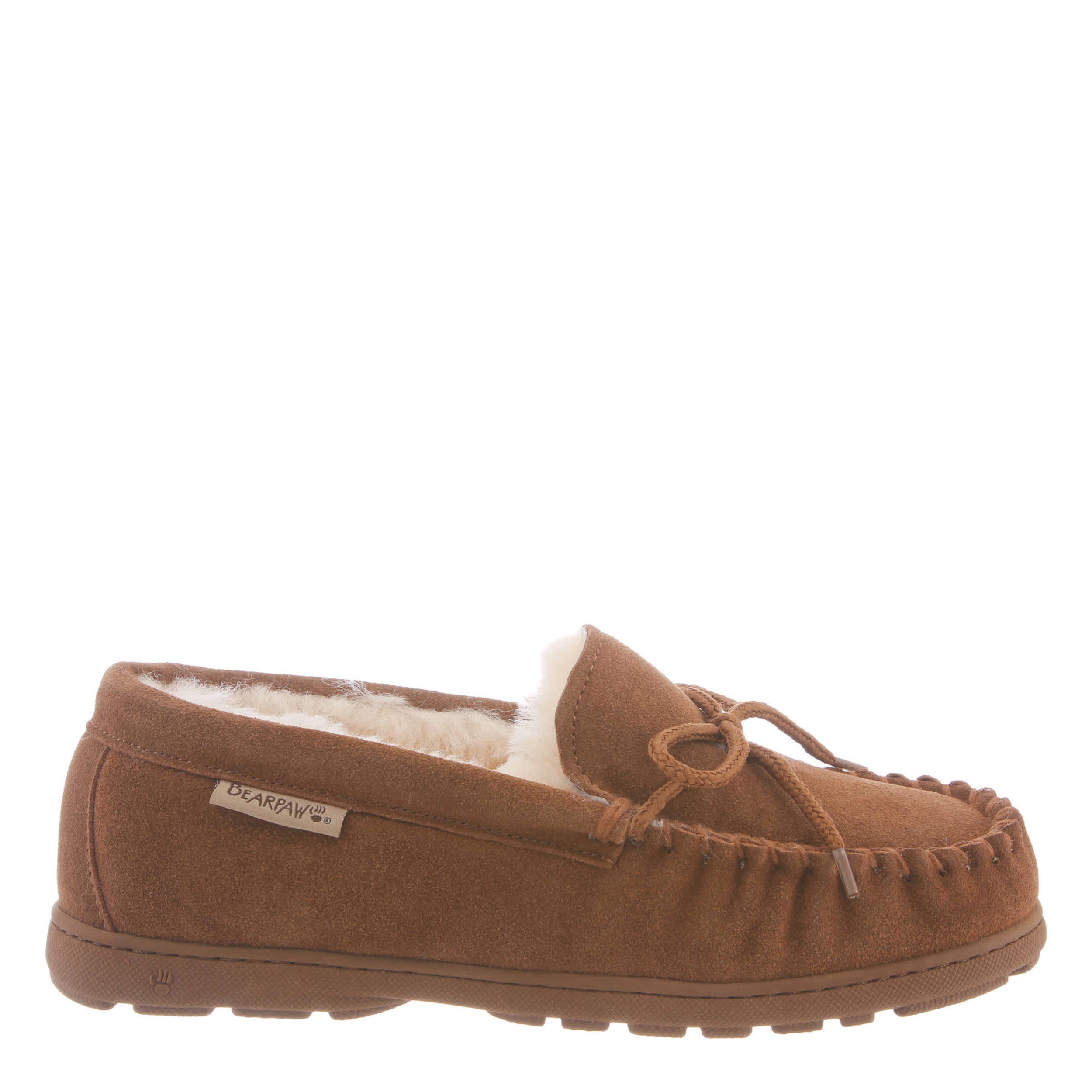 You can stop stealing your boyfriend's slippers with the Bearpaw Mindy women's slipper. With a suede upper featuring a warm faux fur lining for extra coziness, this slipper has a hand-stitched vamp and cute lace tie detail. The removable footbed comforts every step, while the molded outsole adds support and traction on errands or around the house.