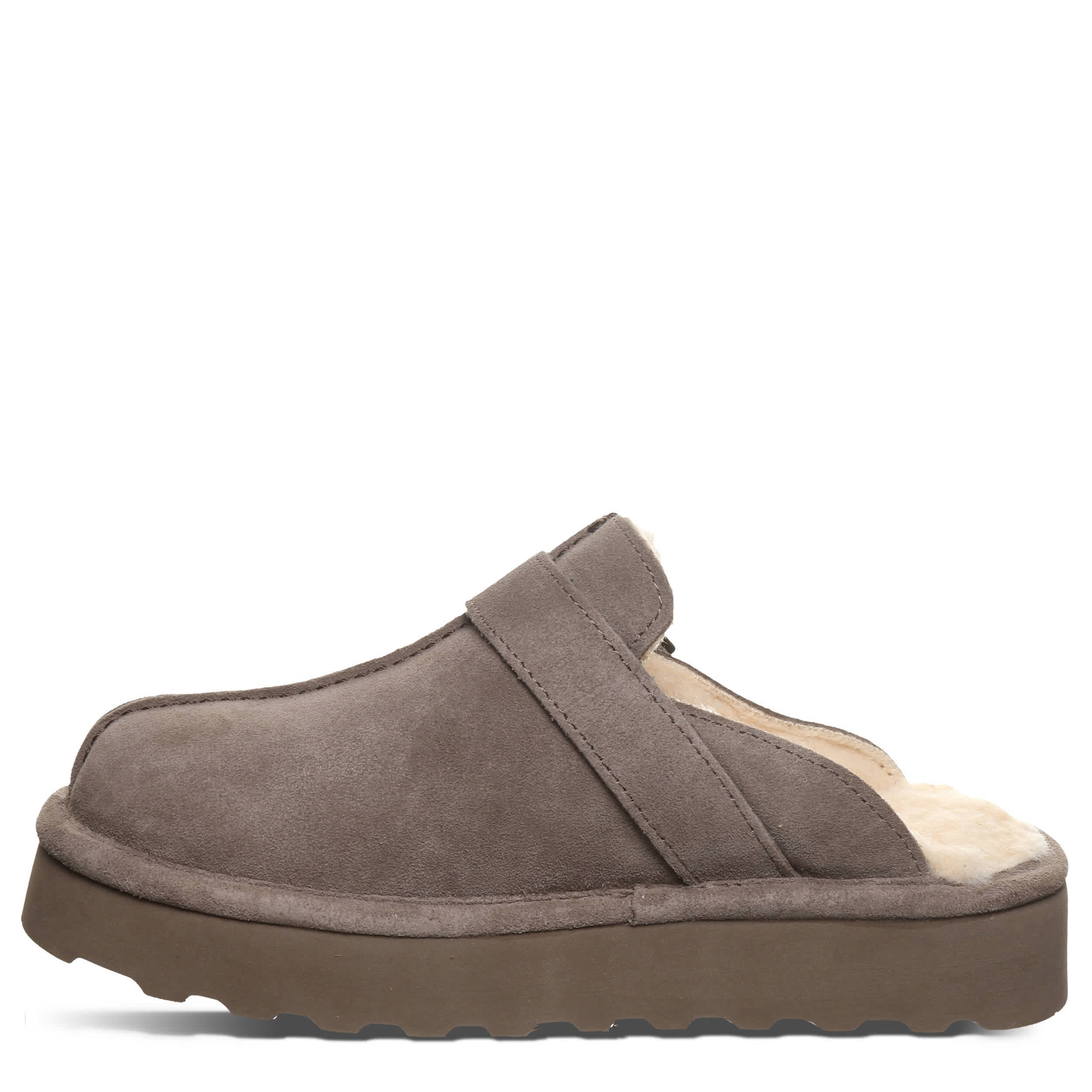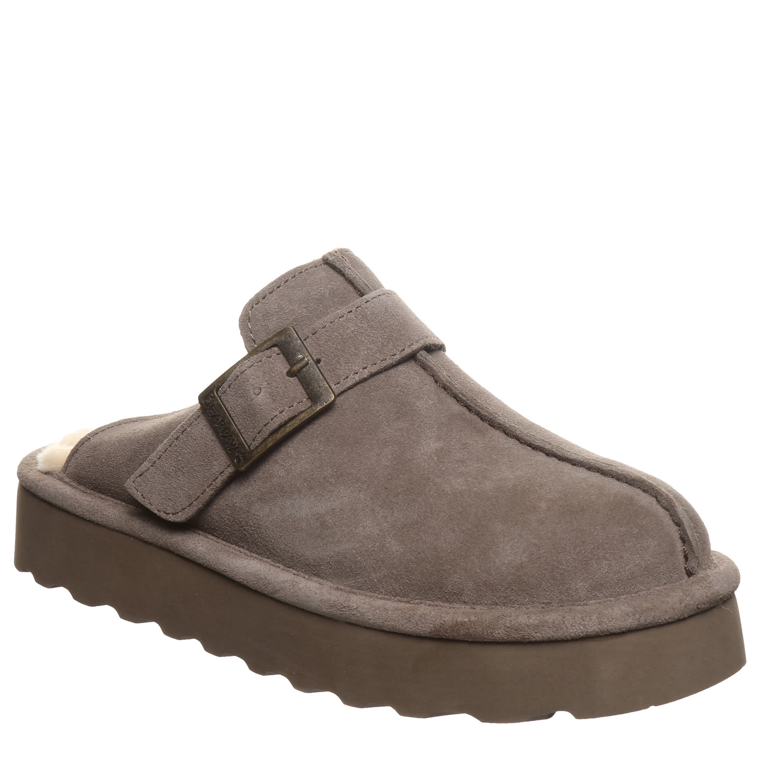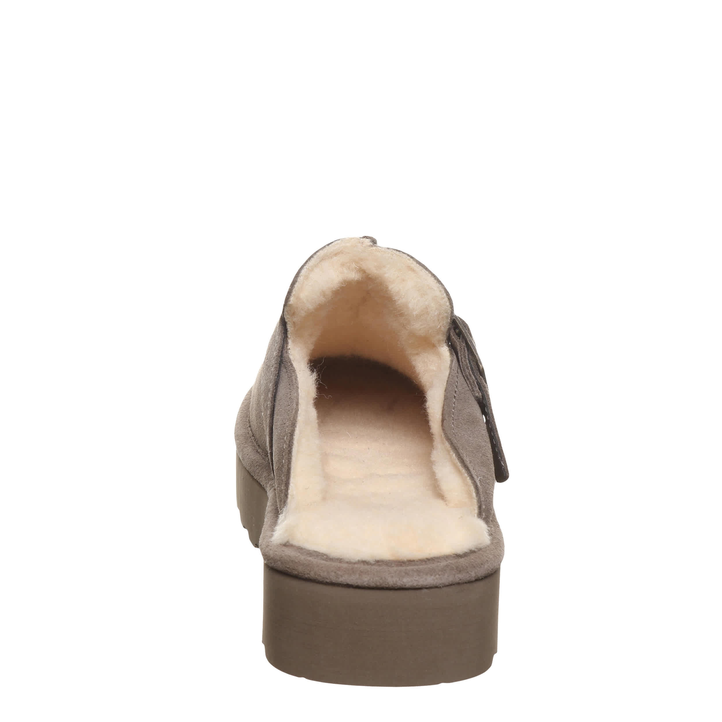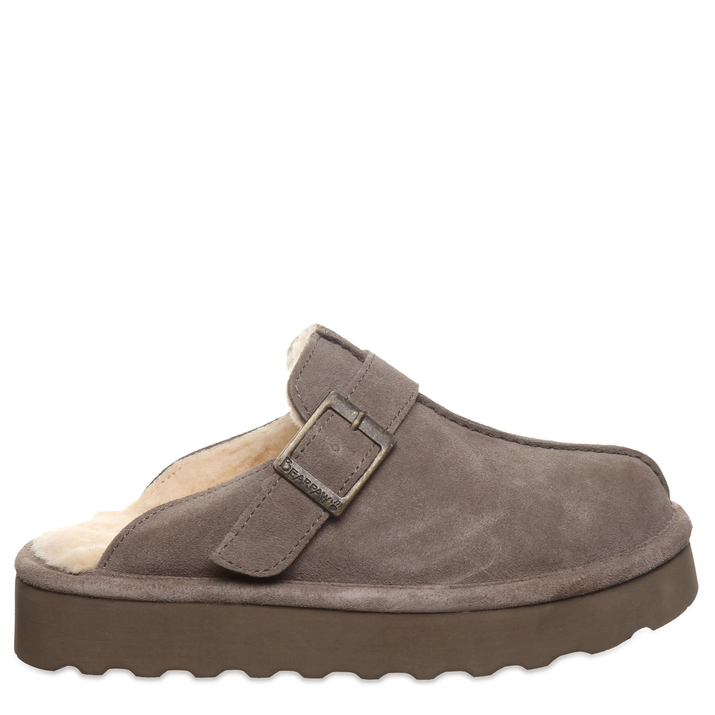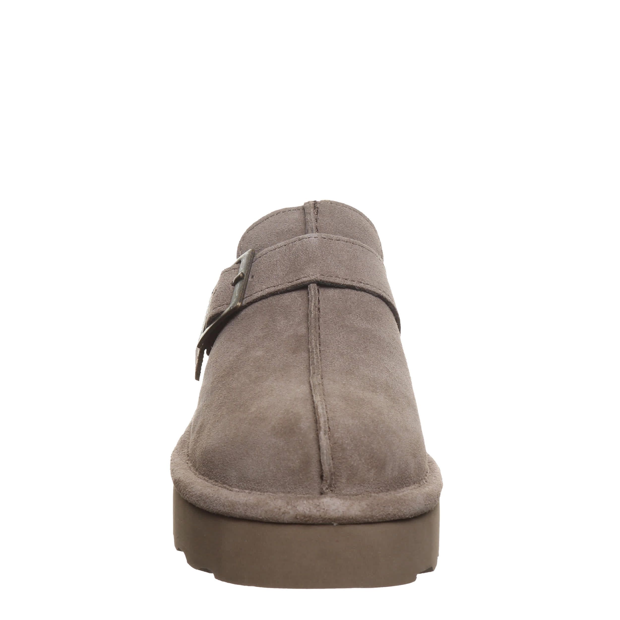 Show some spunk in the Moxie Platform Lo women's clog from Bearpaw. With a suede upper treated with BearCoat® Rain and Stain repellent featuring a warm wool blend lining, this clog cradles your foot with a pivoting slingback buckle strap. The wool blend footbed comforts, while platform outsole adds height for errands or just lounging around the house.