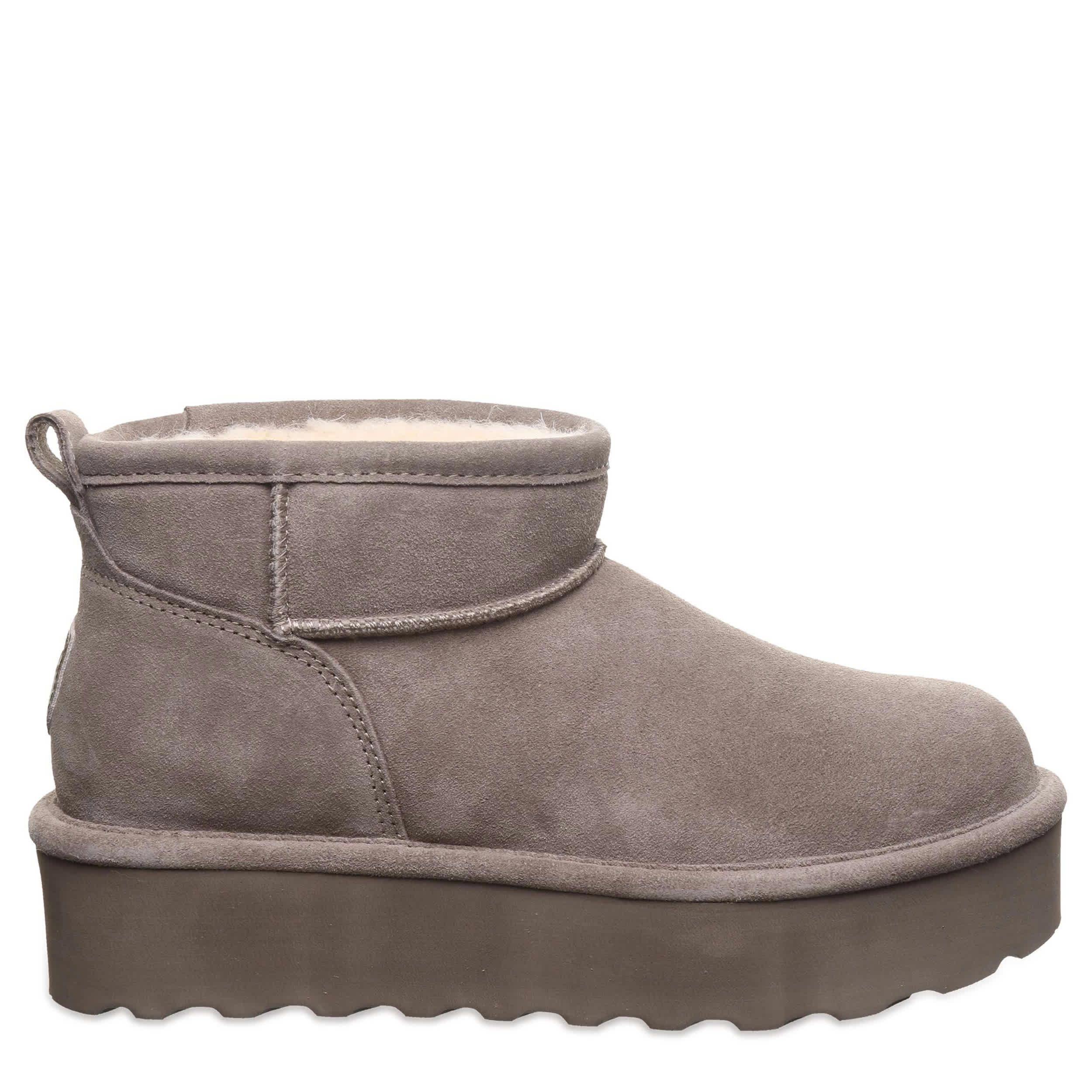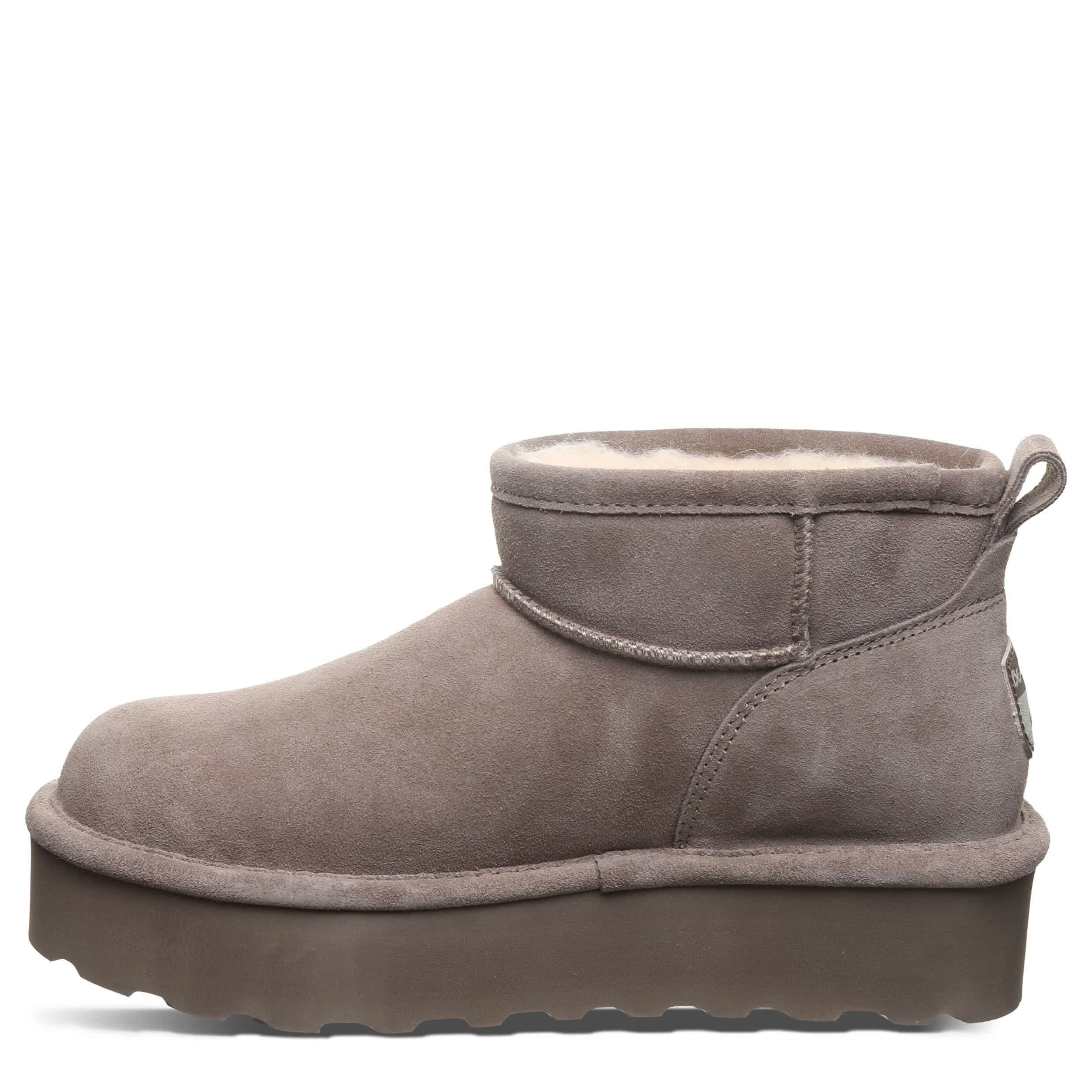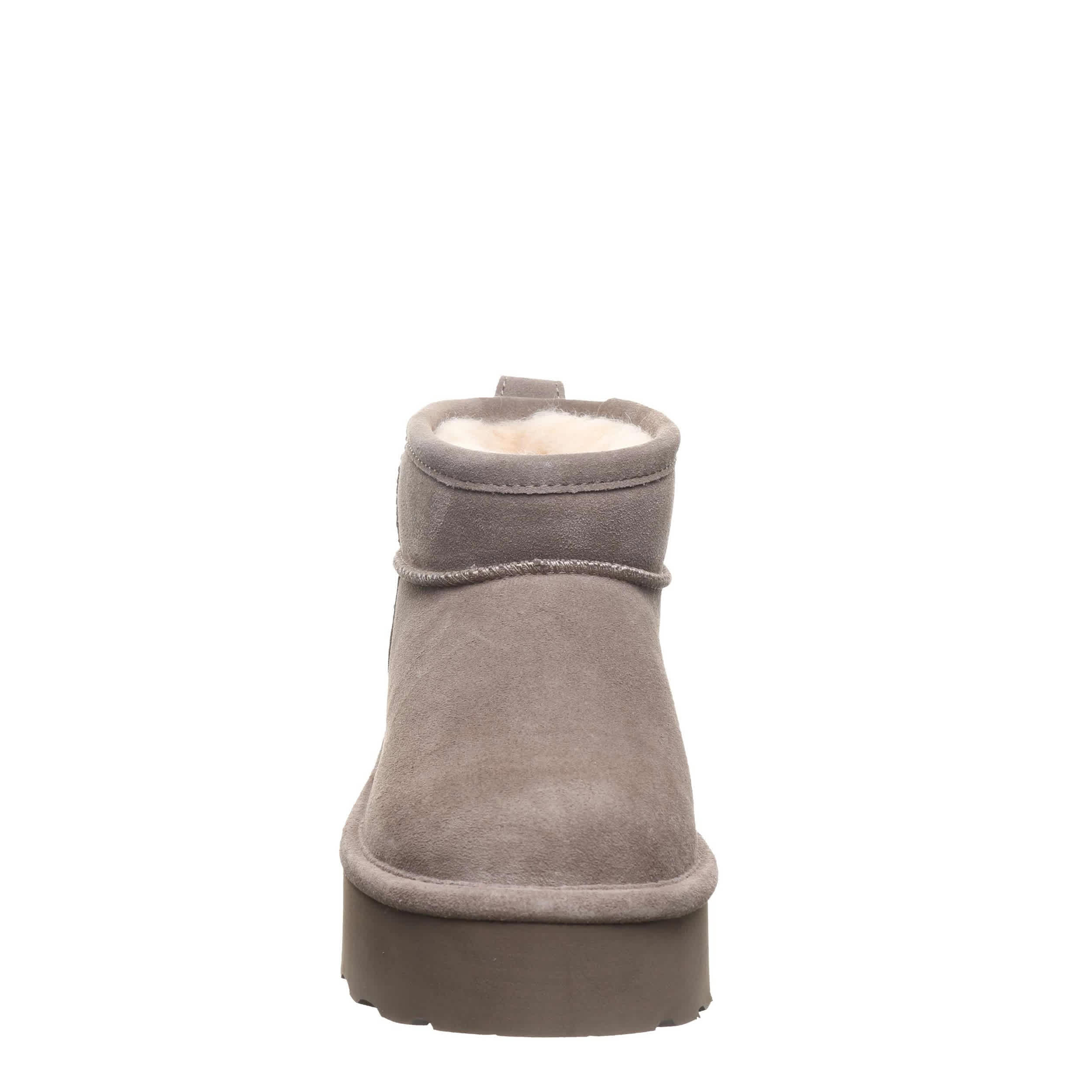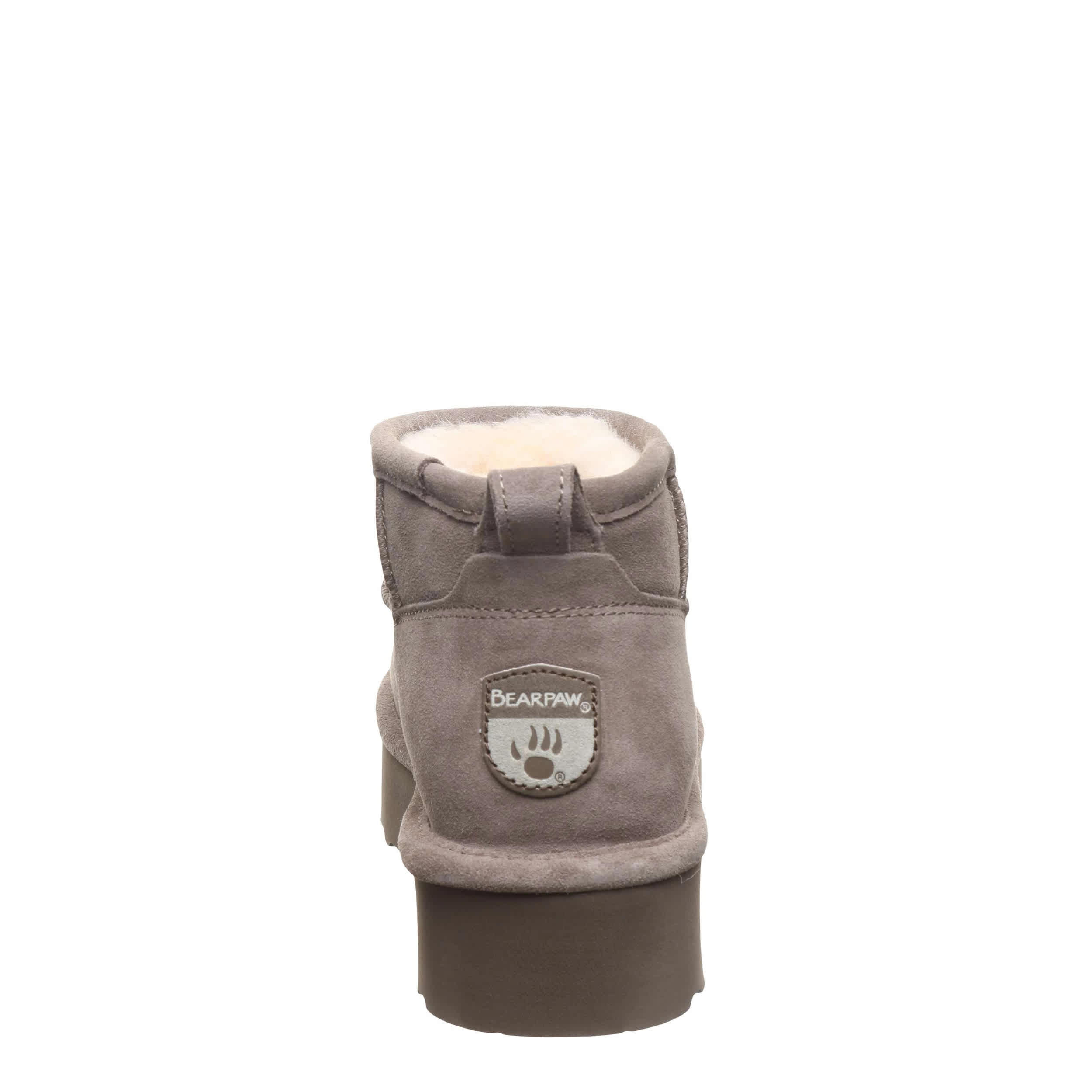 Have fun in the Retro Shorty fur boot by Bearpaw. With a suede upper featuring BearCoatâ„¢ Rain and Stain Repellent to protect against the elements, this pull-on bootie is still perfect for cold days out and about. The lining & footbed offer warm cushioning while the platform outsole adds some lift to your unbothered steps.