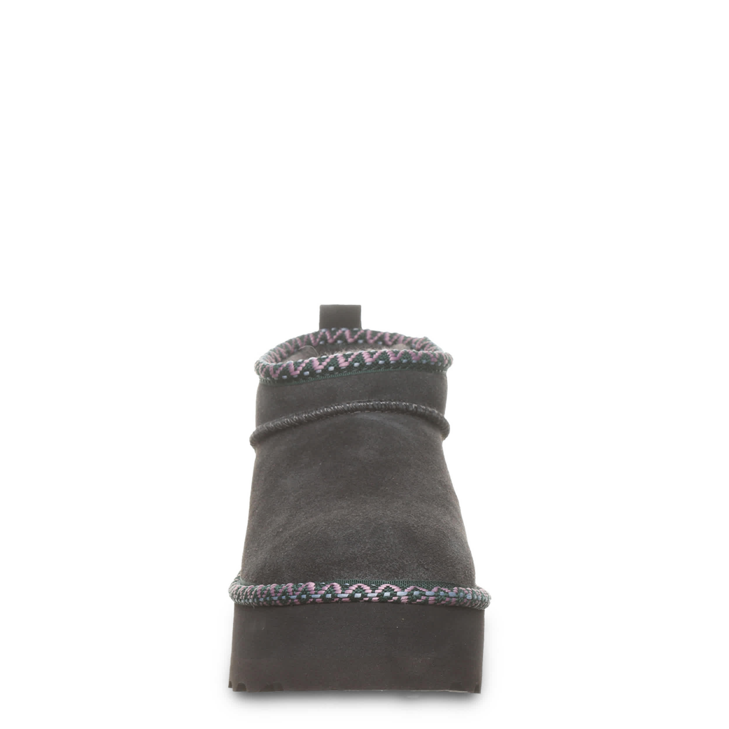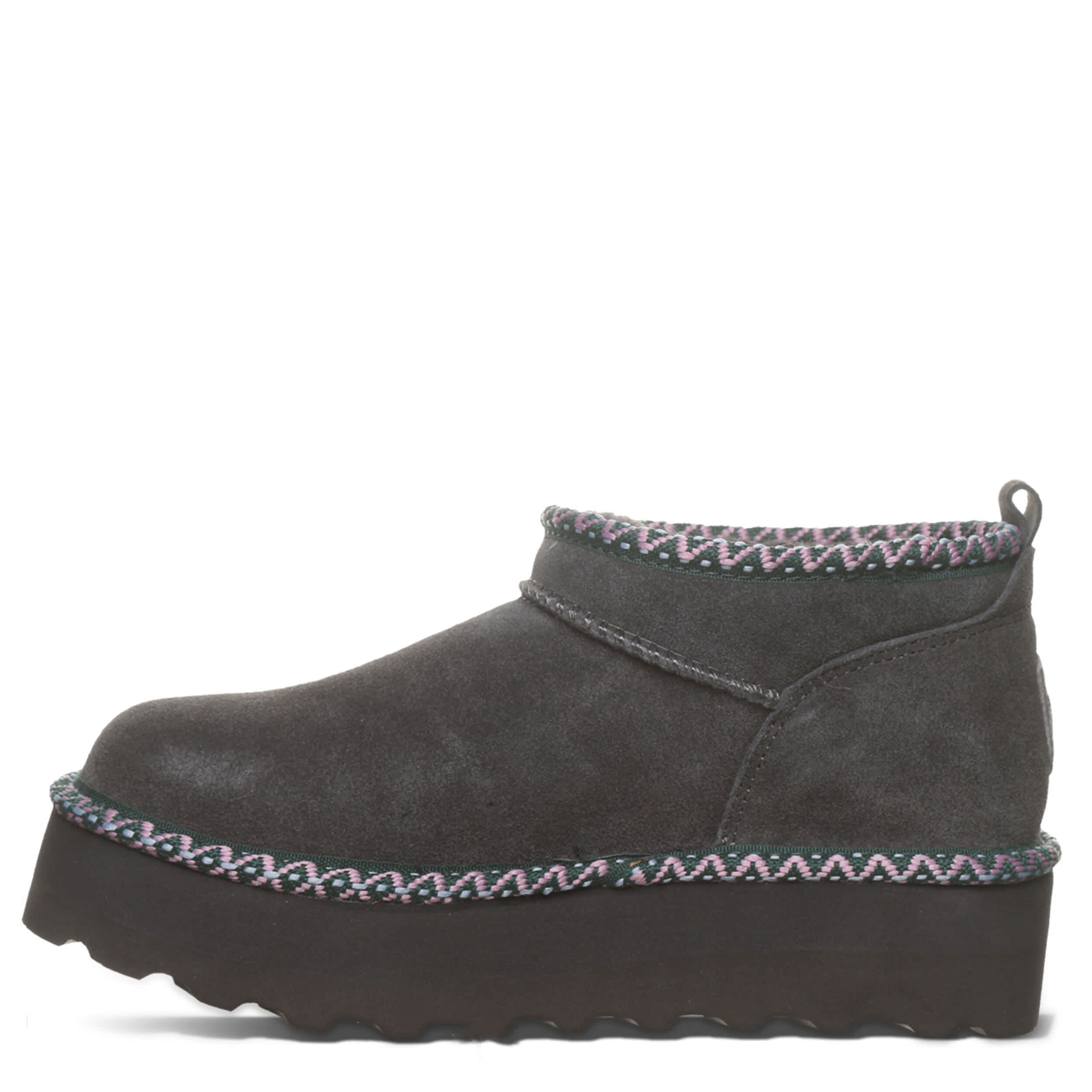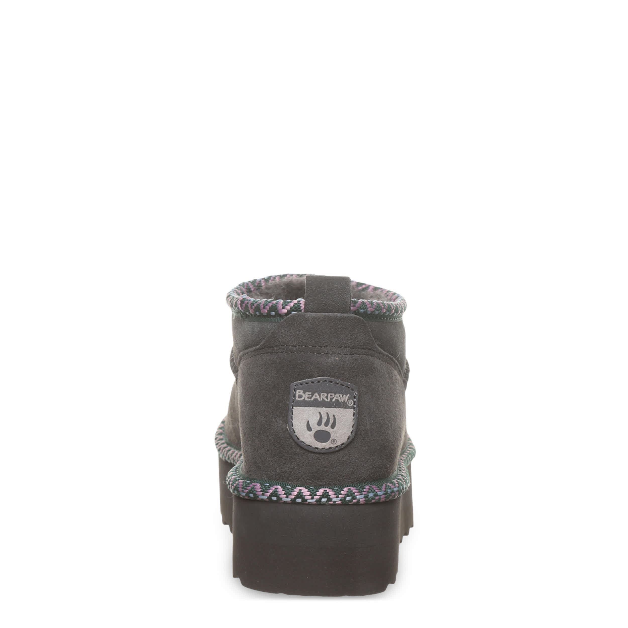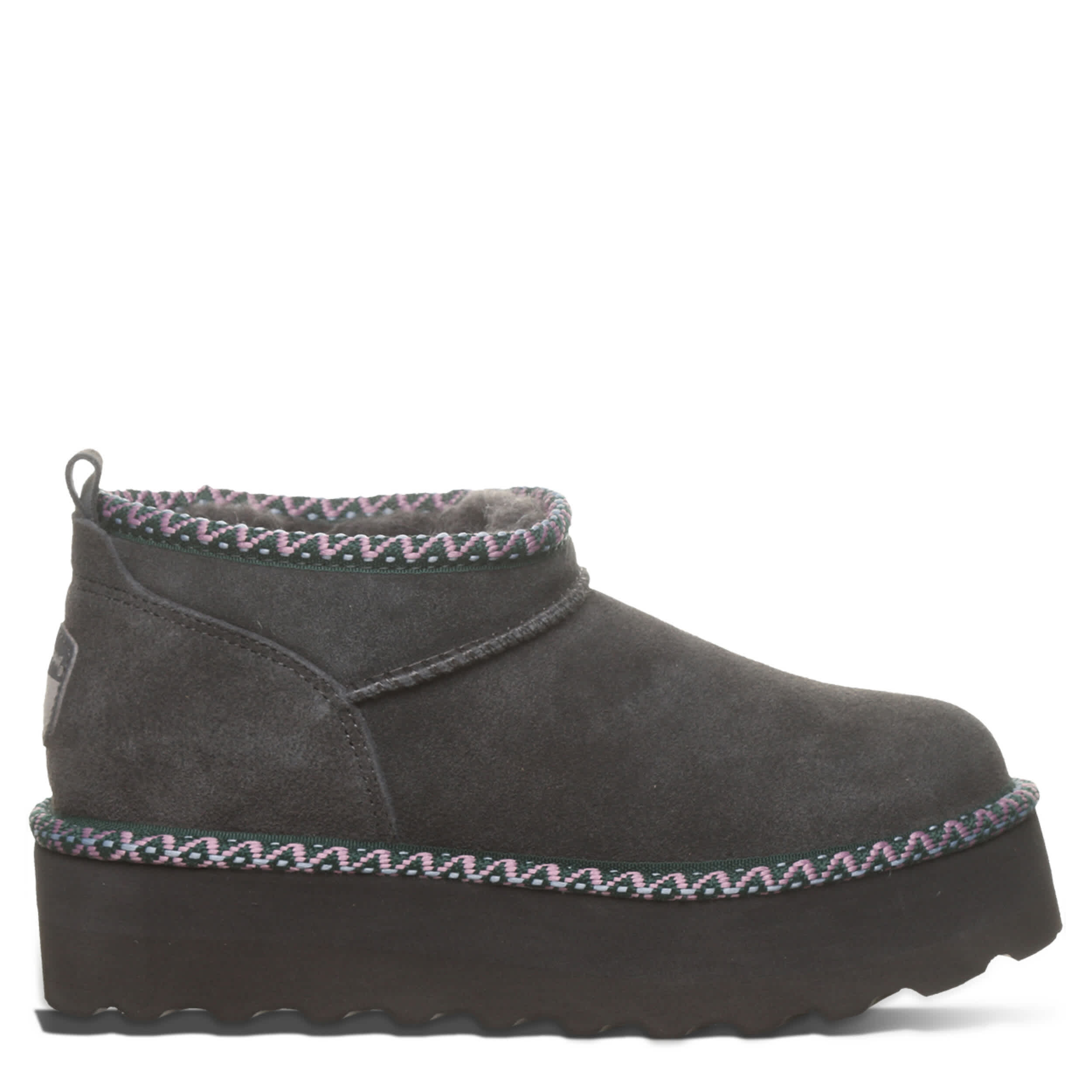 Raise your style in the Retro Super Shorty Deco fur boot by Bearpaw. This pull-on bootie is perfect for cold days out and about. The lining & footbed offer warm cushioning while the lightweight outsole adds some lifted traction to your unbothered steps.