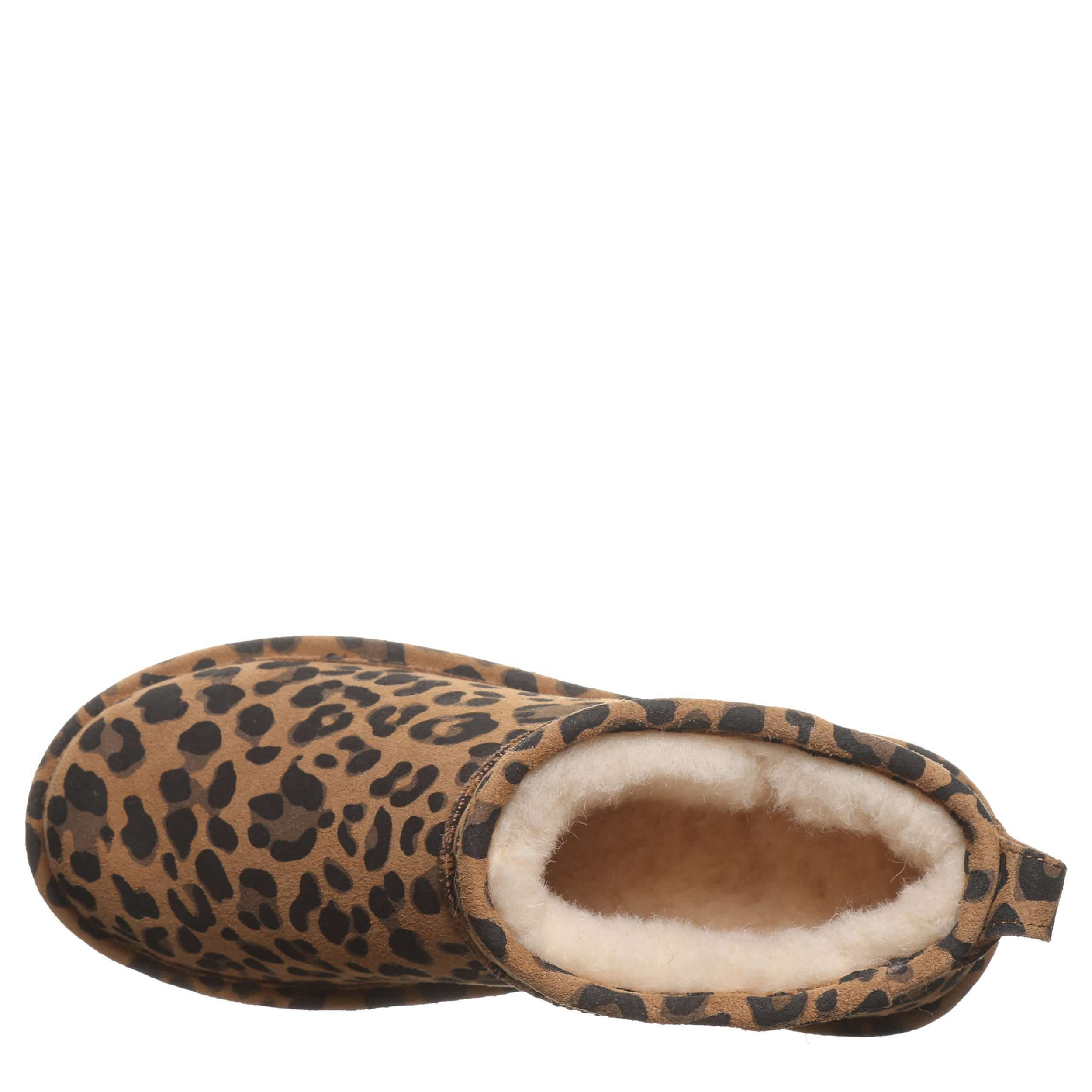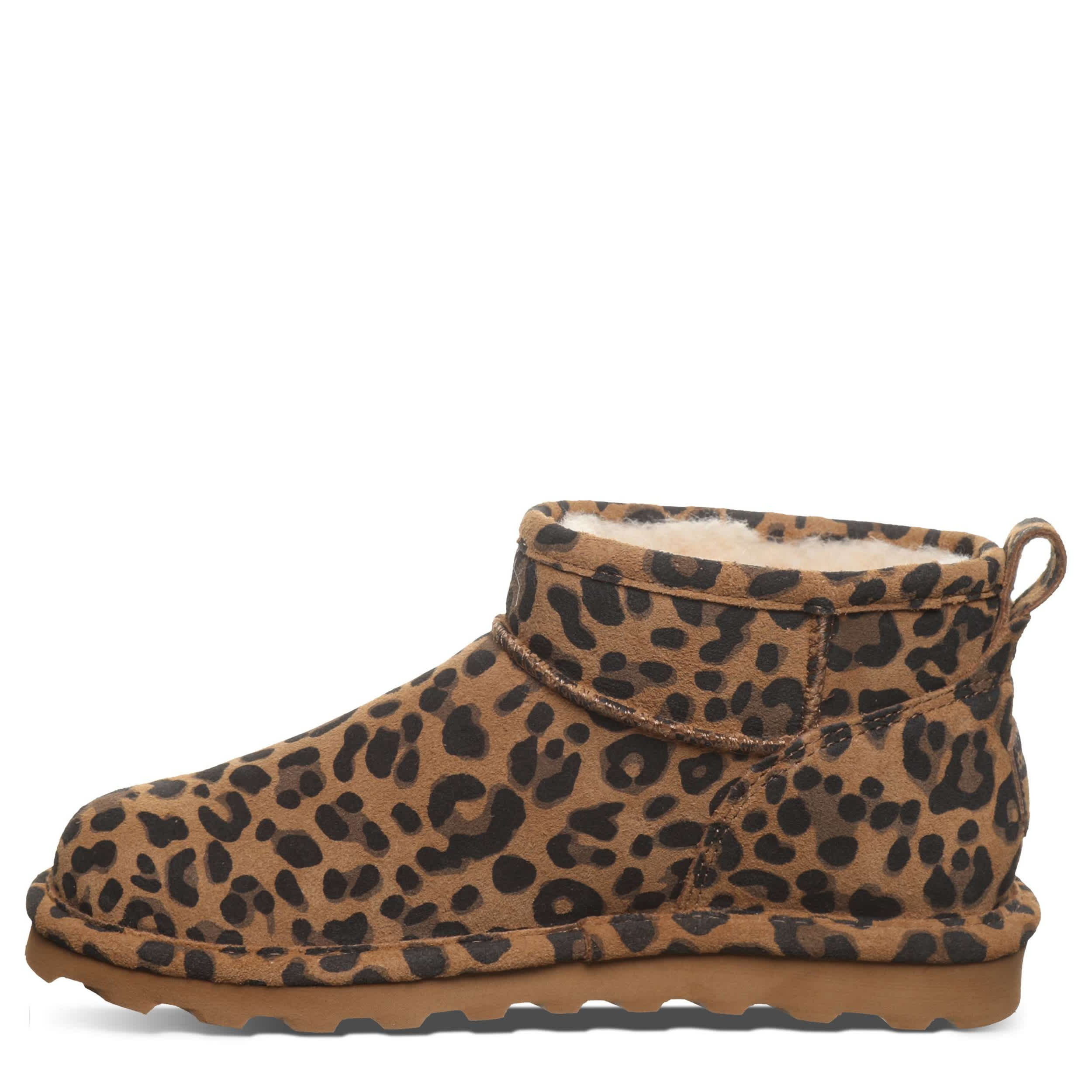 Dress up to your ankles in the Shorty Exotic fur boot by Bearpaw. Featuring a leopard printed suede upper treated with BearCoatâ„¢ Rain and Stain Repellent to protect against the elements, this pull-on bootie is perfect for cold days out and about. The lining & footbed offer warm cushioning while the outsole adds some traction to your unbothered steps.