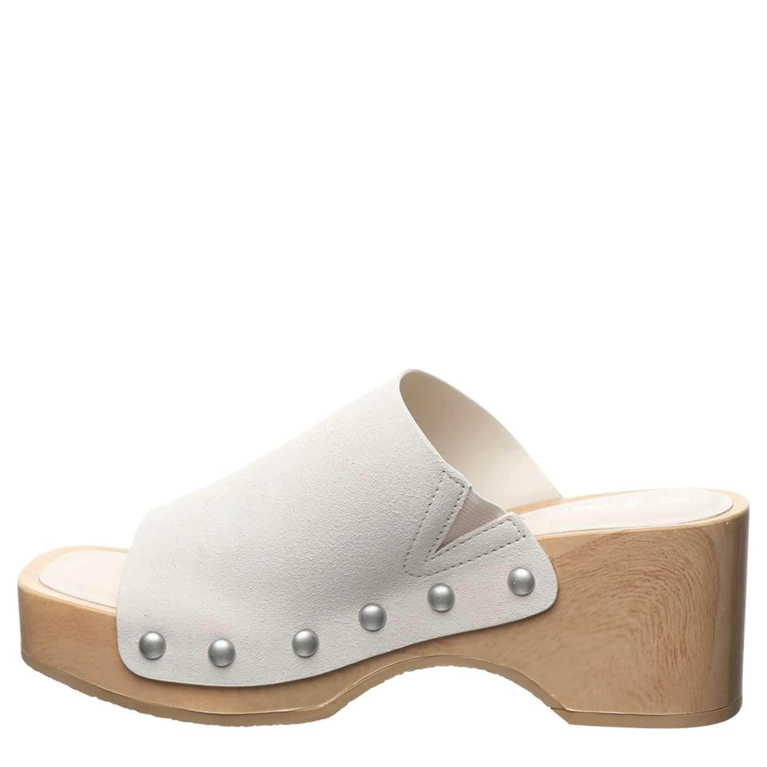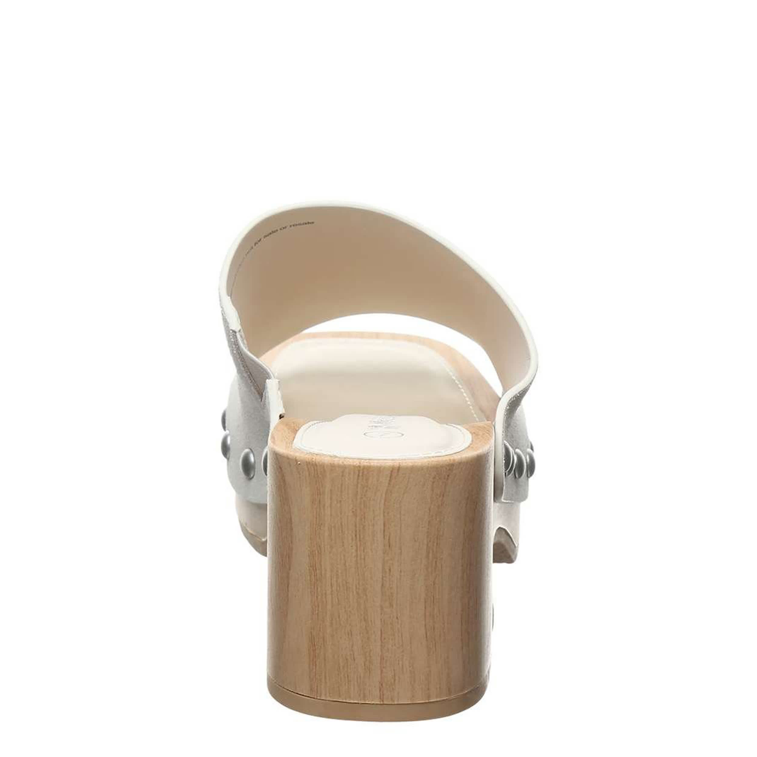 Drive your fashion, whether dressed up or down, in the Tilda women's platform sandal from Bearpaw. With a suede upper featuring metallic stud accents along the sides and a V-notch gore insert for a secure fit, this clog also has a 2" faux wood midsole. The faux leather footbed soothes your foot, while the outsole adds stability.