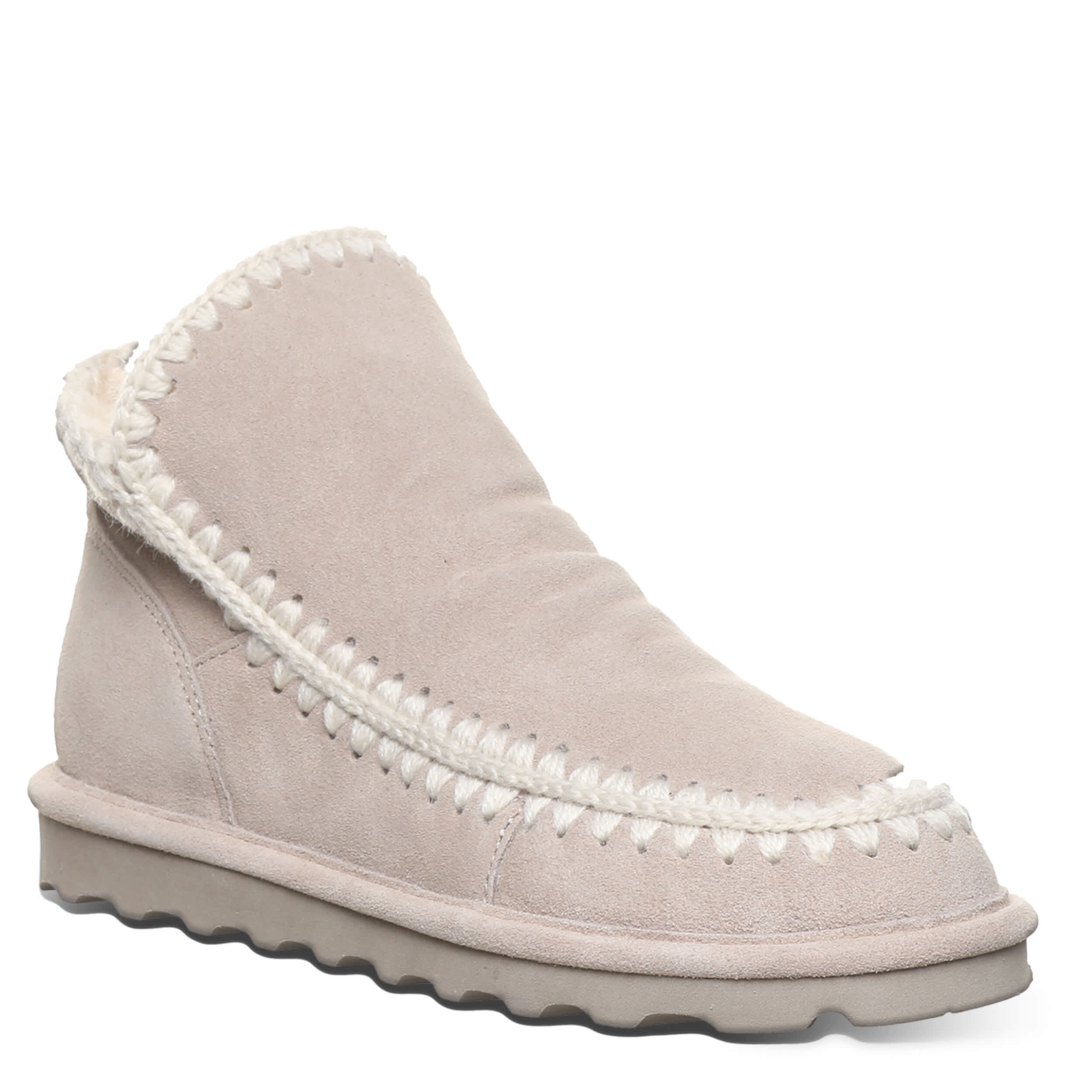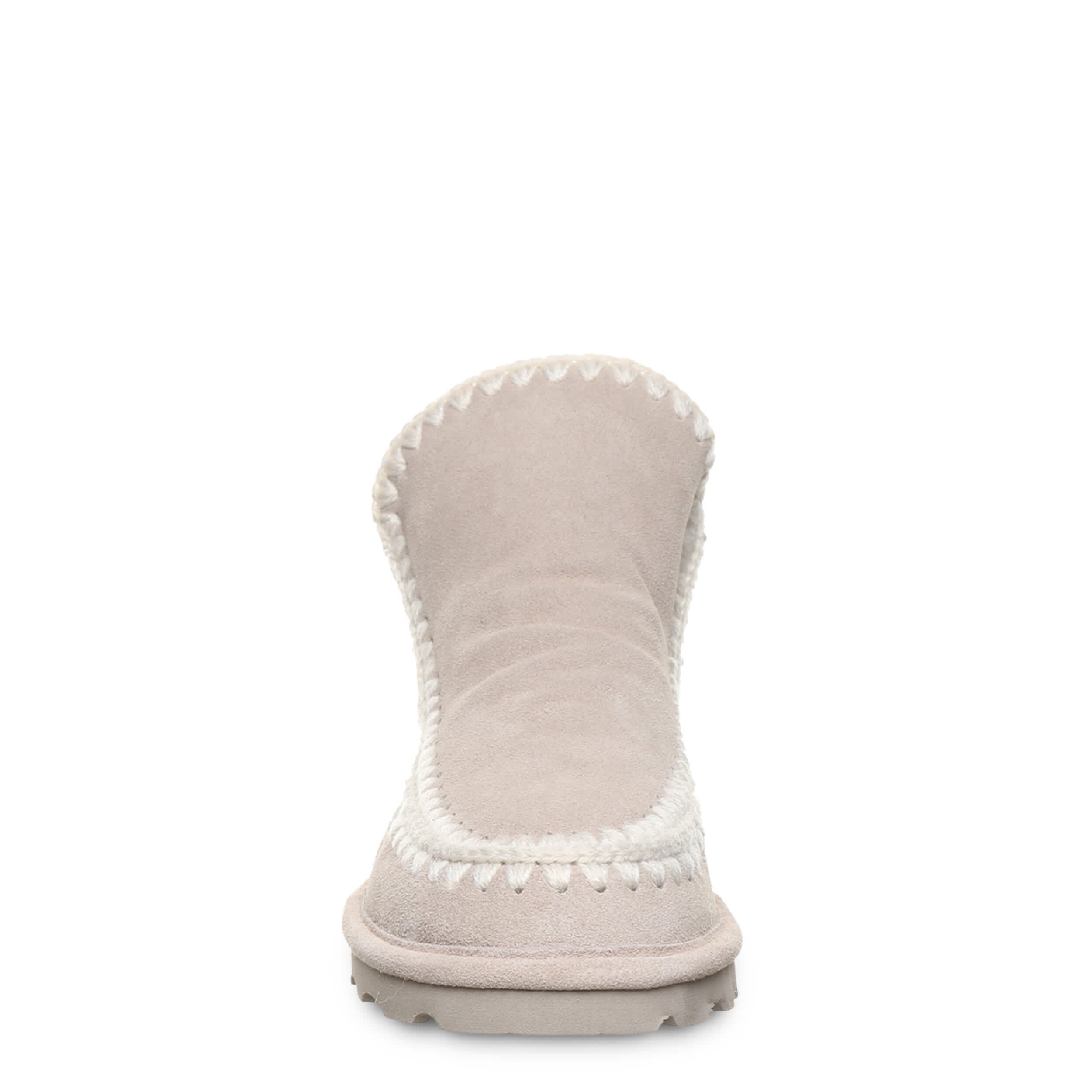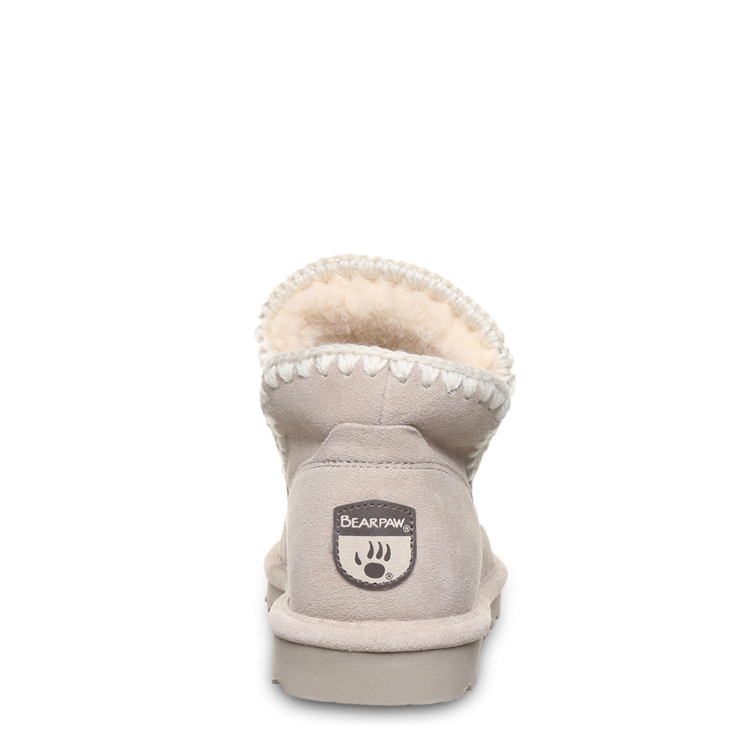 Stylish bundling is possible in the Winter Water Resistant fur boot by Bearpaw. With a suede upper treated withBearCoatâ„¢ Rain and Stain Repellent to protect against the elements, this crocheted boot is easy and different. Warm cushioning provided by the wool blend lining & footbed keep you happy and unbothered.