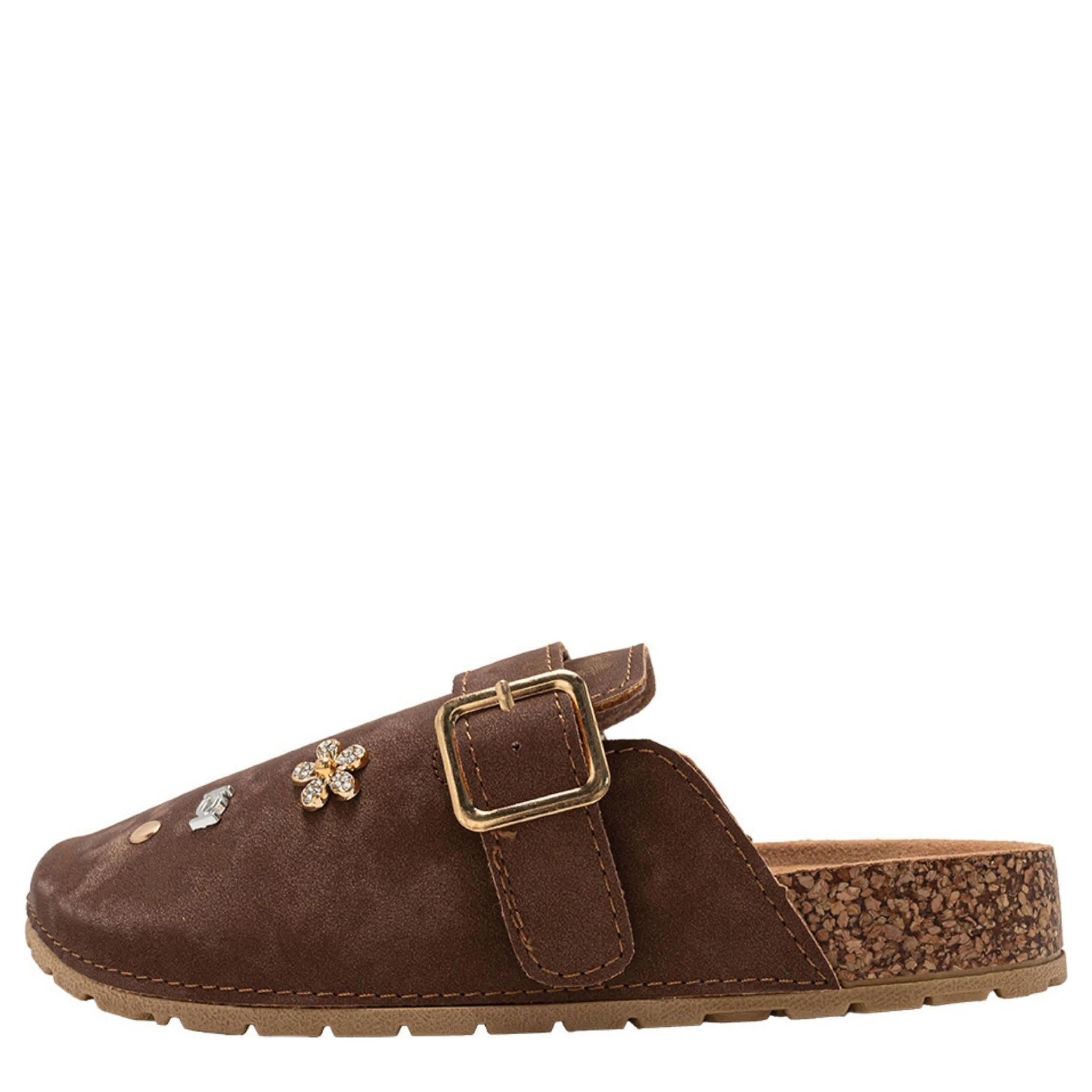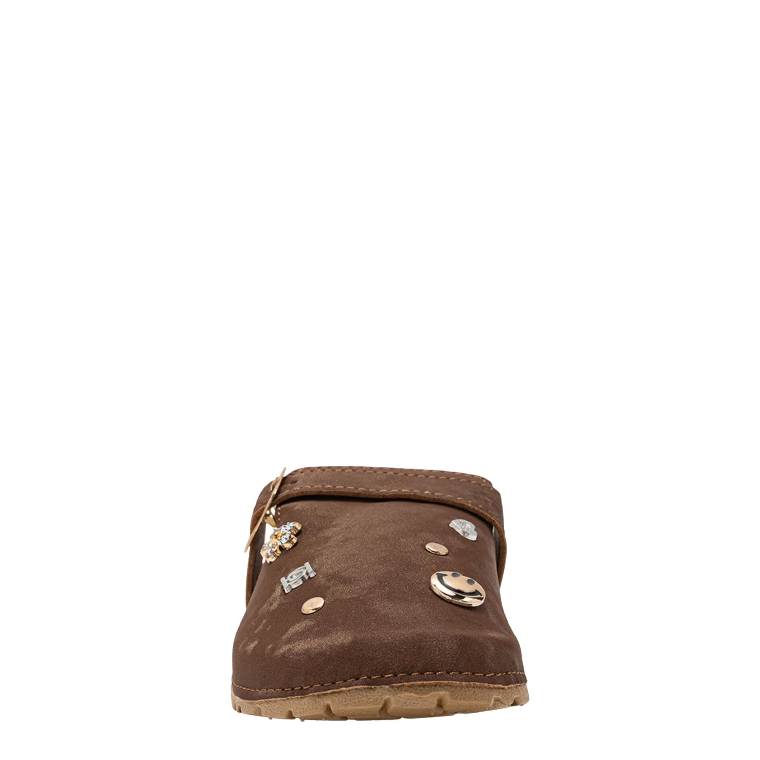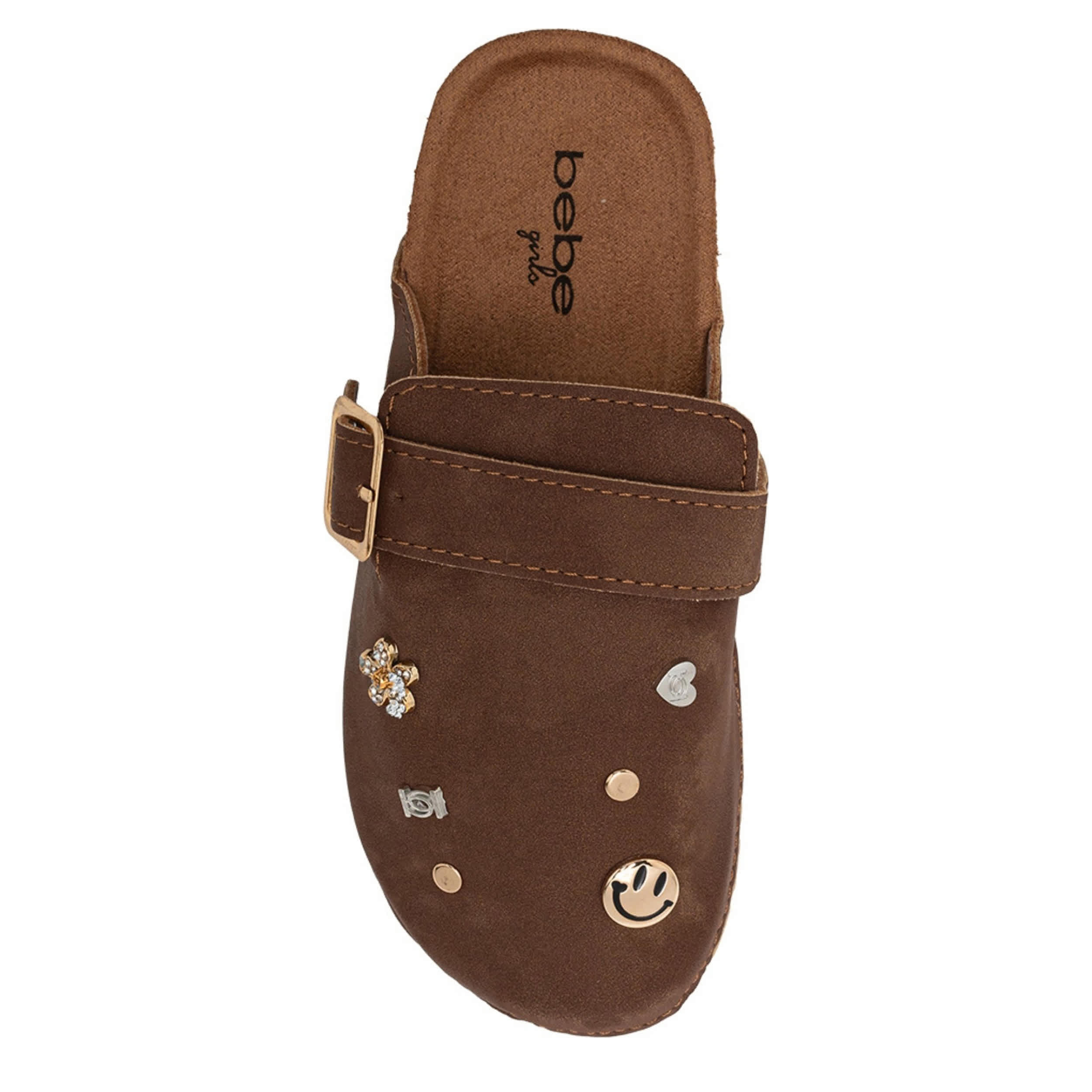 Her unique personality and the Dara girls' clog from bebe are a winning combo. Featuring a faux leather upper with a buckle strap and cute accents for flair, this cute shoe is perfect with thick socks. The footbed cradles her foot, while the sole provides textured traction.