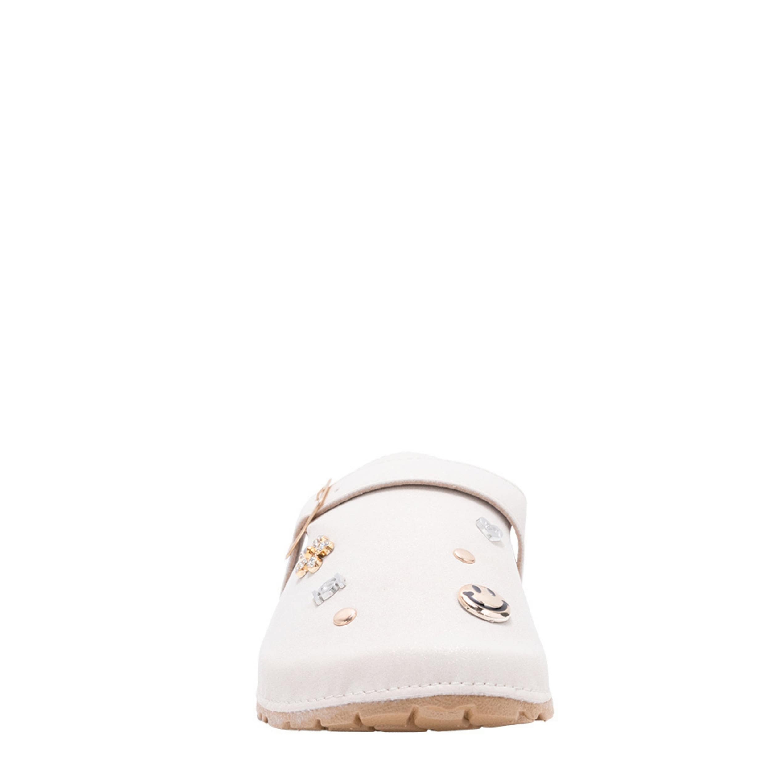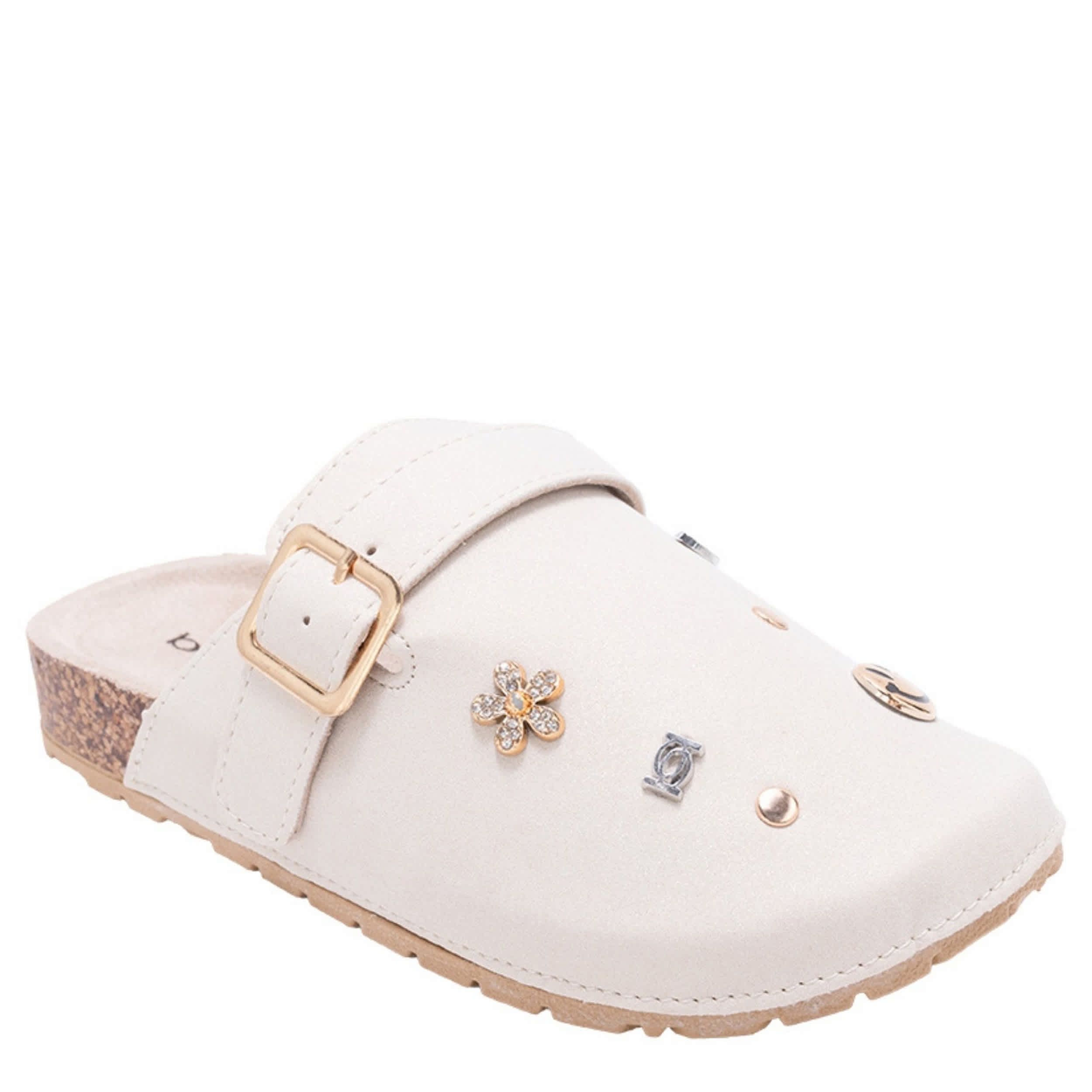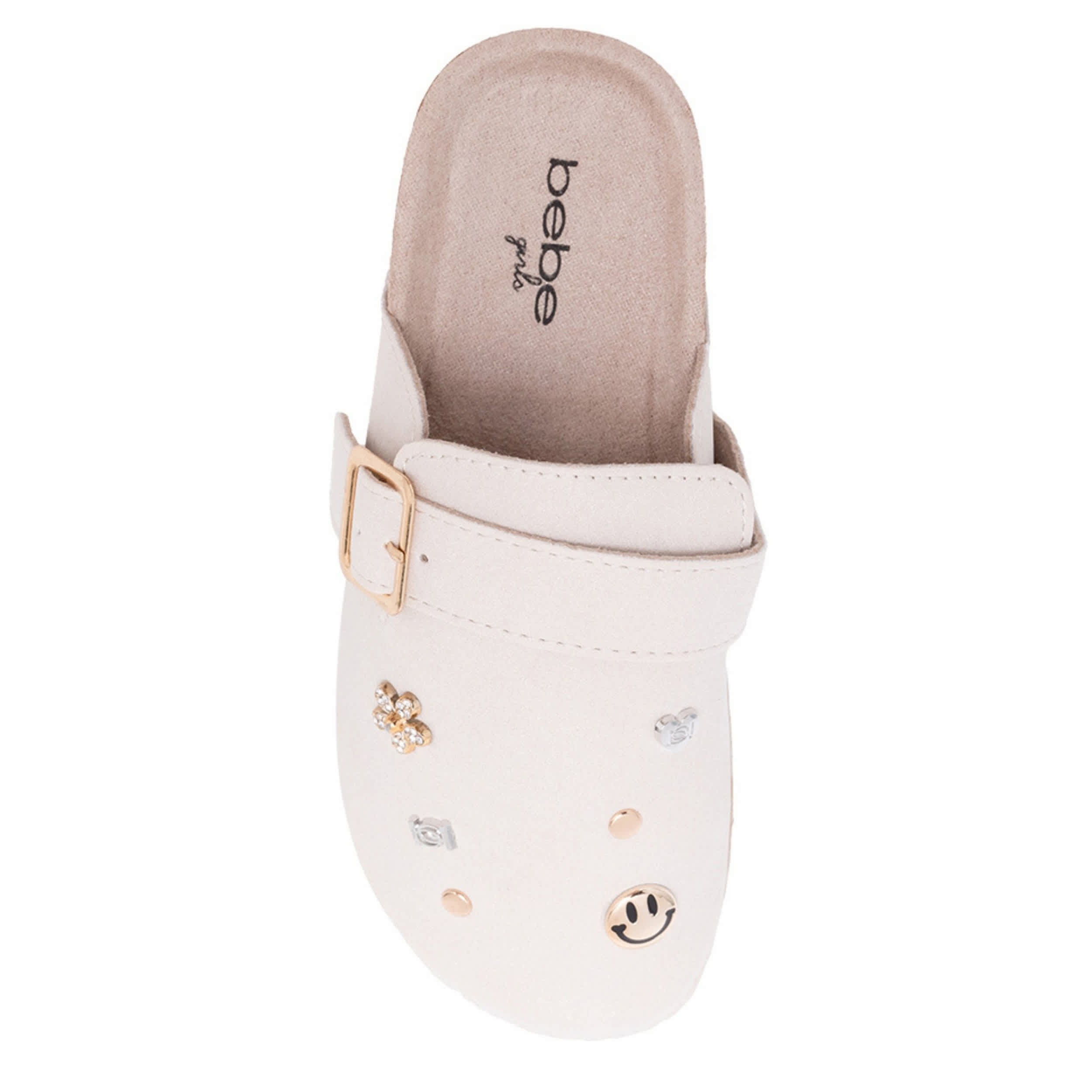 Her unique personality and the Dara girls' clog from bebe are a winning combo. Featuring a faux leather upper with a buckle strap and cute accents for flair, this cute shoe is perfect with thick socks. The footbed cradles her foot, while the sole provides textured traction.