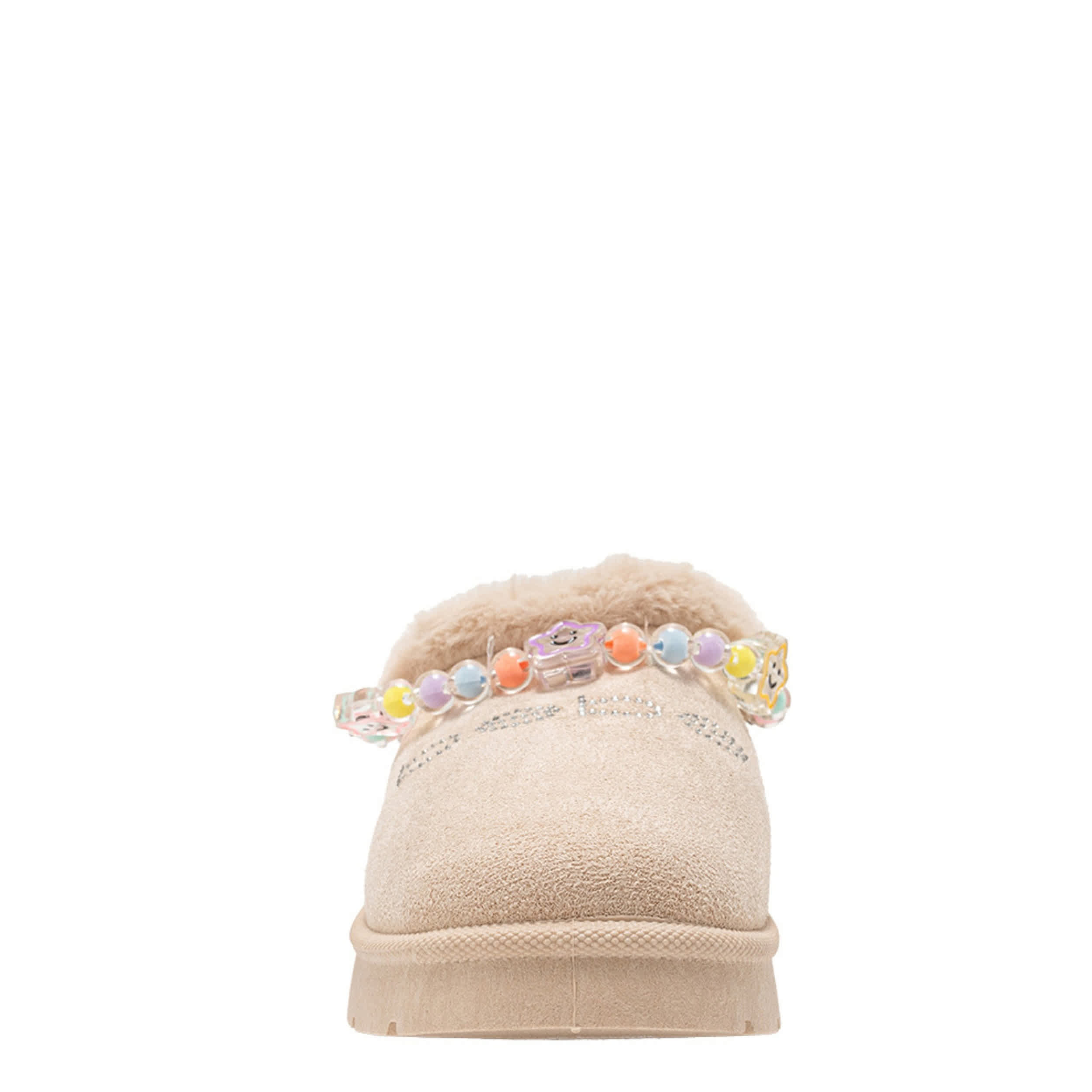 Charm your little one this fall with the Margot girls' slipper from bebe. Featuring a faux suede upper with the bebe logo and a cute charm bracelet detail, this cozy slipper is warm and soft. The footbed cradles her foot, while the sole provides durability.
