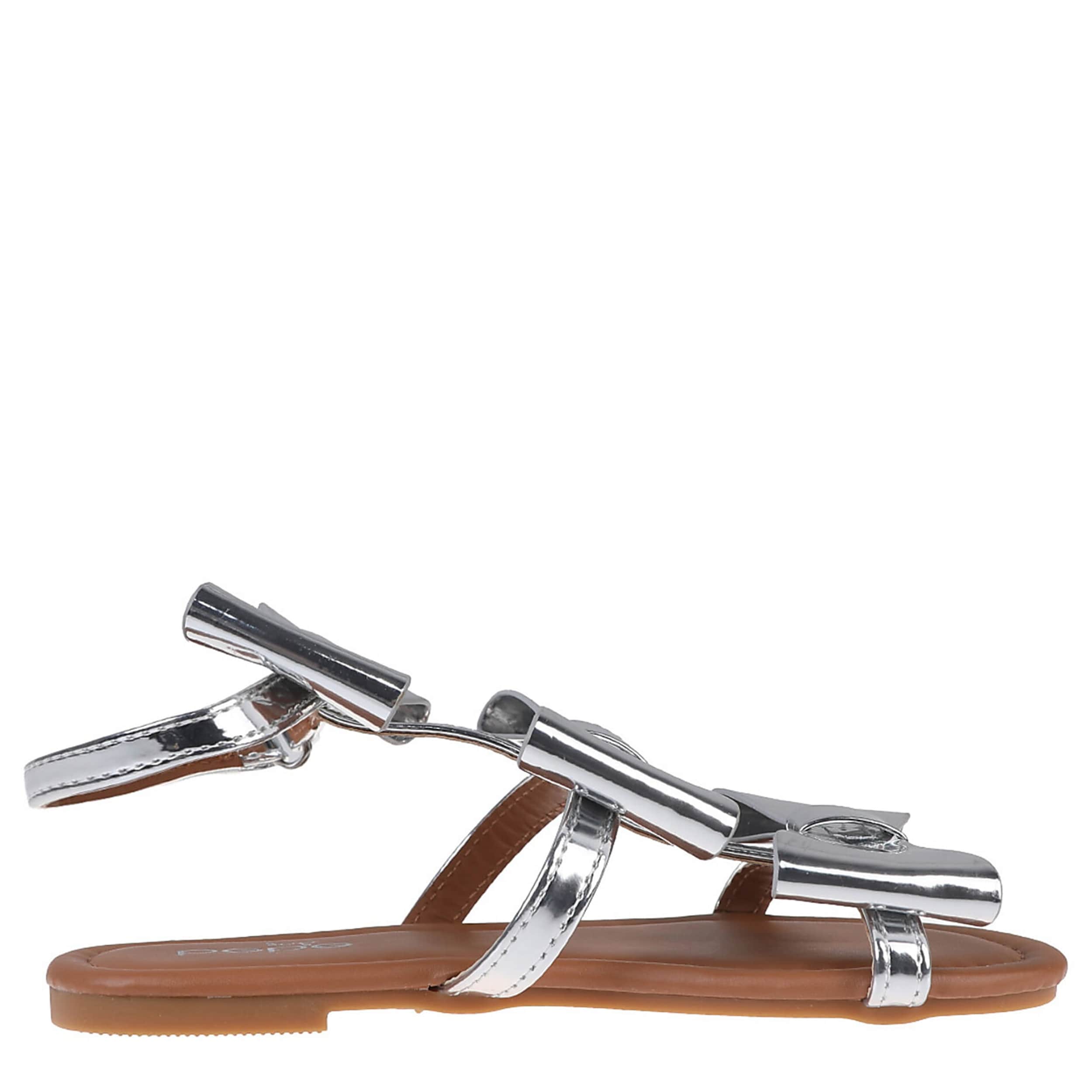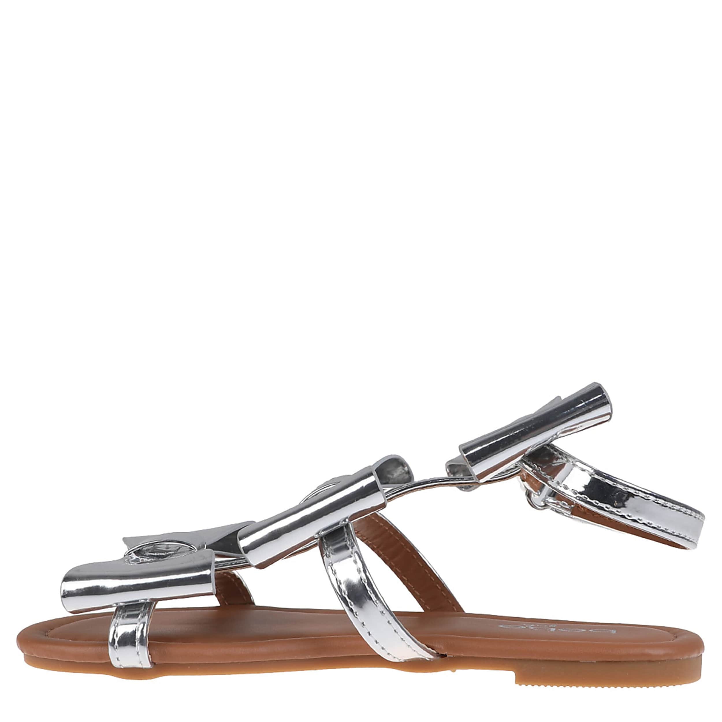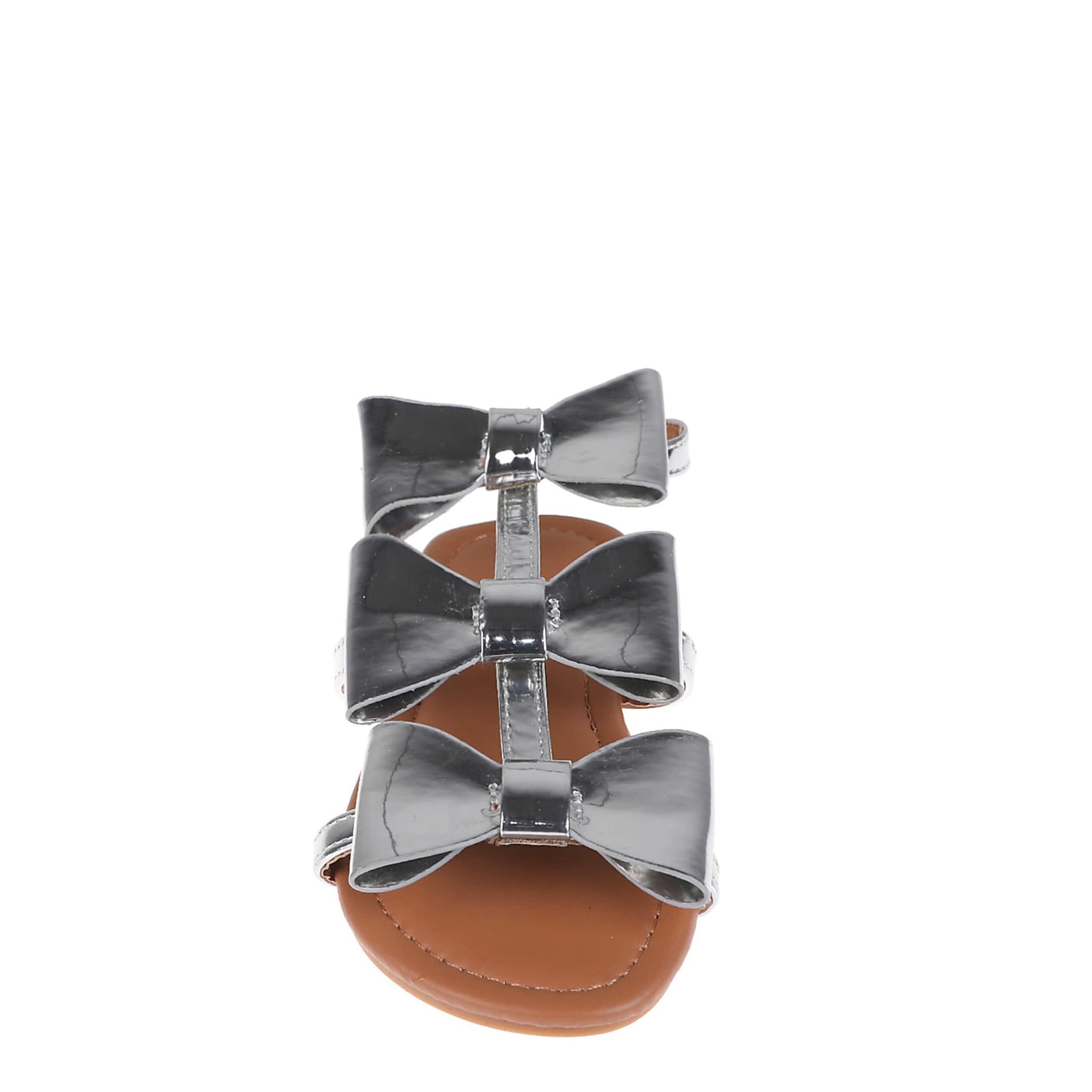 Top up her style with the bebe girls' sandal. Featuring a metallic shine upper in a minimalist style, this chic shoe fulfills her need to be a little fashionista. The insole cushions her steps, while the flat outsole offers durability.