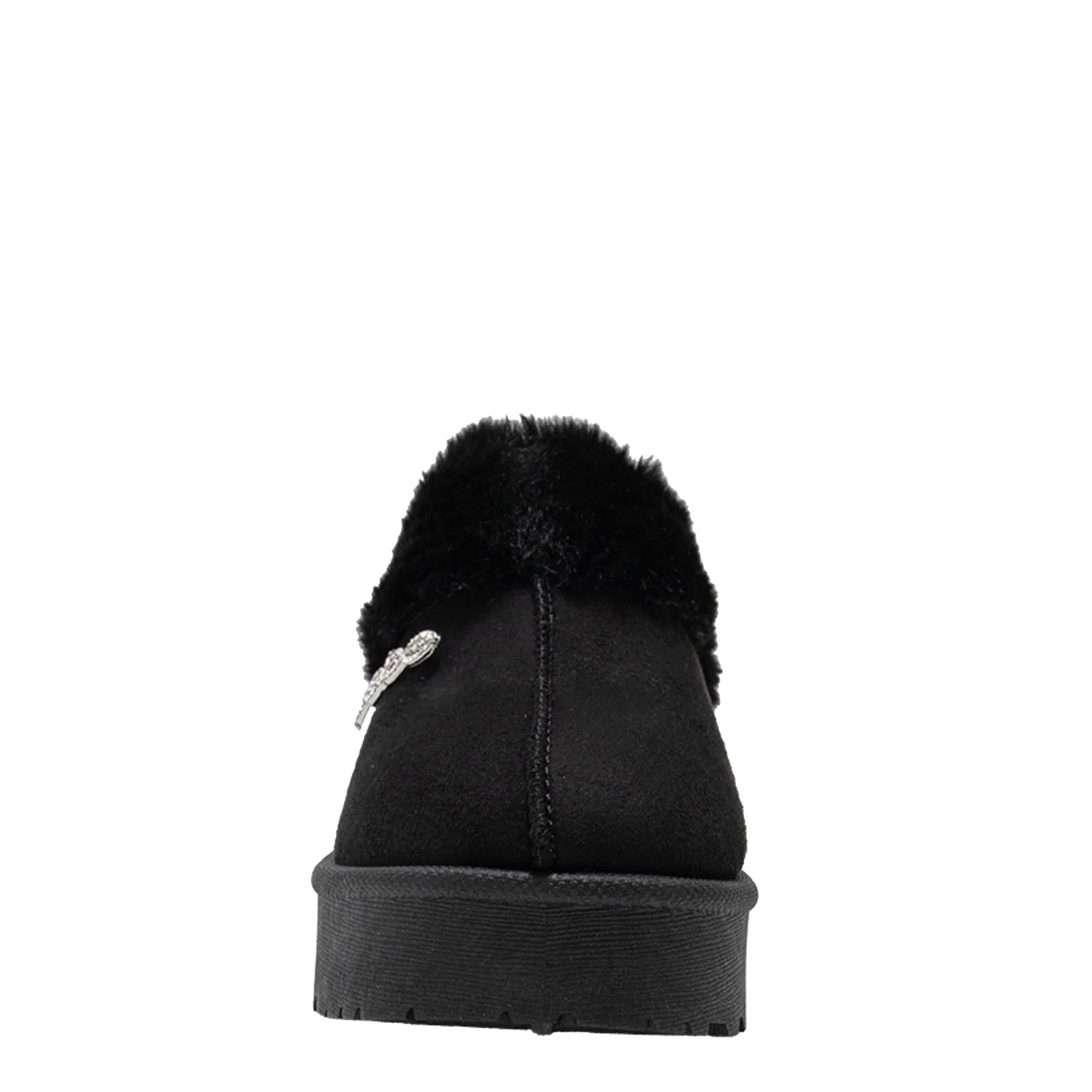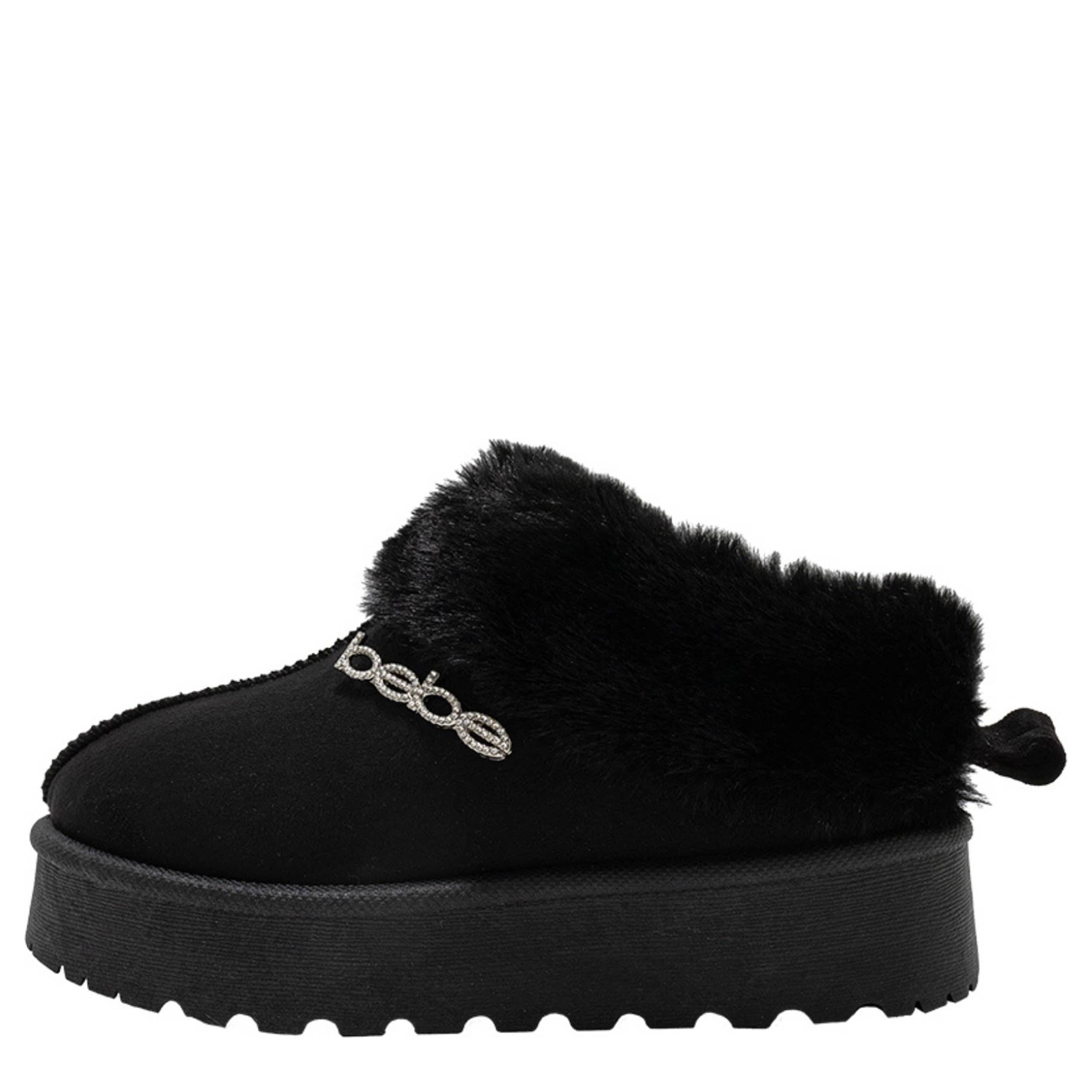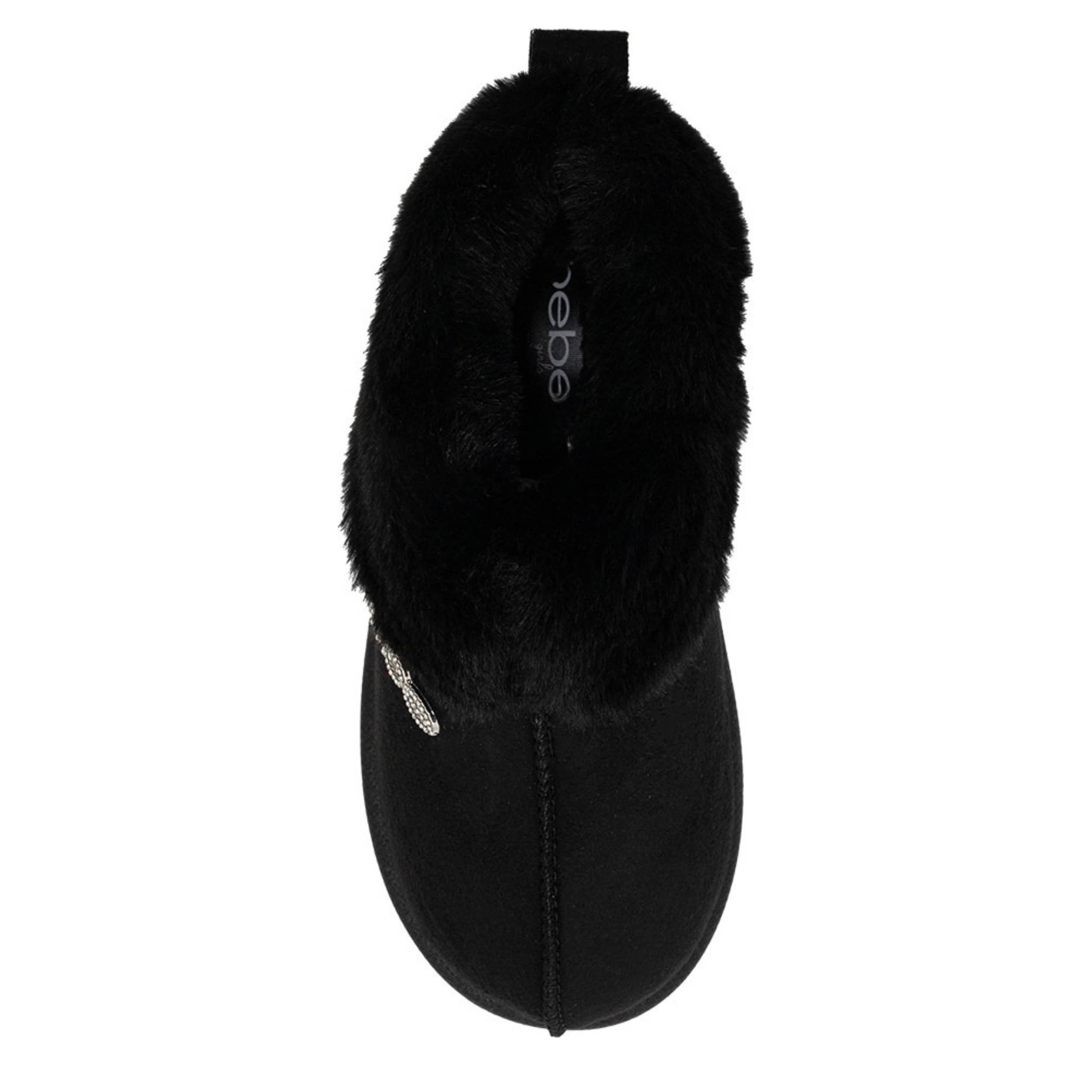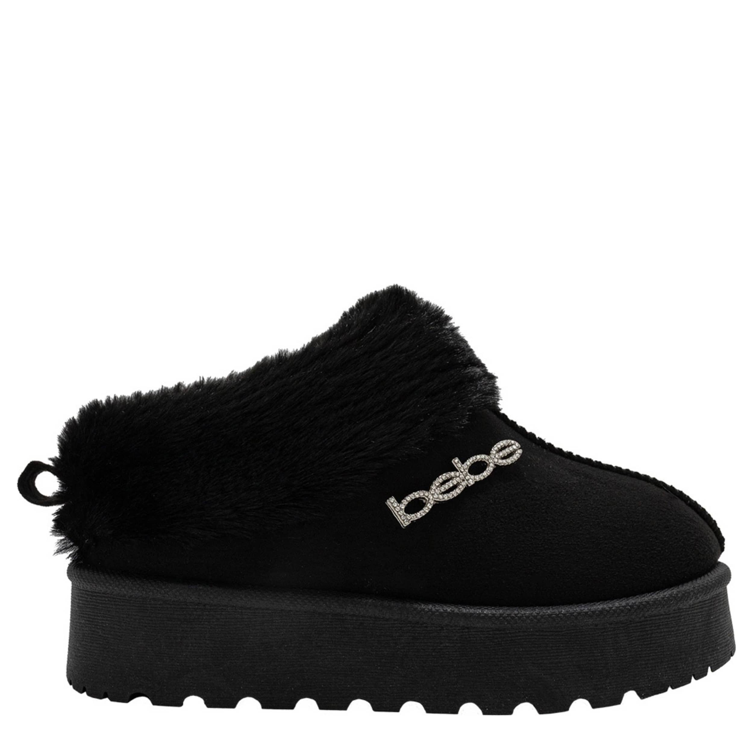 Bring more style to her look with the Sheryl girls' clog from bebe. Featuring a faux suede upper with the bebe logo and an all-black aesthetic, this cute shoe is cozy and fun. The Memory Foam comforts her foot, while the sole provides a little lift.