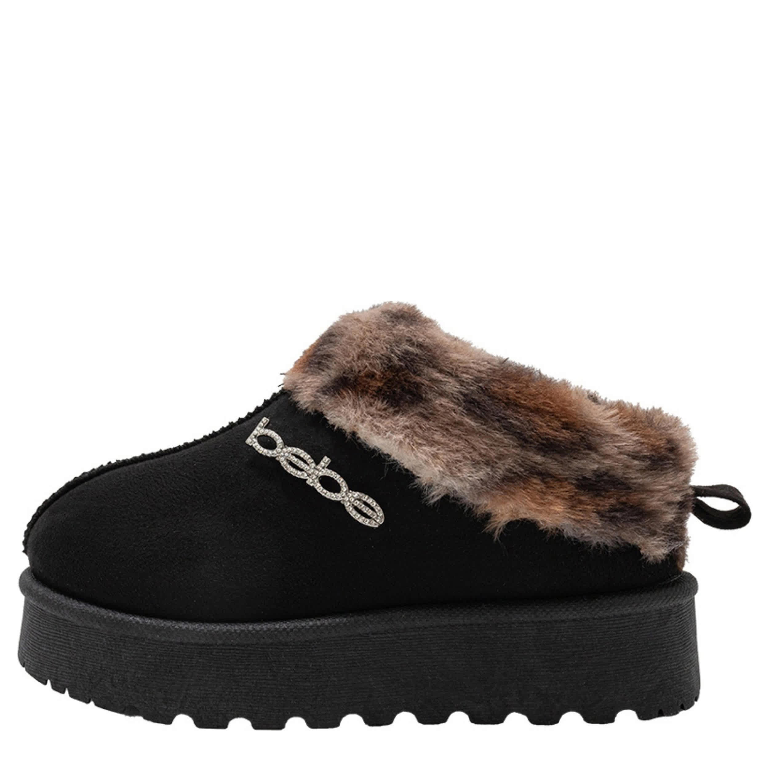 Bring more style to her look with the Sheryl girls' clog from bebe. Featuring a faux suede upper with the bebe logo and a leopard printed collar, this cute shoe is cozy and fun. The Memory Foam comforts her foot, while the sole provides a little lift.