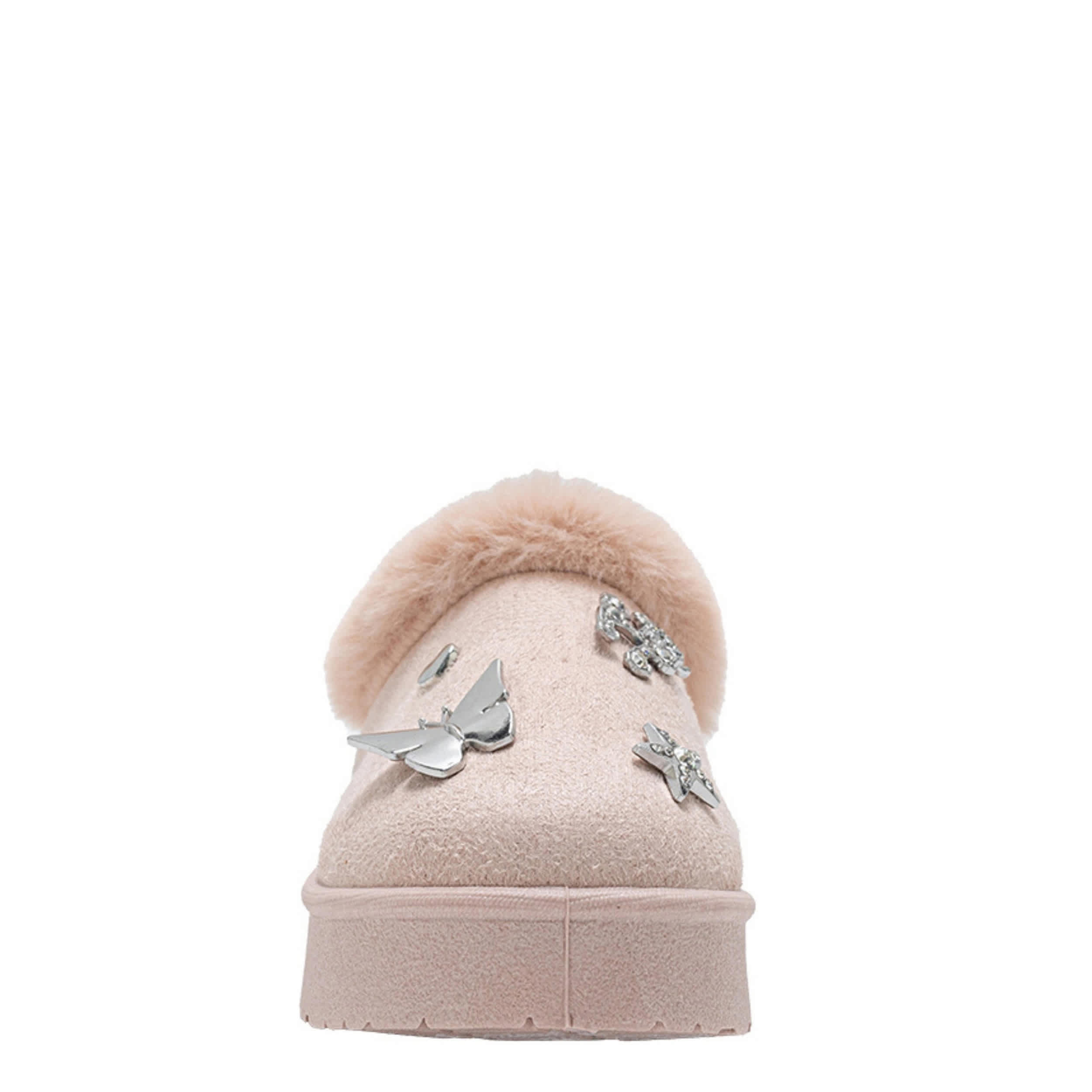 Please your littlest one this fall with the Christy infant girls' slipper from bebe. Featuring a faux suede upper with cute metallic & rhinestone charms, this cozy slipper is warm and soft. The footbed cradles her little foot, while the sole provides durability.