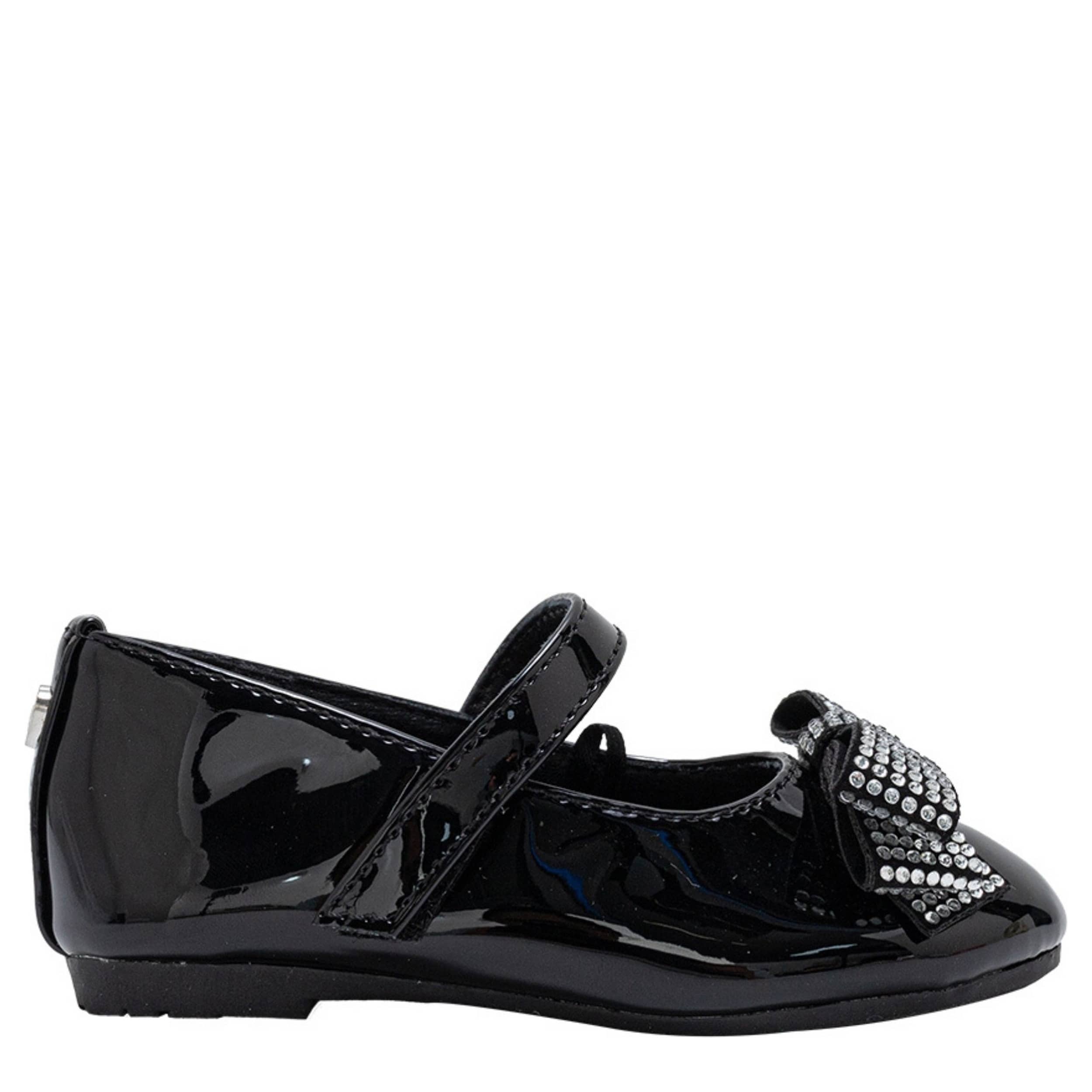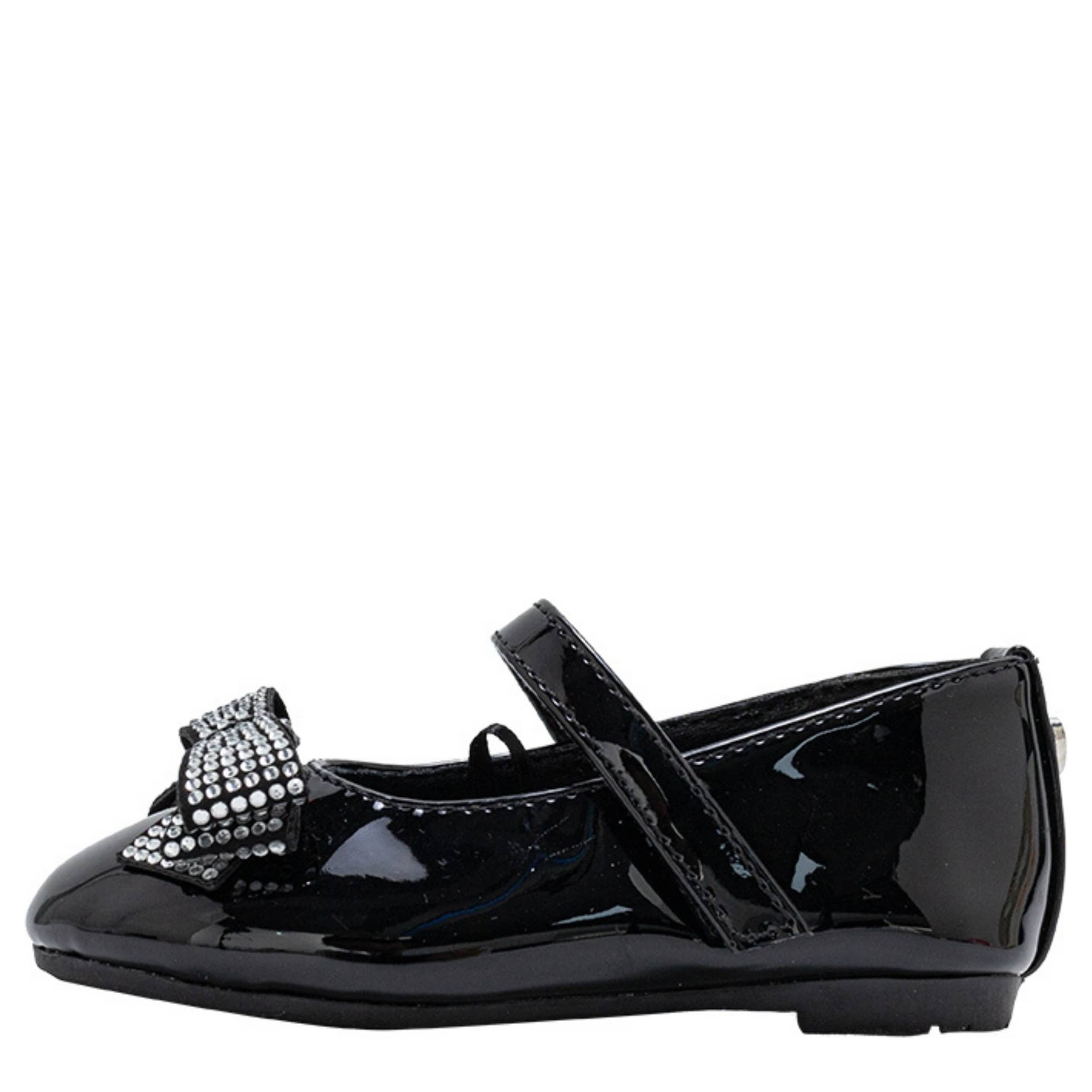 Look the part in the Lil Gabby infant girls' dress shoe from bebe. Featuring a glossy patent leather upper with a rhinestone bow at the vamp, your tiny star will look so put together. Meanwhile, the comfy footbed and durable outsole support every little step.