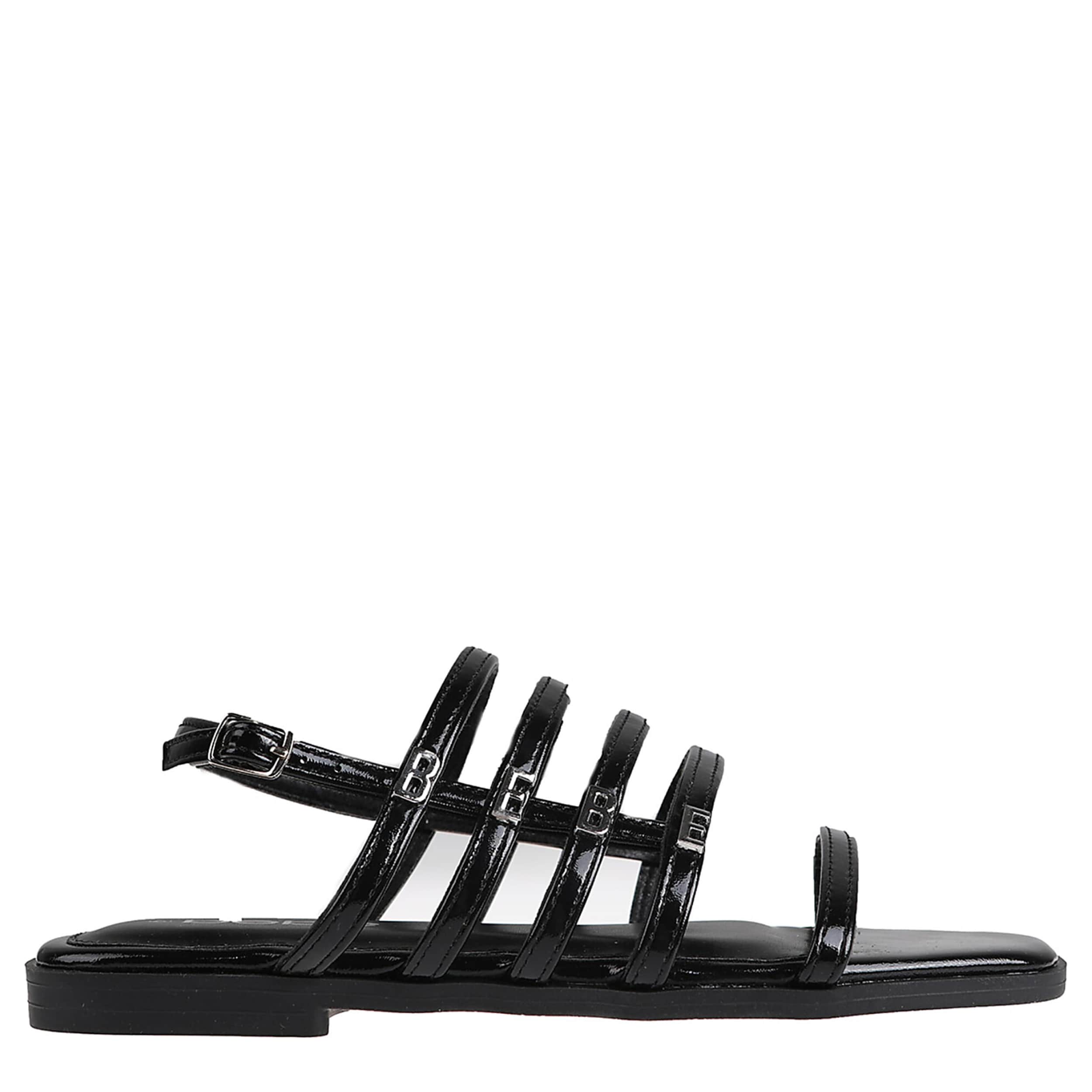 Add the chic bebe Alice sandal to your closet for summer. Featuring a strappy patent leather upper with a “BEBE" logo hardware along the sides, this glossy sandal stands out at dinner with friends. The insole soothes your foot, while the durable outsole provides textured traction.