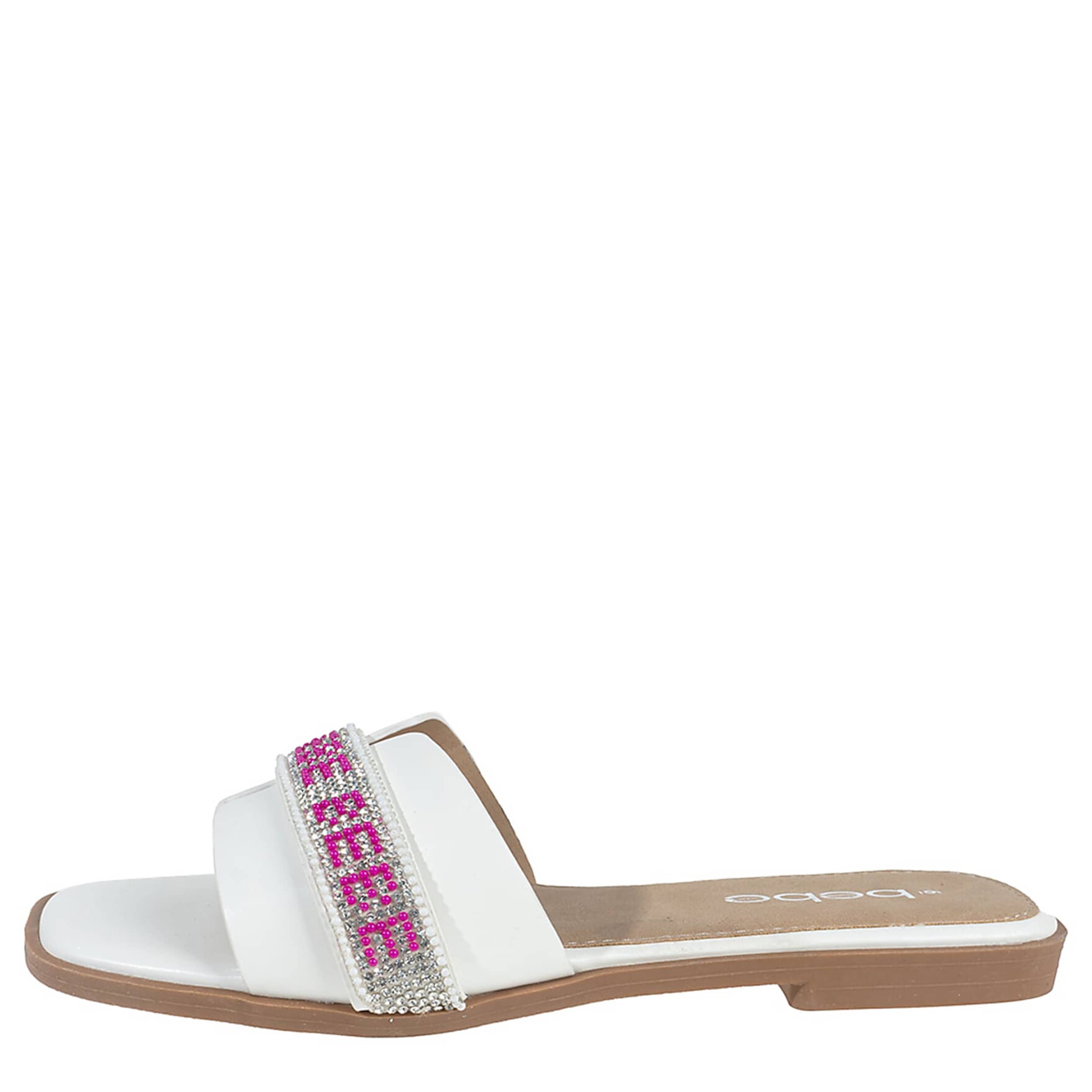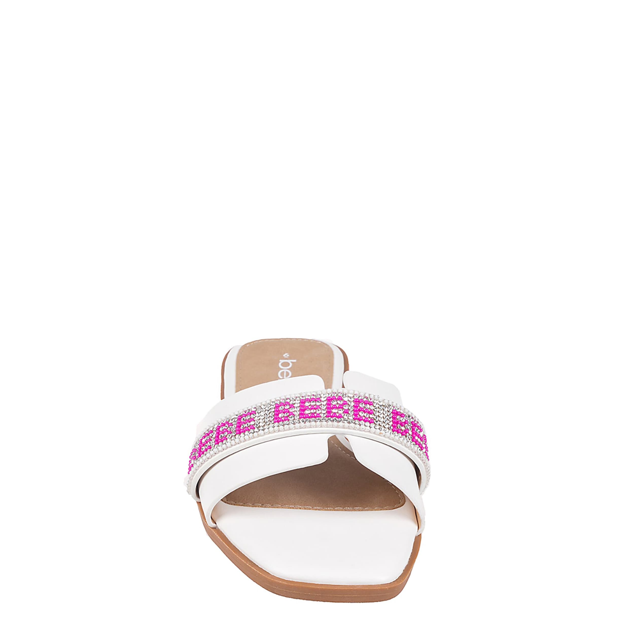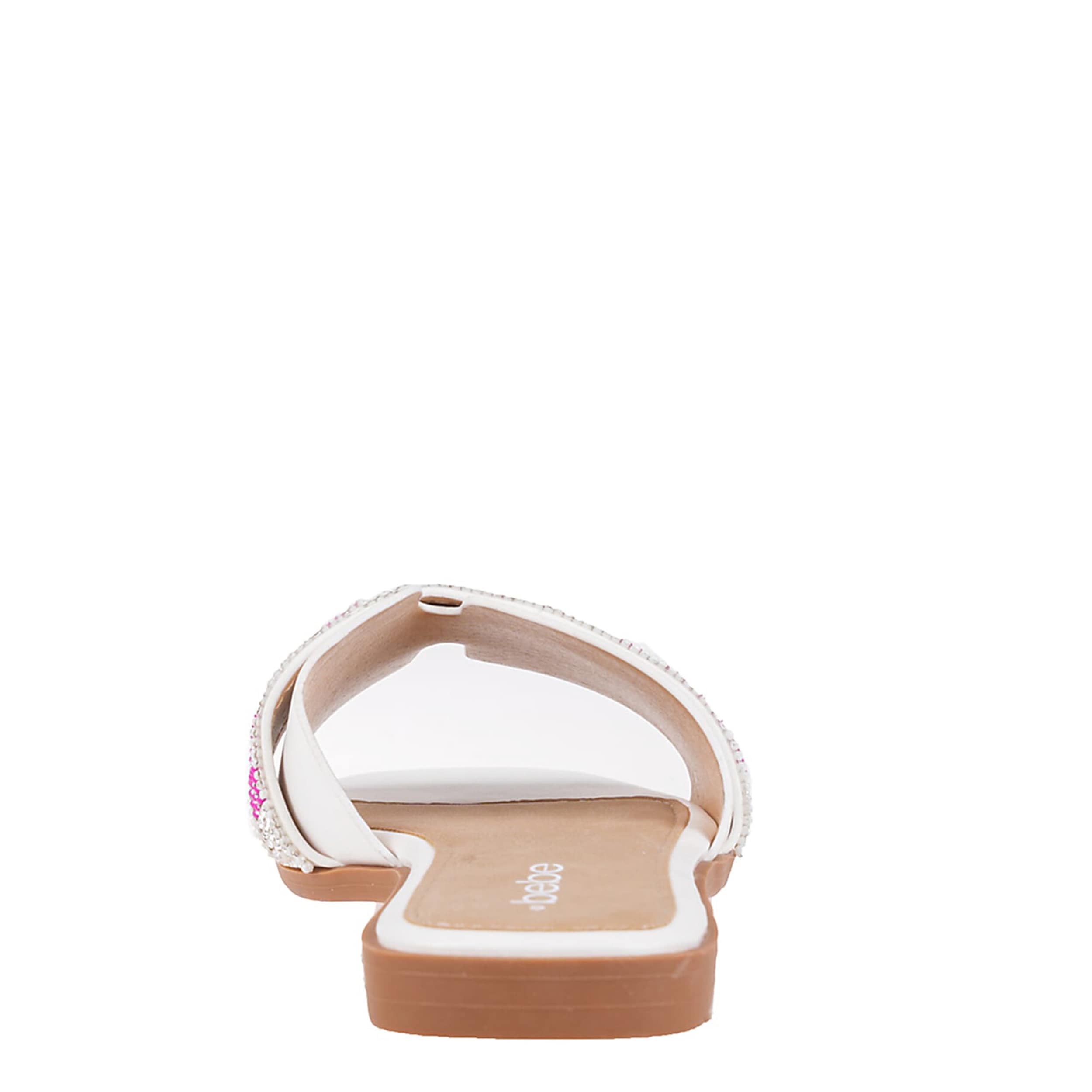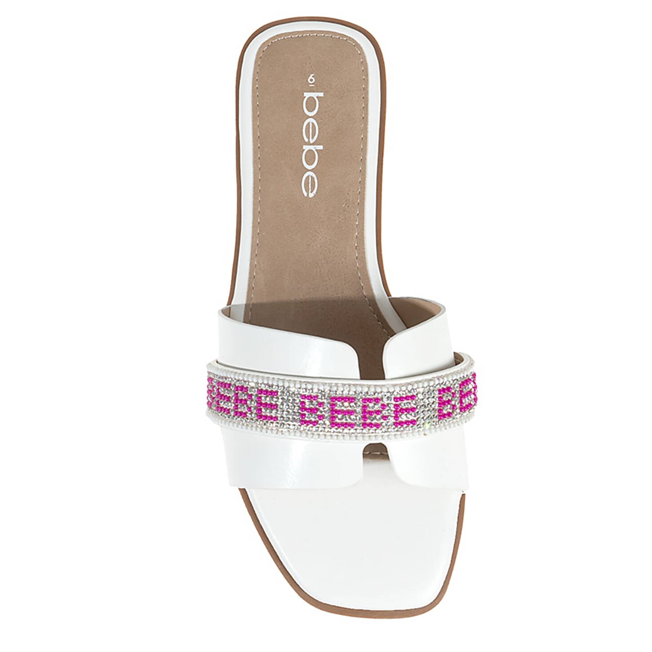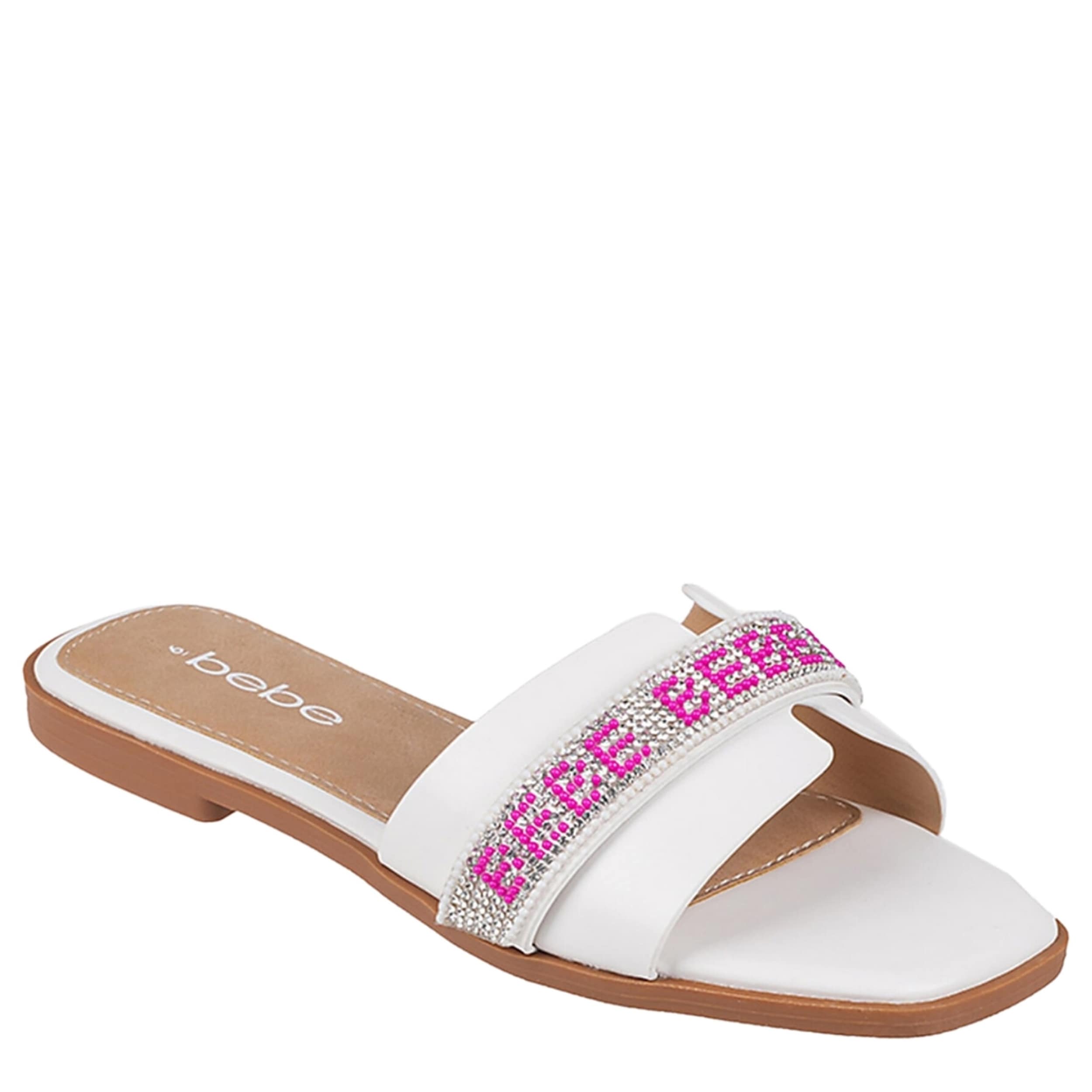 Dress up, but keep things light in the Amara slide sandal from bebe. Featuring a faux leather upper with a rhinestone logo strap, this H-strap sandal exudes charm and sophistication. The insole soothes your foot, while the durable outsole offers textured traction for all your moves.