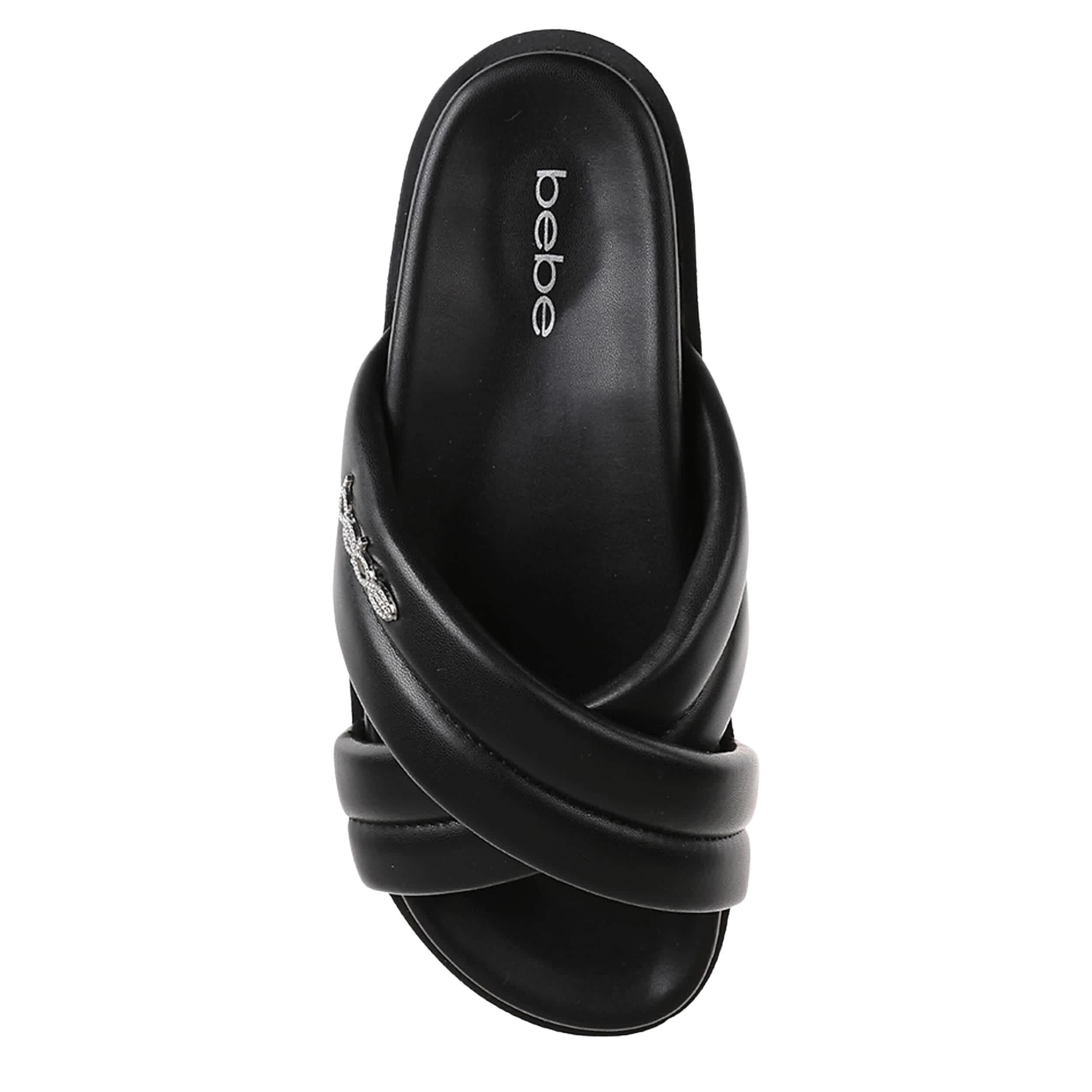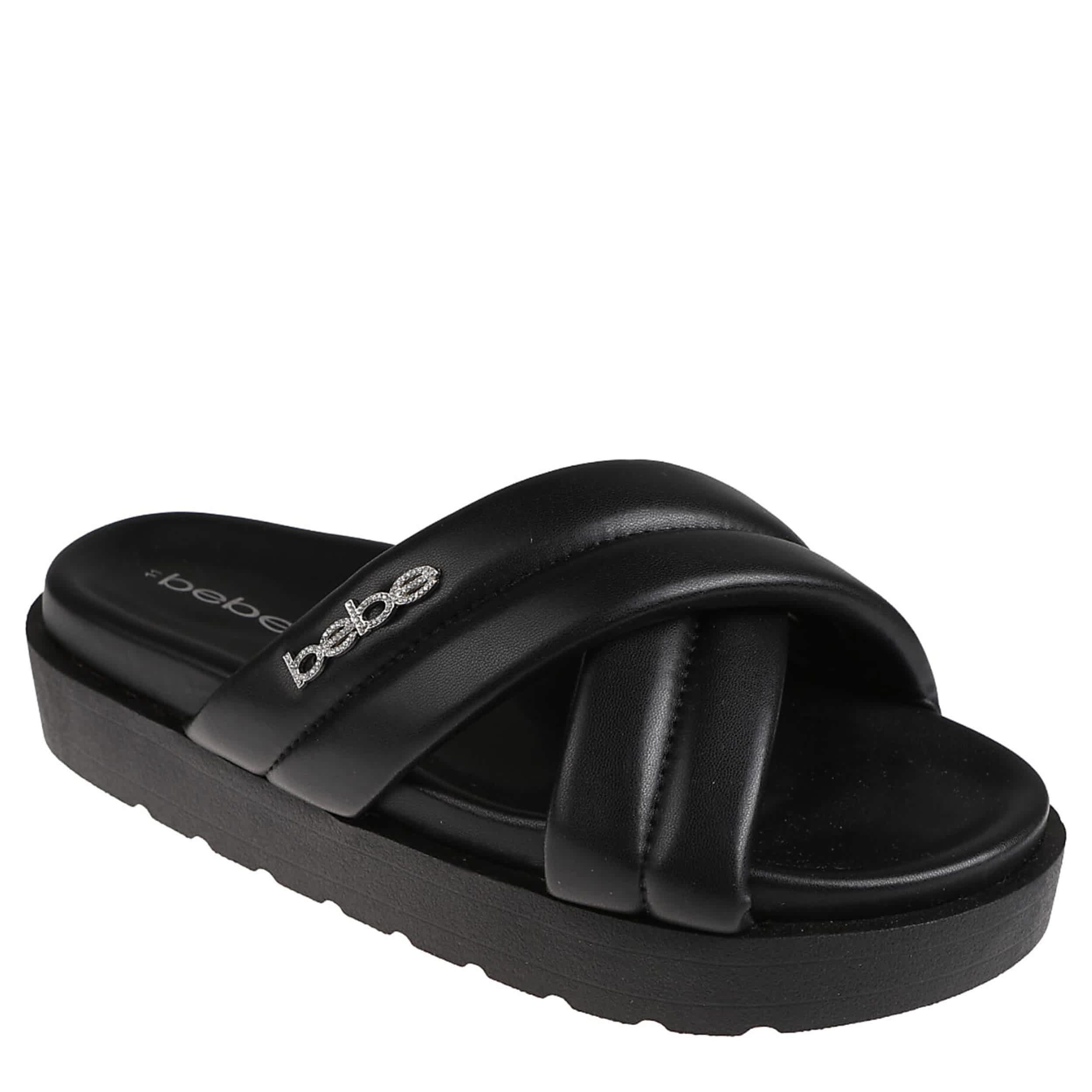 Wrap your feet in stylish comfort with the bebe Angelina sandal. Featuring a faux leather upper with puffy straps for fashionable support, this sandal is athleisure sharp. The plush footbed cradles your foot, while the platform sole adds just enough lift.