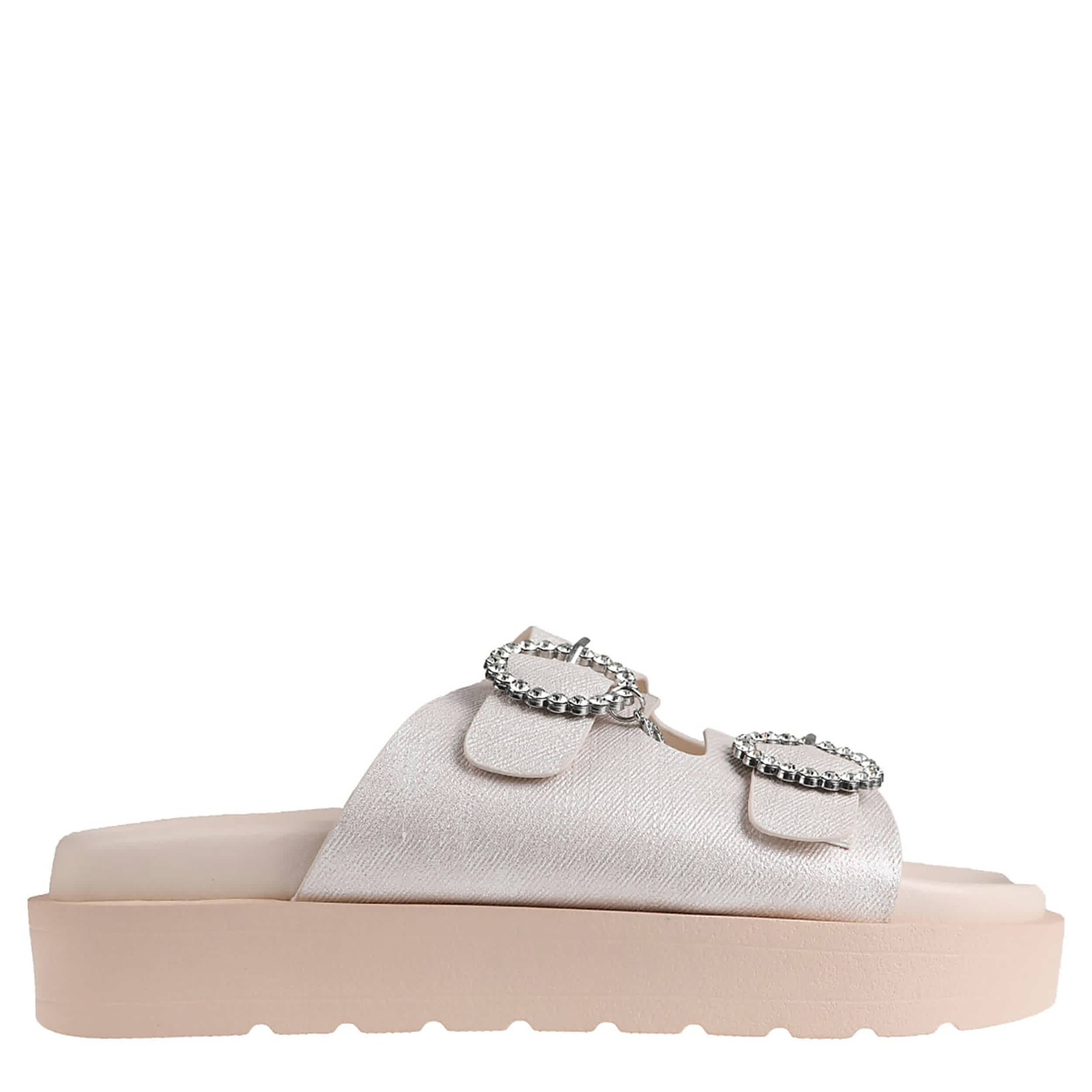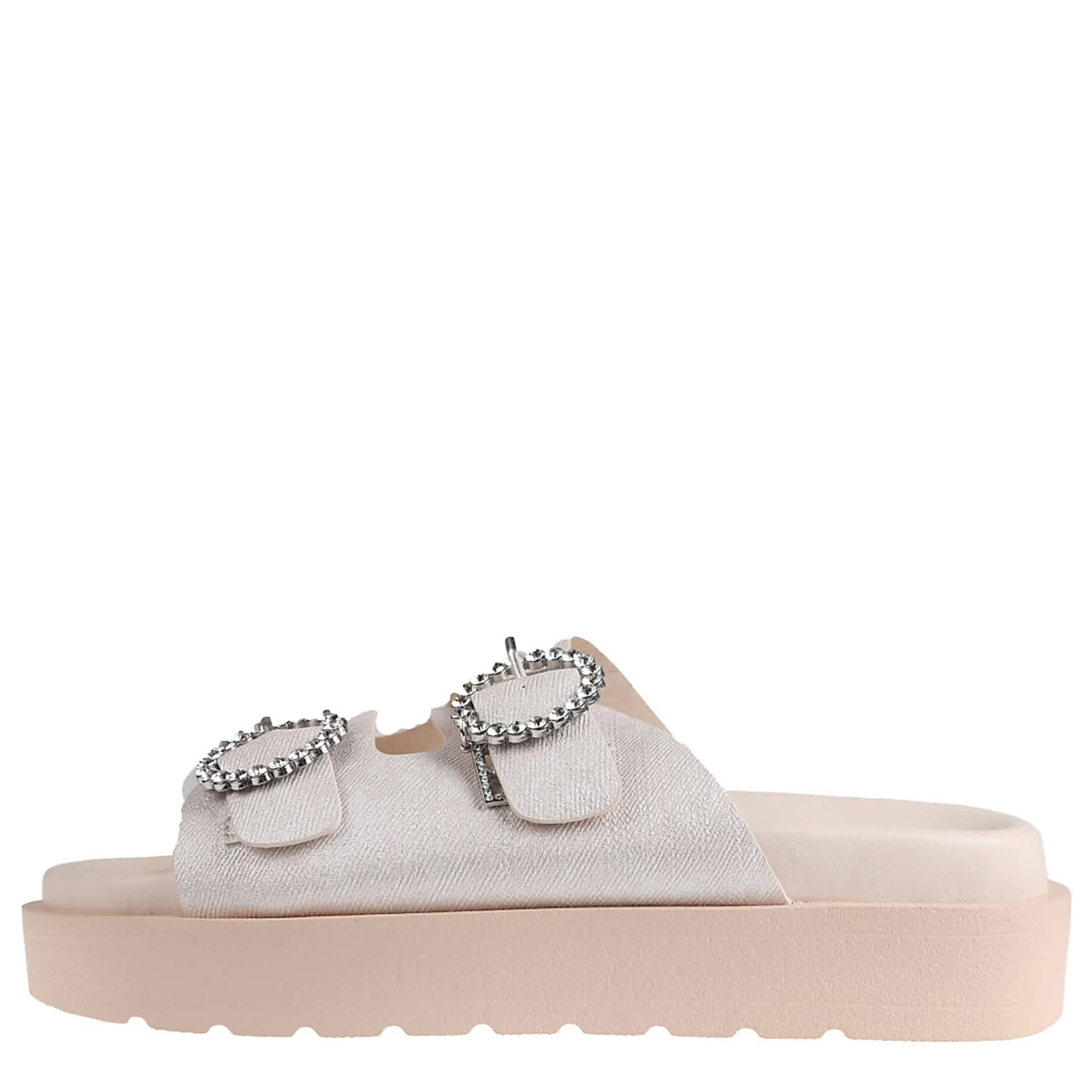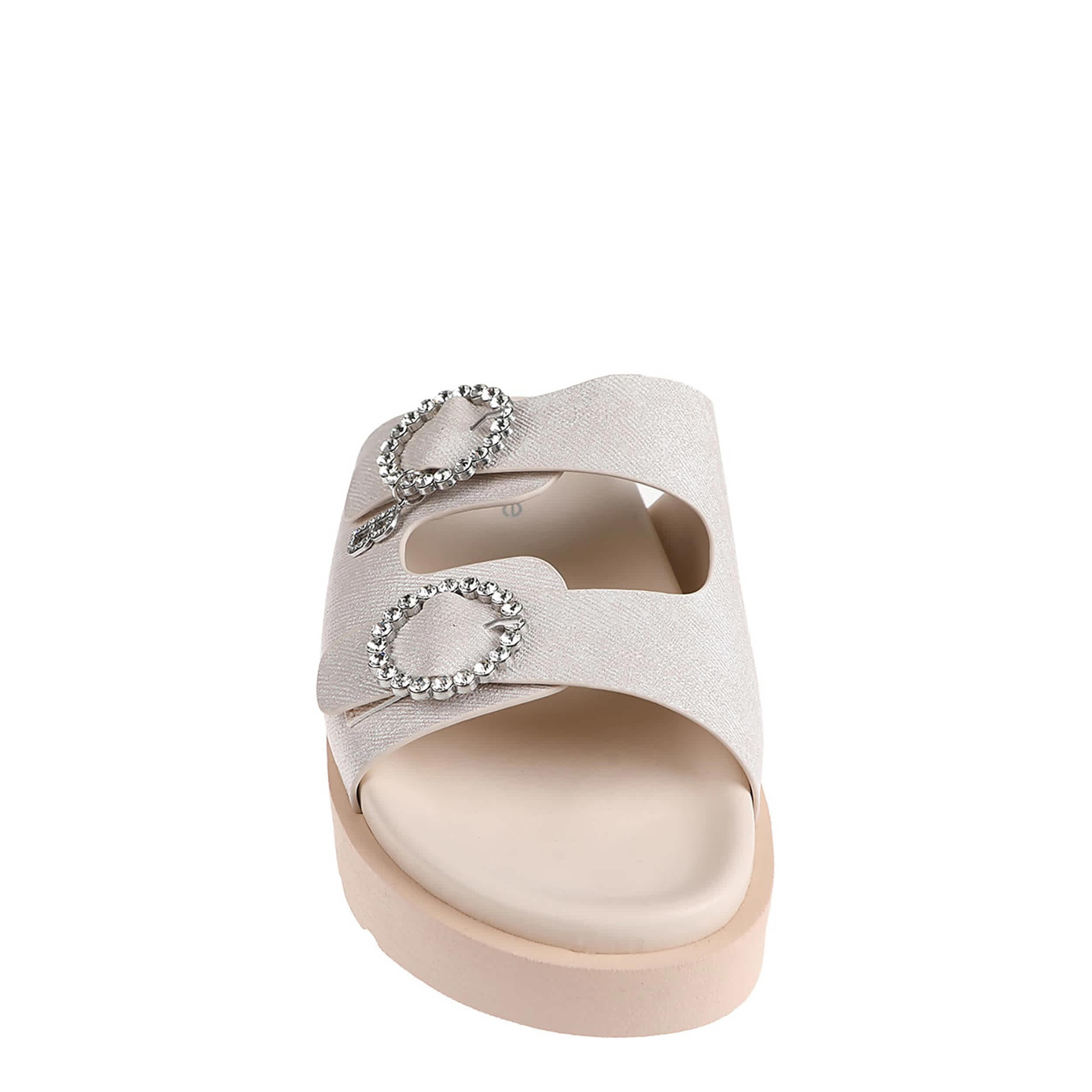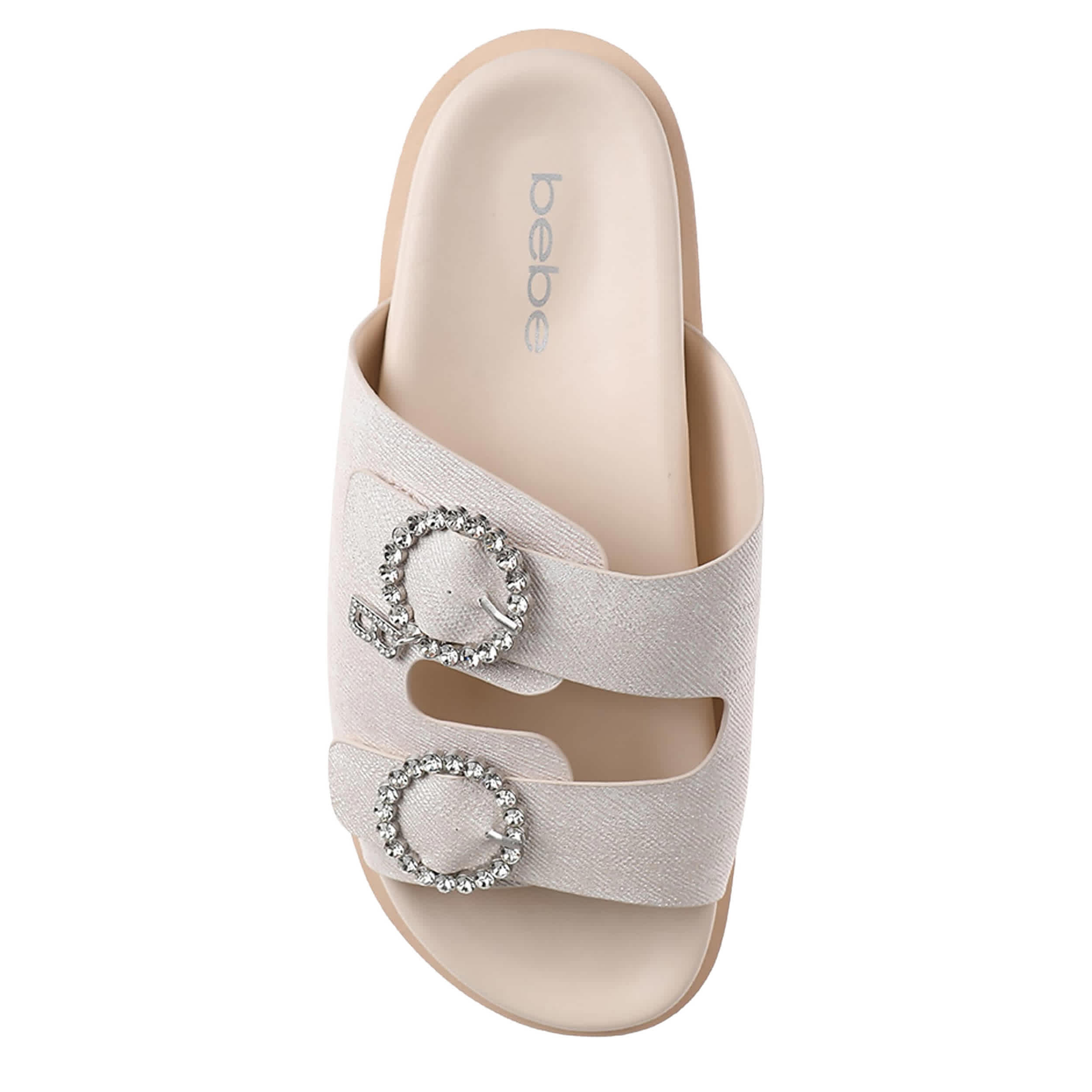 Laid-back elegance comes easy with the bebe Arabella sandal. Featuring a textured upper with sparkly buckles for extra style, this shoe elevates any summer look. The plush footbed cradles your foot, while the platform sole offers lift.