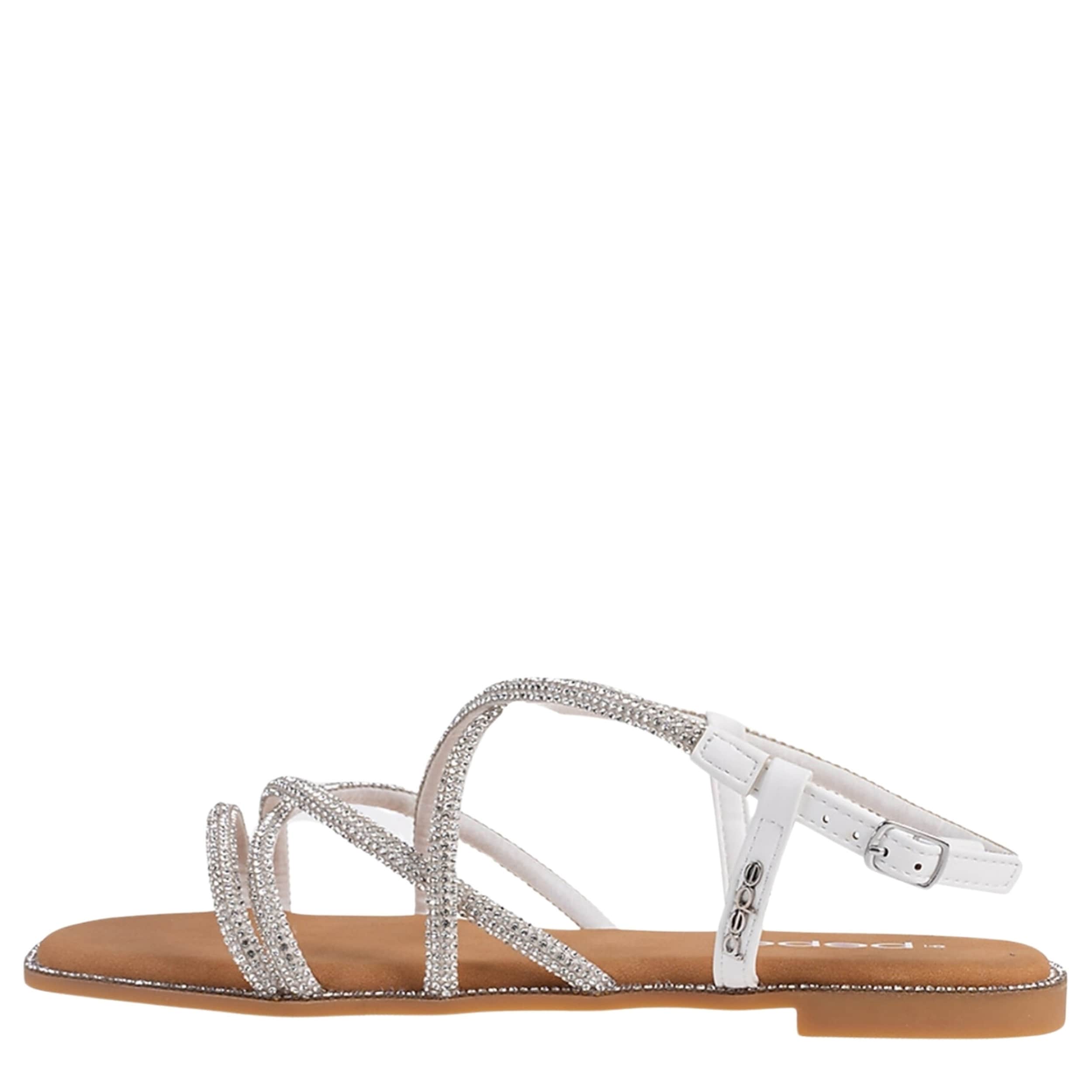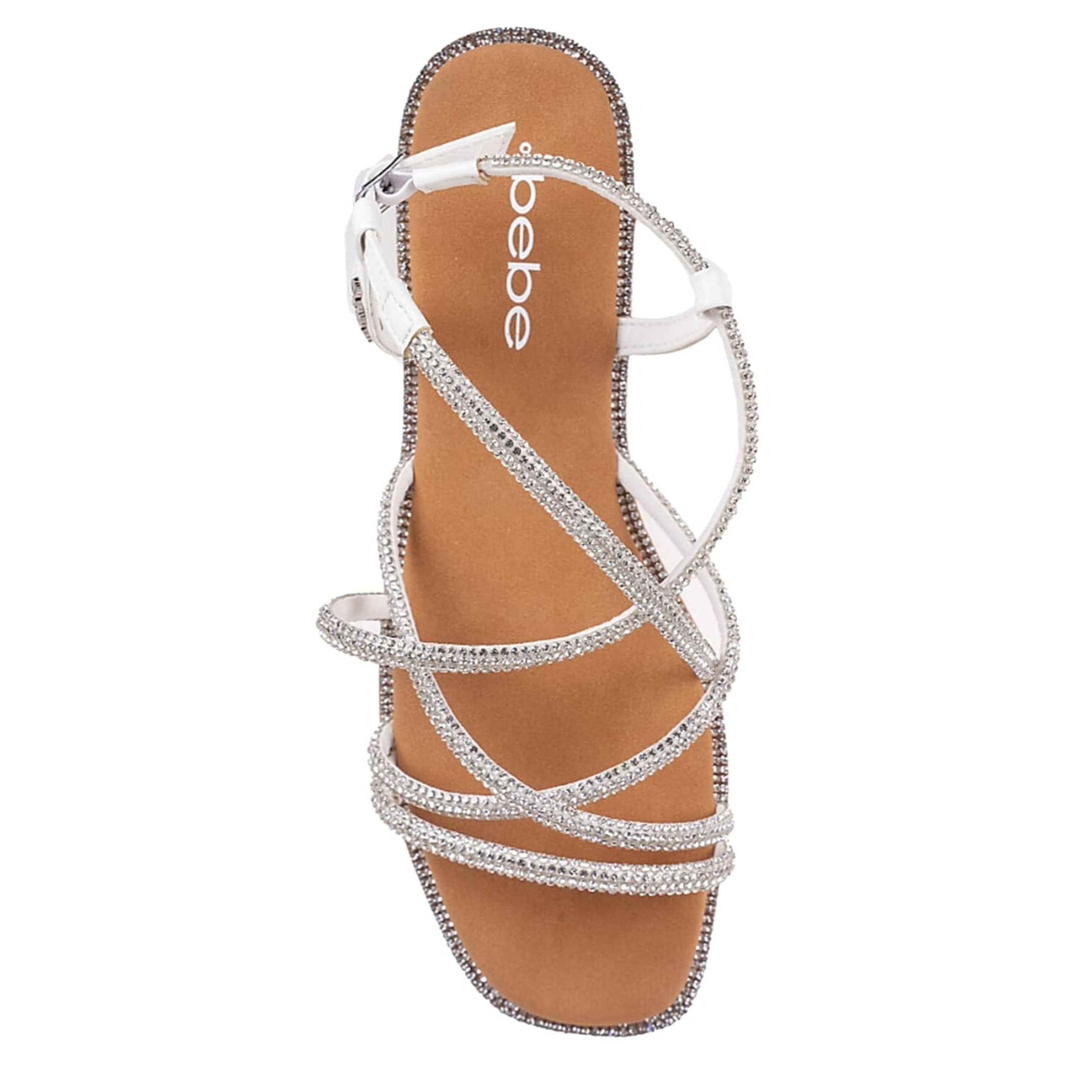 Sparkly is a summer staple with the bebe Coleen sandal. Featuring a faux leather upper in a rhinestone-accented, strappy design, this sandal is perfect for pairing with shorts or a dress. The insole soothes your foot, while the durable outsole offers traction for wherever your steps take you.