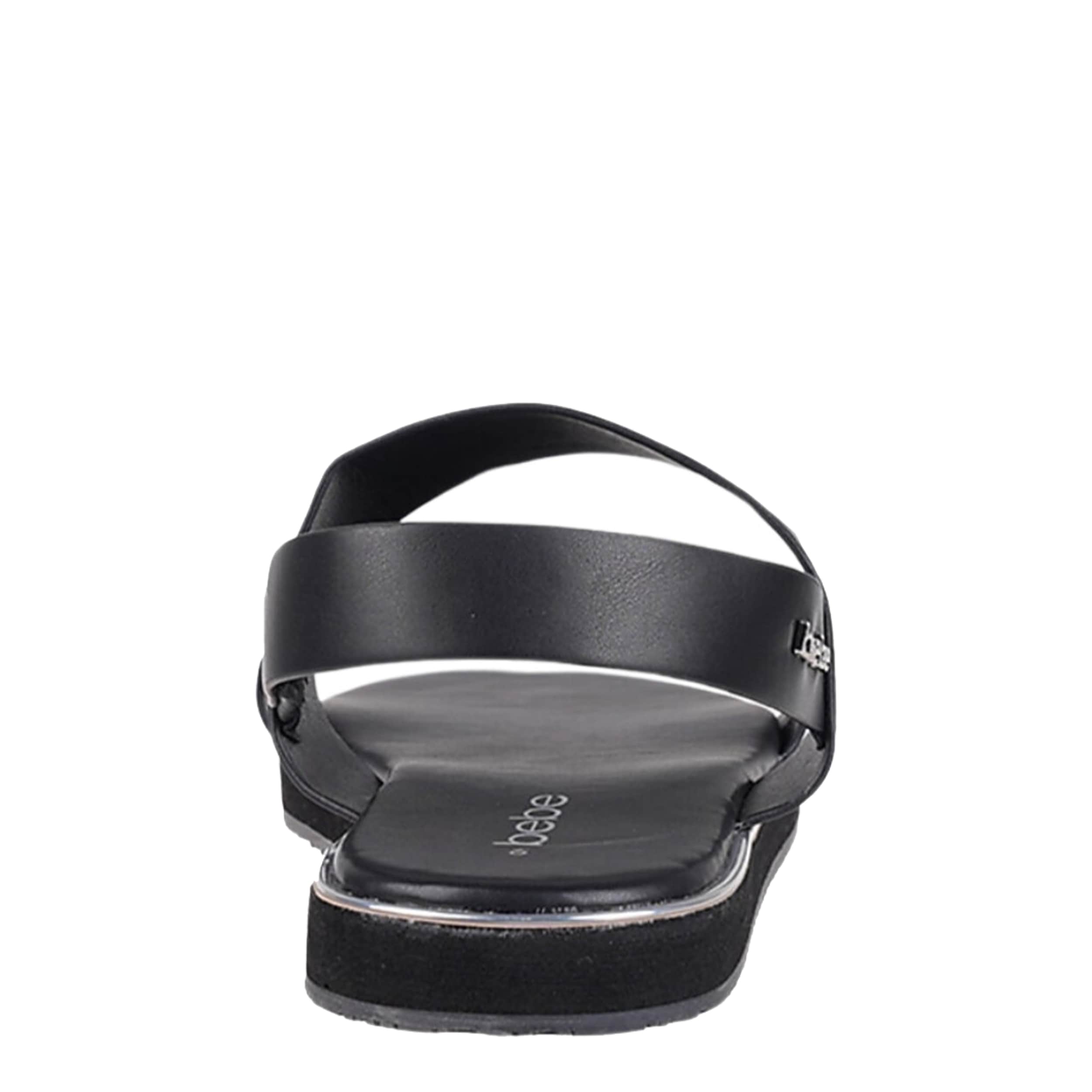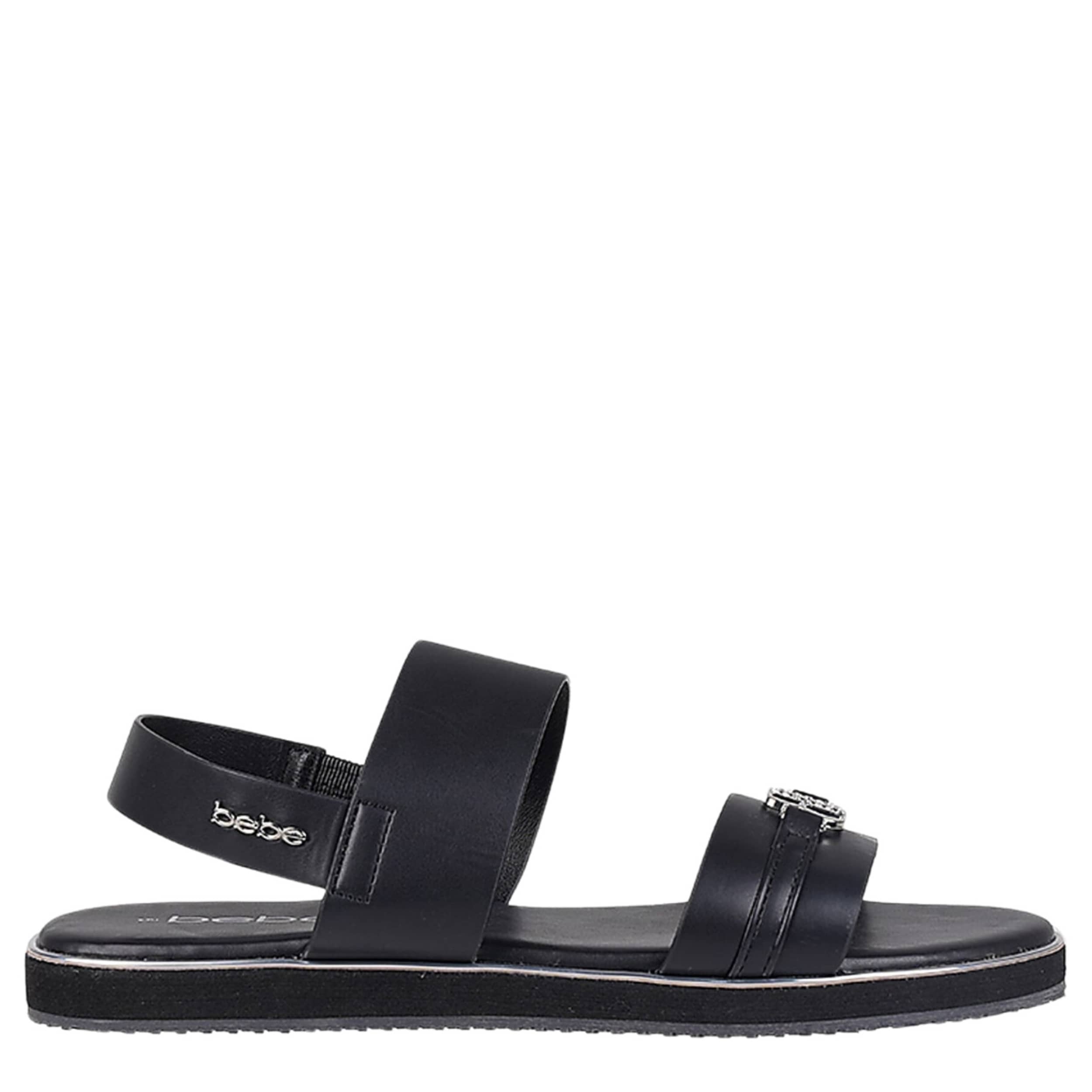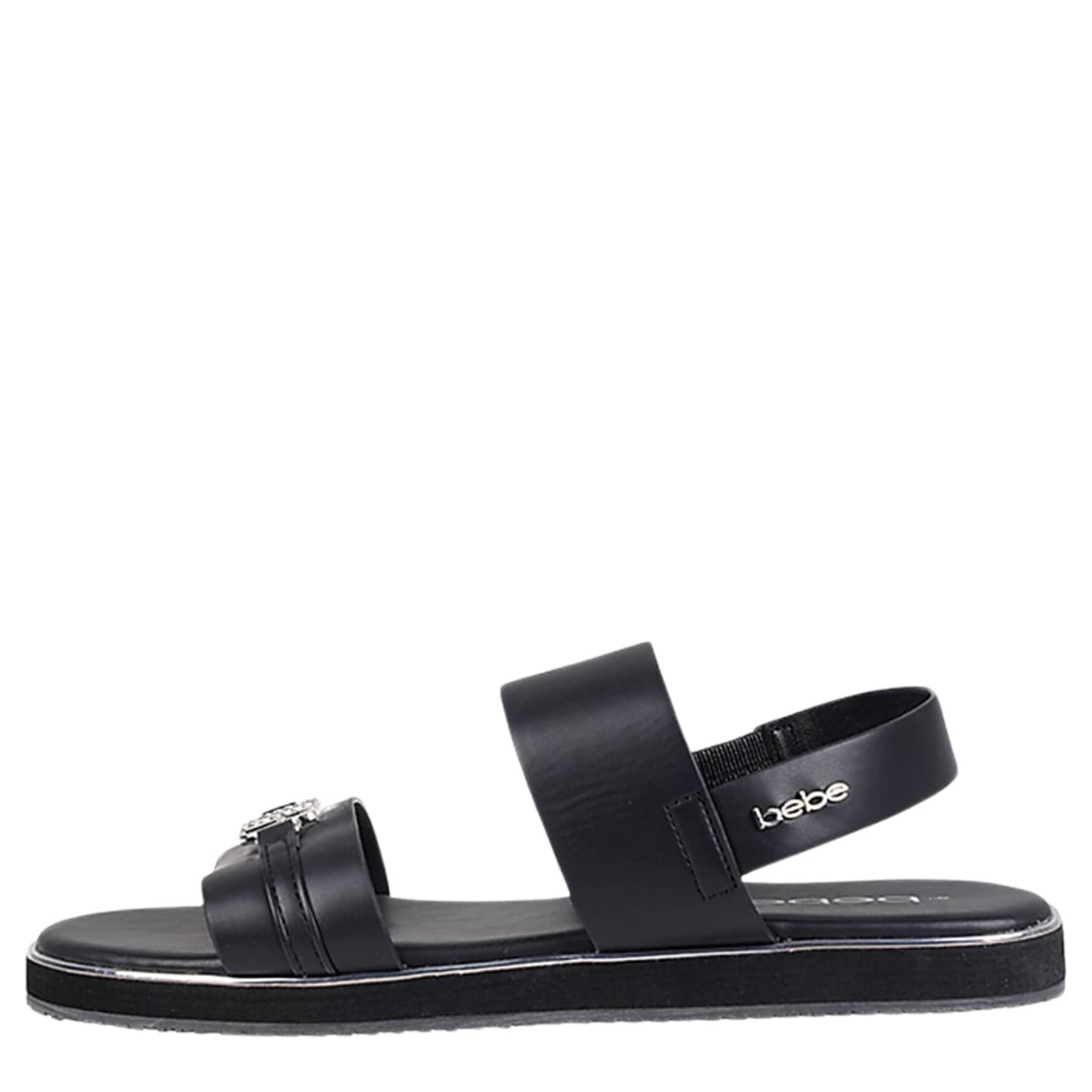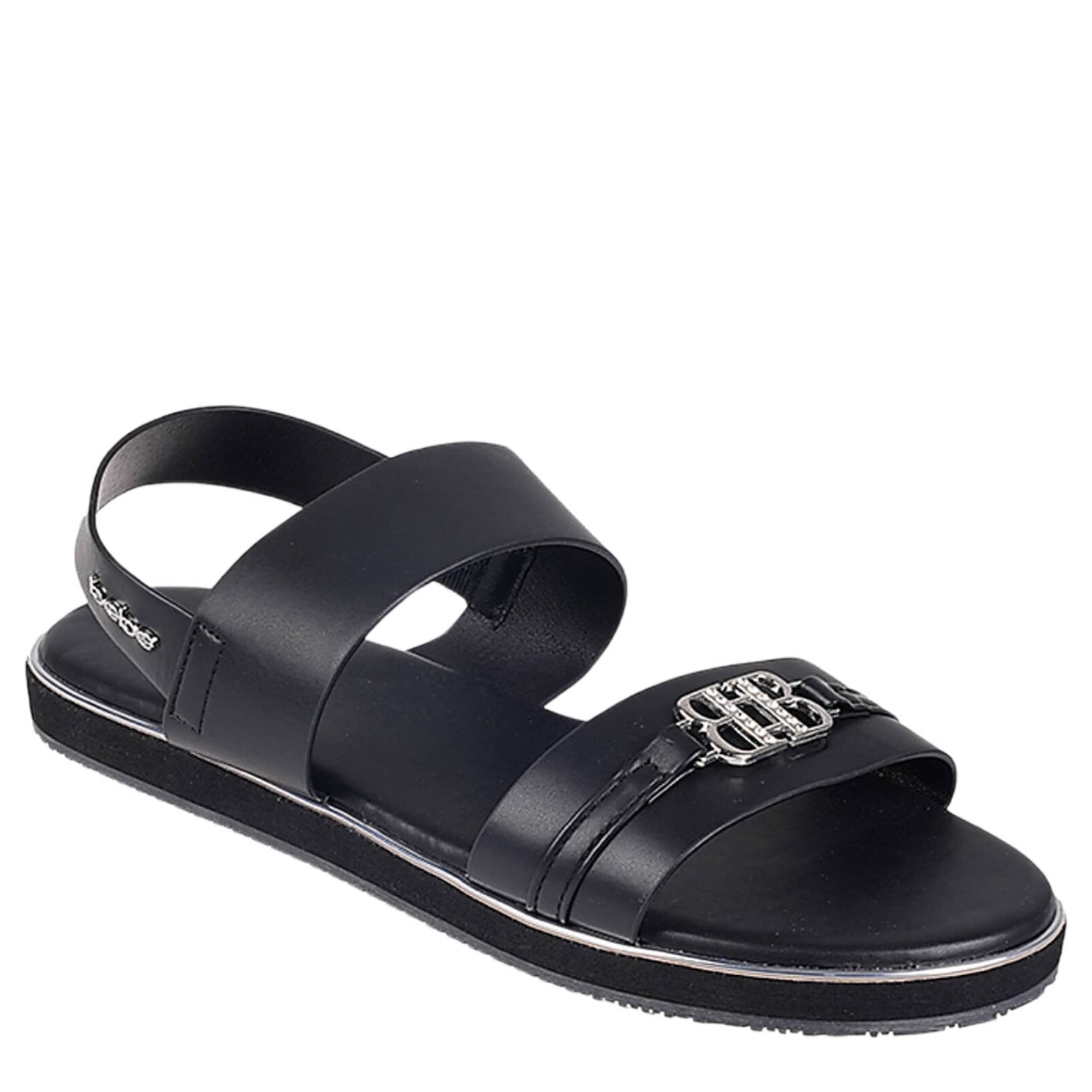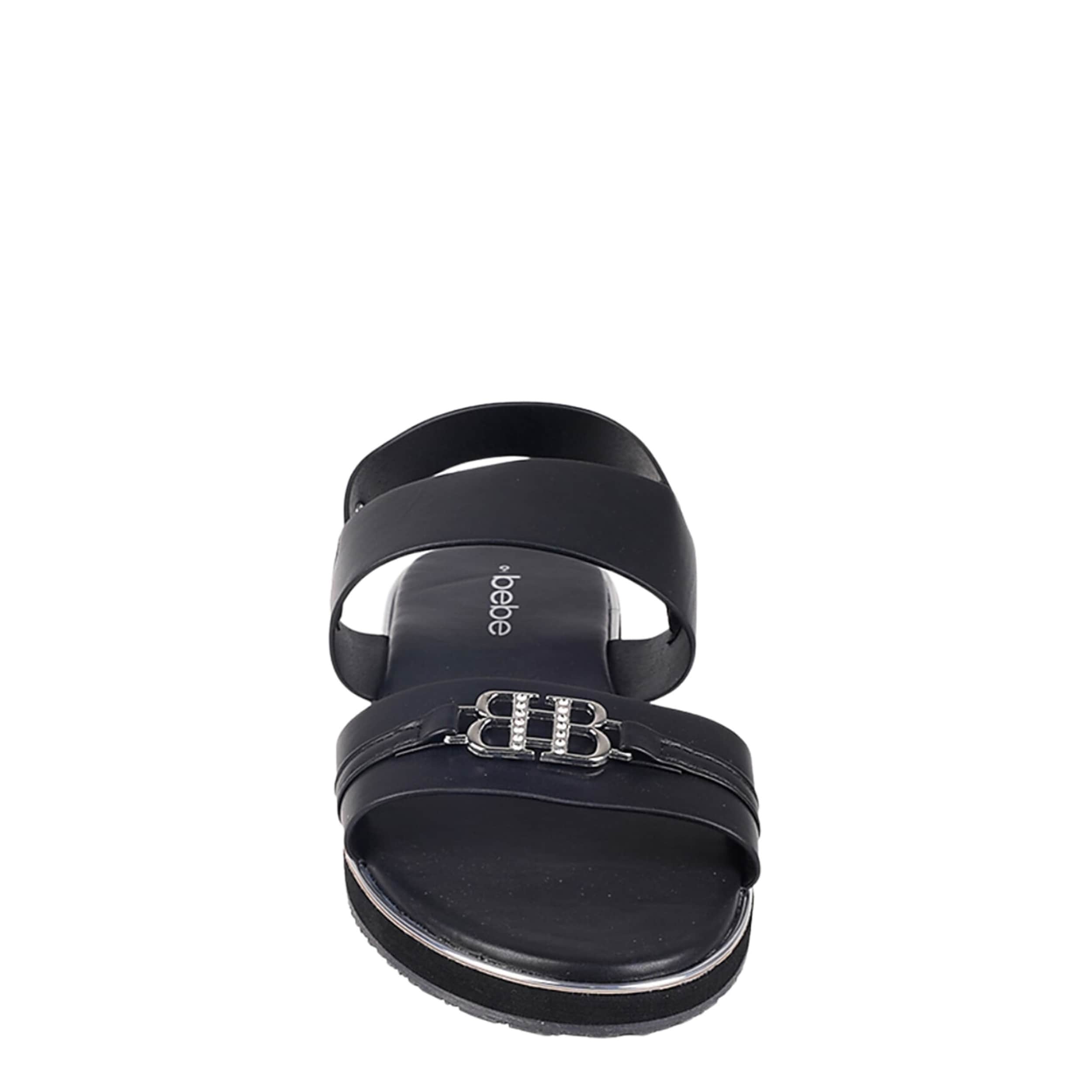 Simple yet stylish, the Eden sandal from bebe is a cute summer favorite. With a faux leather upper featuring an eye-catching “BB" metal logo on the vamp, this sandal is great for hanging out and grabbing food with friends. The footbed and low platform offer cushy support while you're on your feet.