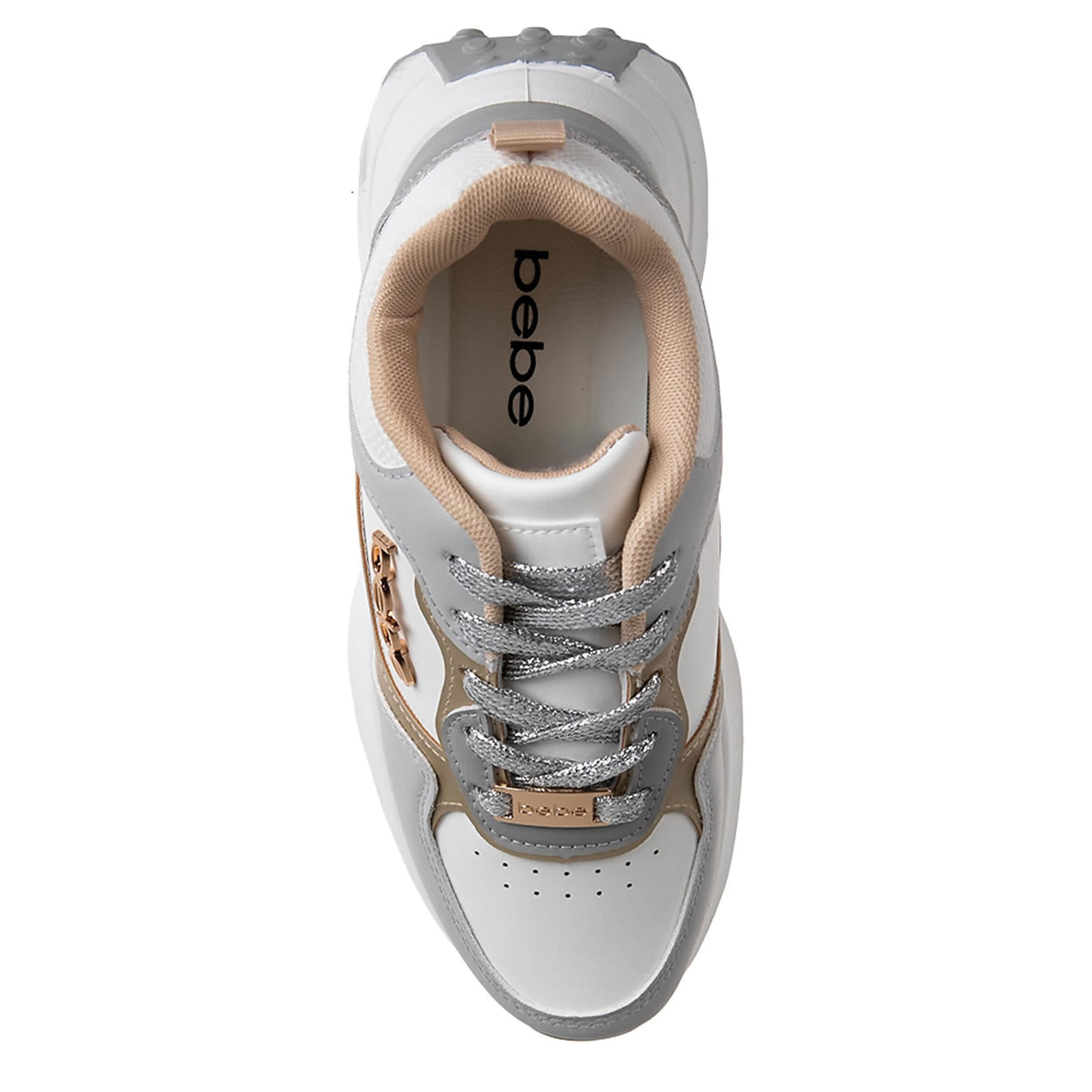 Upgrade your sneaker style with the bebe Eva sneaker. With a color-blocked faux leather upper featuring a sleek “bebe" logo hardware detail, this shoe gives a nostalgic feel with its silhouette. The heel pull tab ensures easy entry, while the padded footbed and traction outsole offer all-day support.