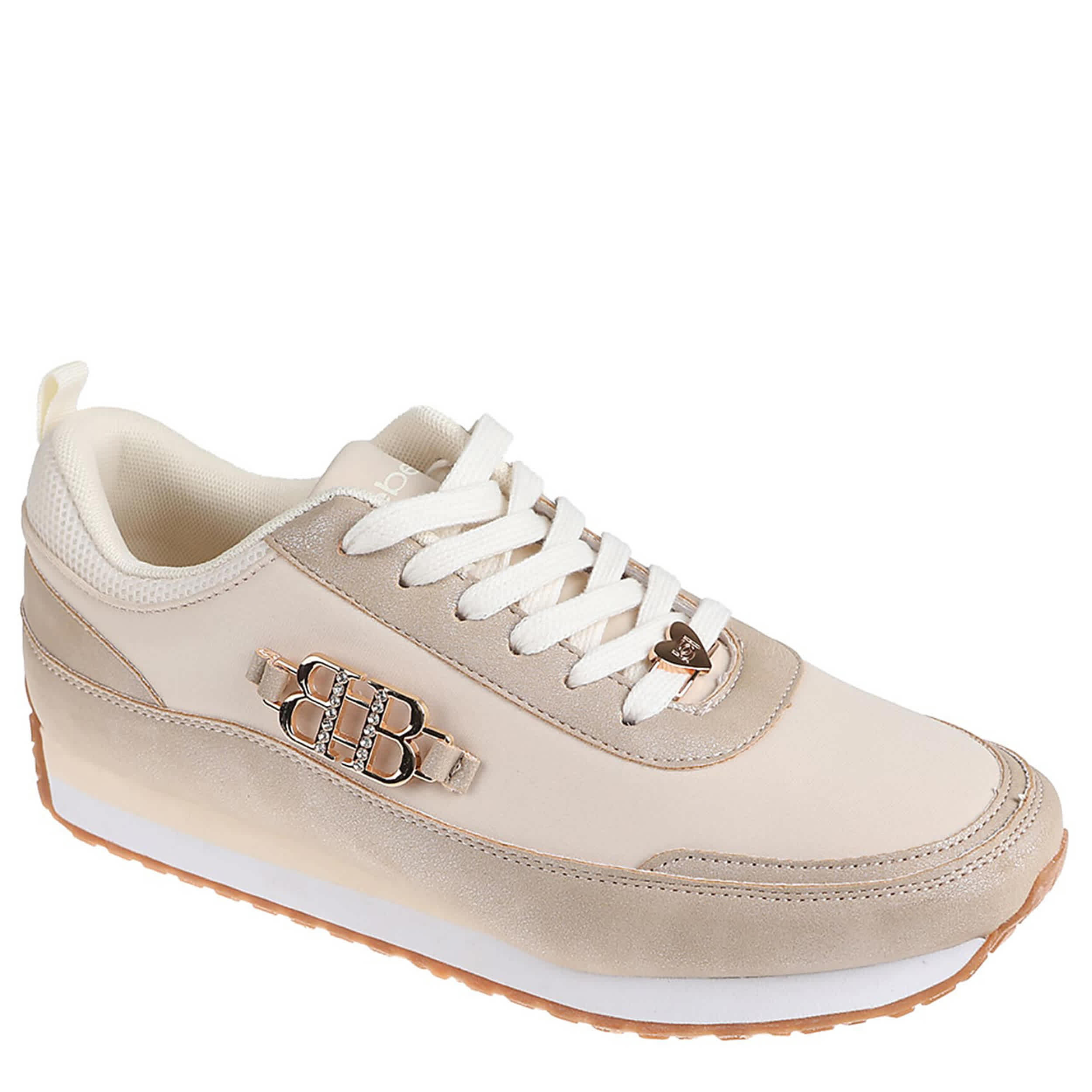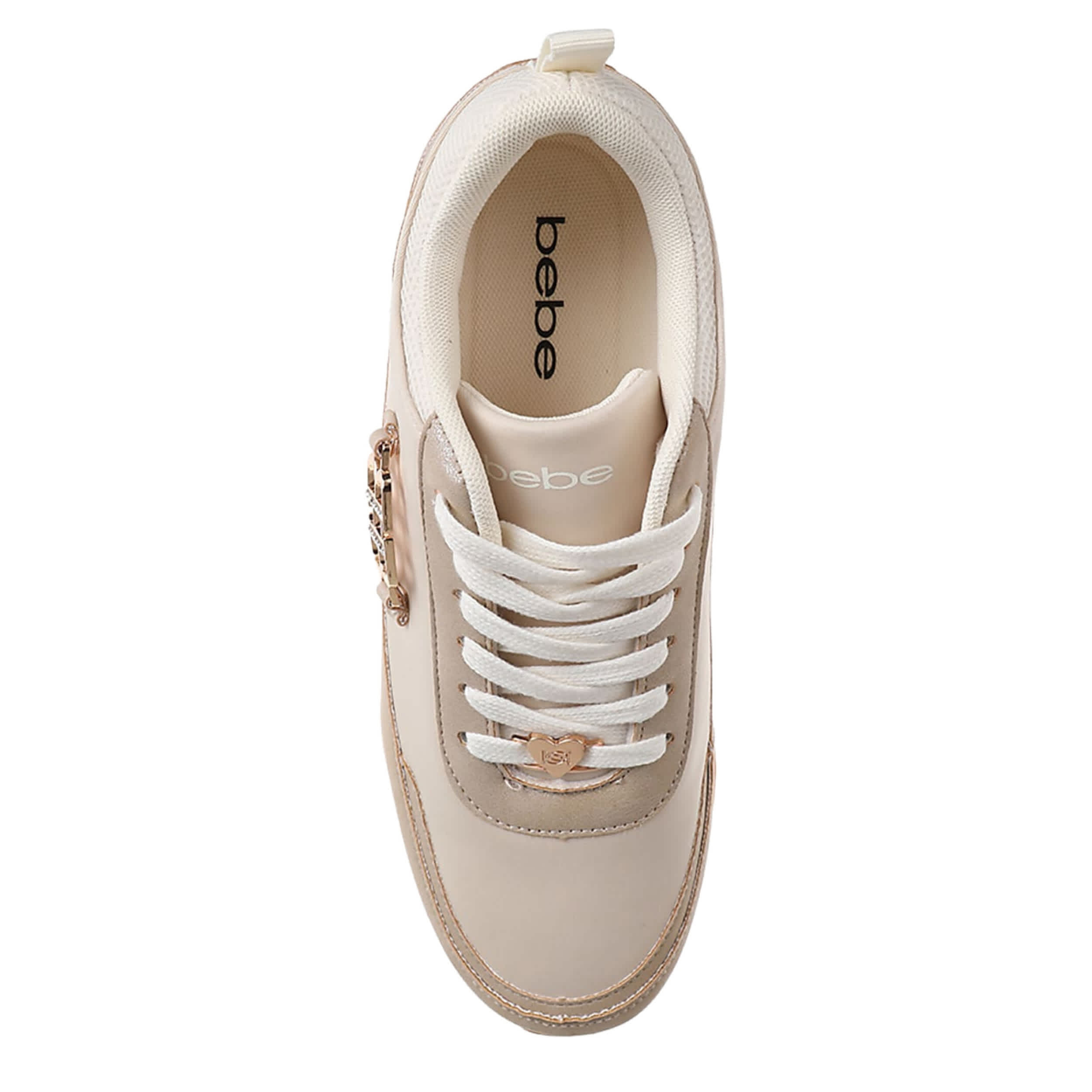 Step up your sneaker game this summer with the bebe Nicole sneaker. Featuring a faux leather upper with a sleek metal side detail, this shoe puts a fashionable spin on your sporty style. The cushioned footbed offers all-day comfort, while the platform sole has a tread pattern for solid traction.