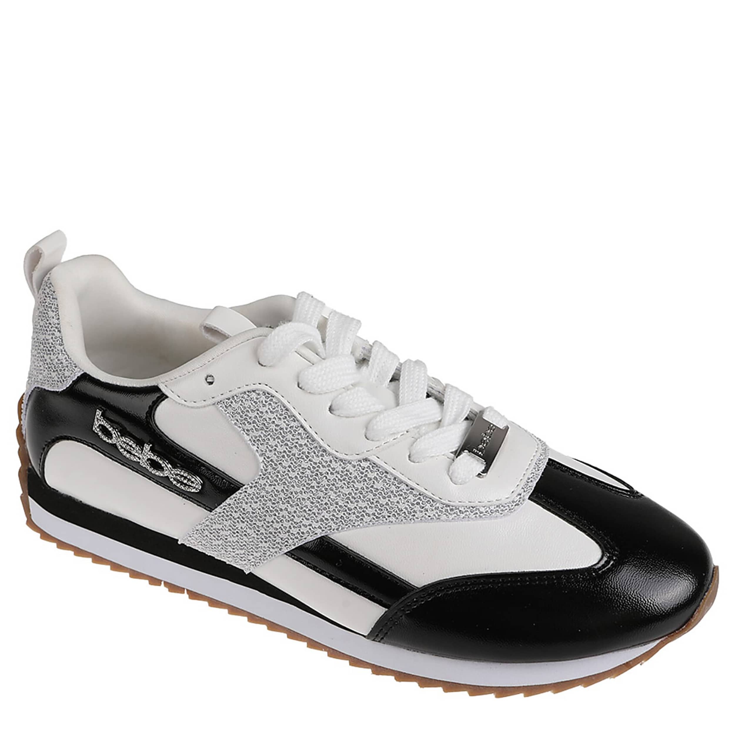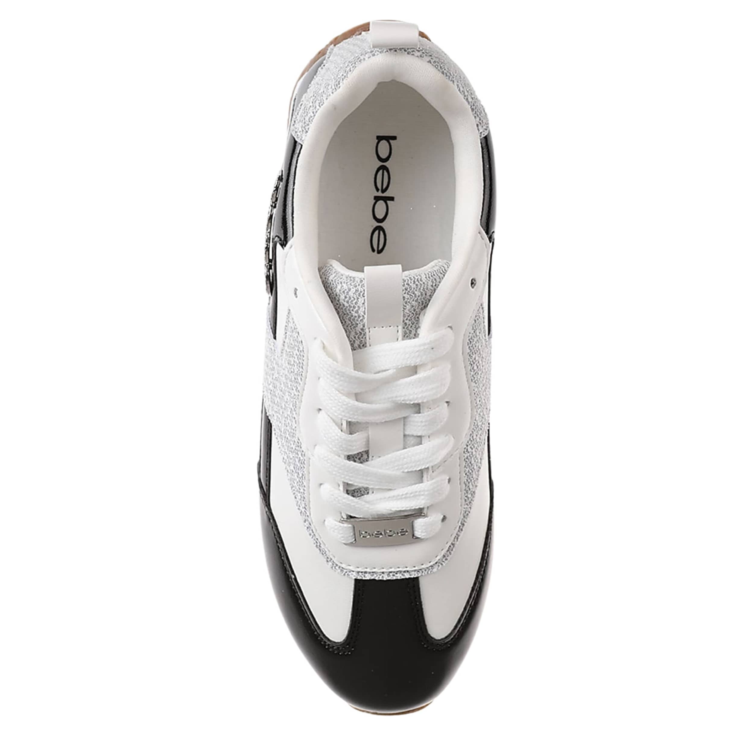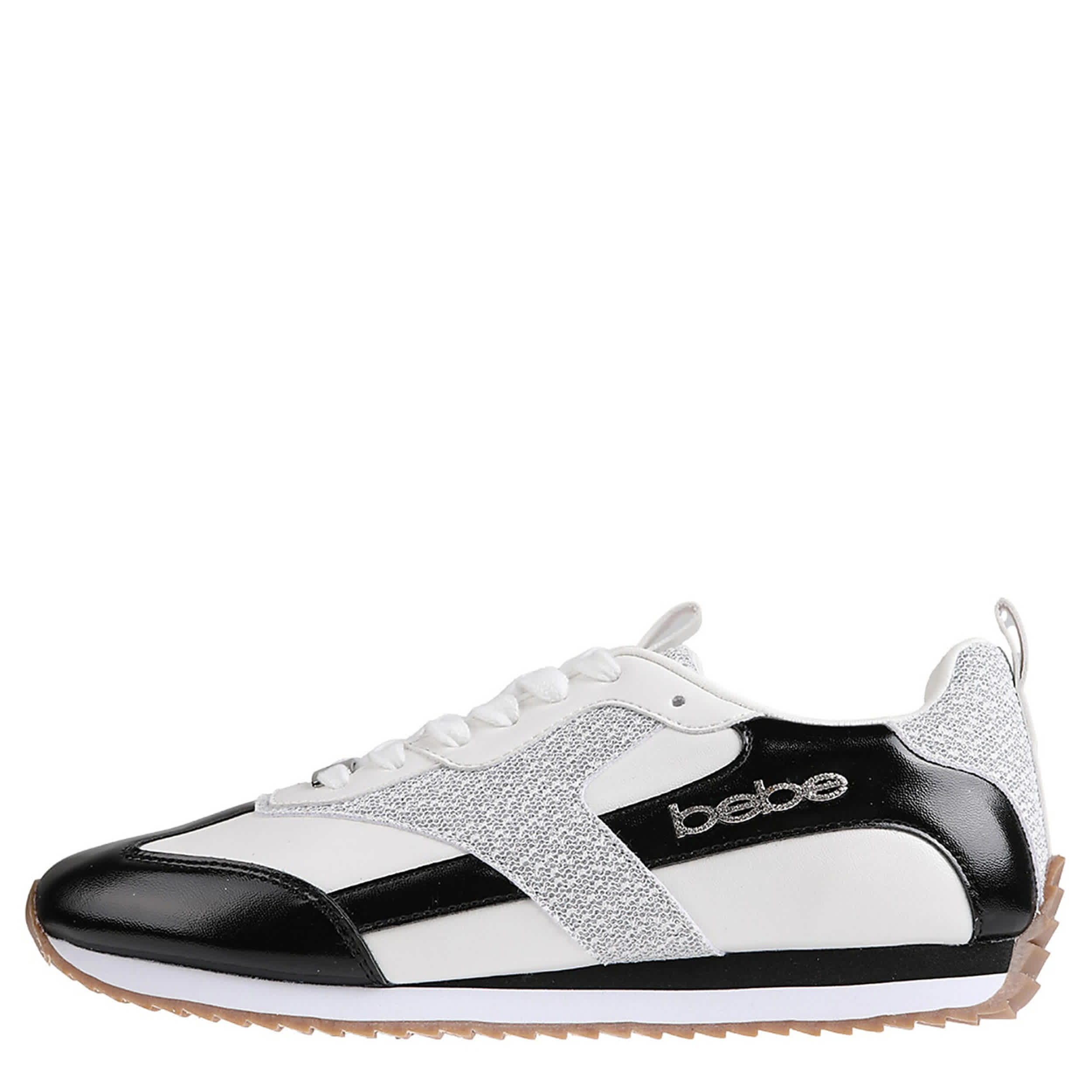 Get the laid-back, elegant look with the bebe Olivia sneaker. Featuring a color-blocked upper with sparkle accents, this versatile shoe can be dressed up or down. The cushioned footbed provides comfort, while the tread pattern outsole ensures traction.