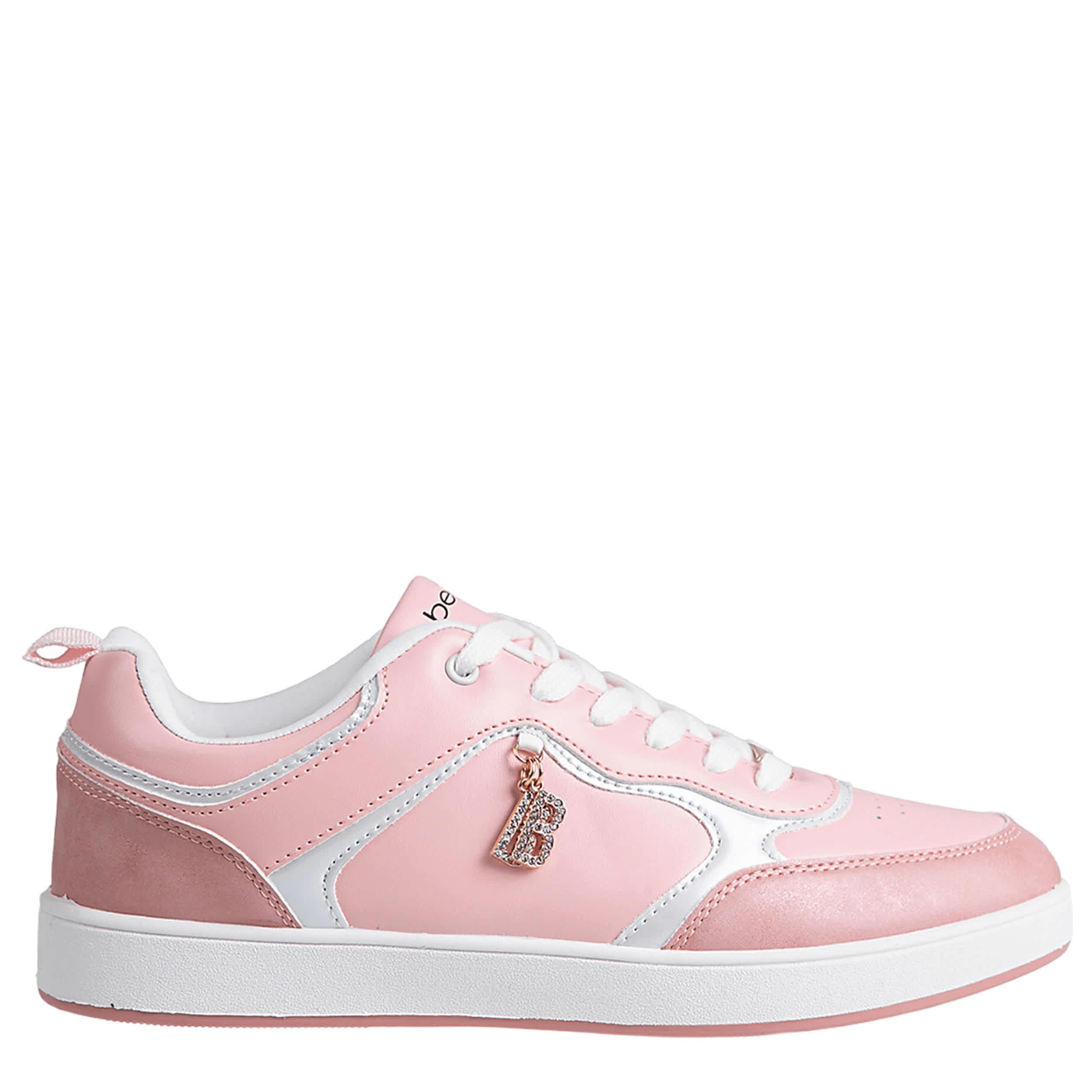 bebe Pepper Women's Sneaker – Blush Effortlessly style trendy outfits with the bebe Pepper sneaker. Featuring a two-toned faux leather upper with dangle charms for extra personality, this shoe is perfect for your everyday errands or when you go out with friends. The cushioned footbed offers all-day comfort, while the synthetic outsole gives traction.