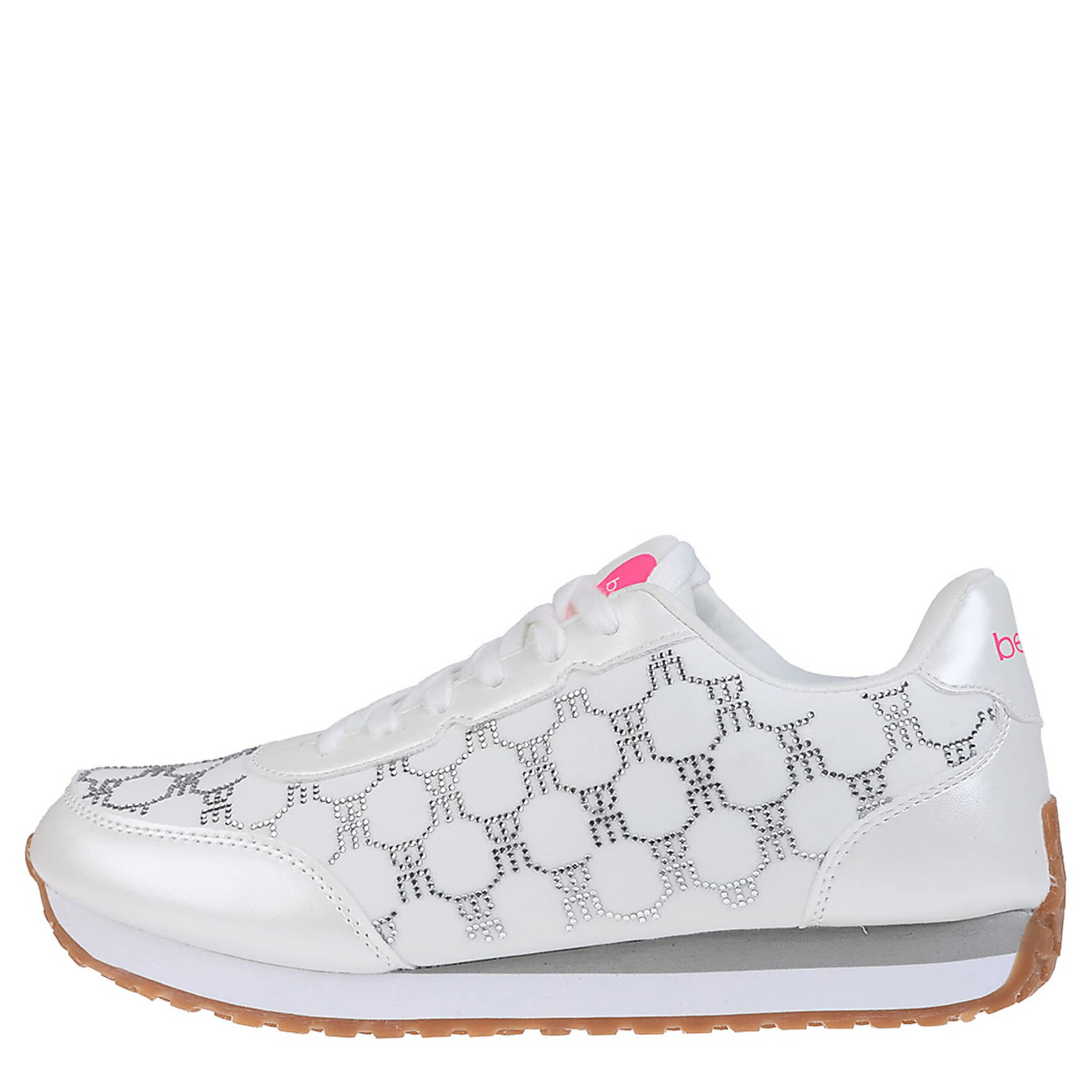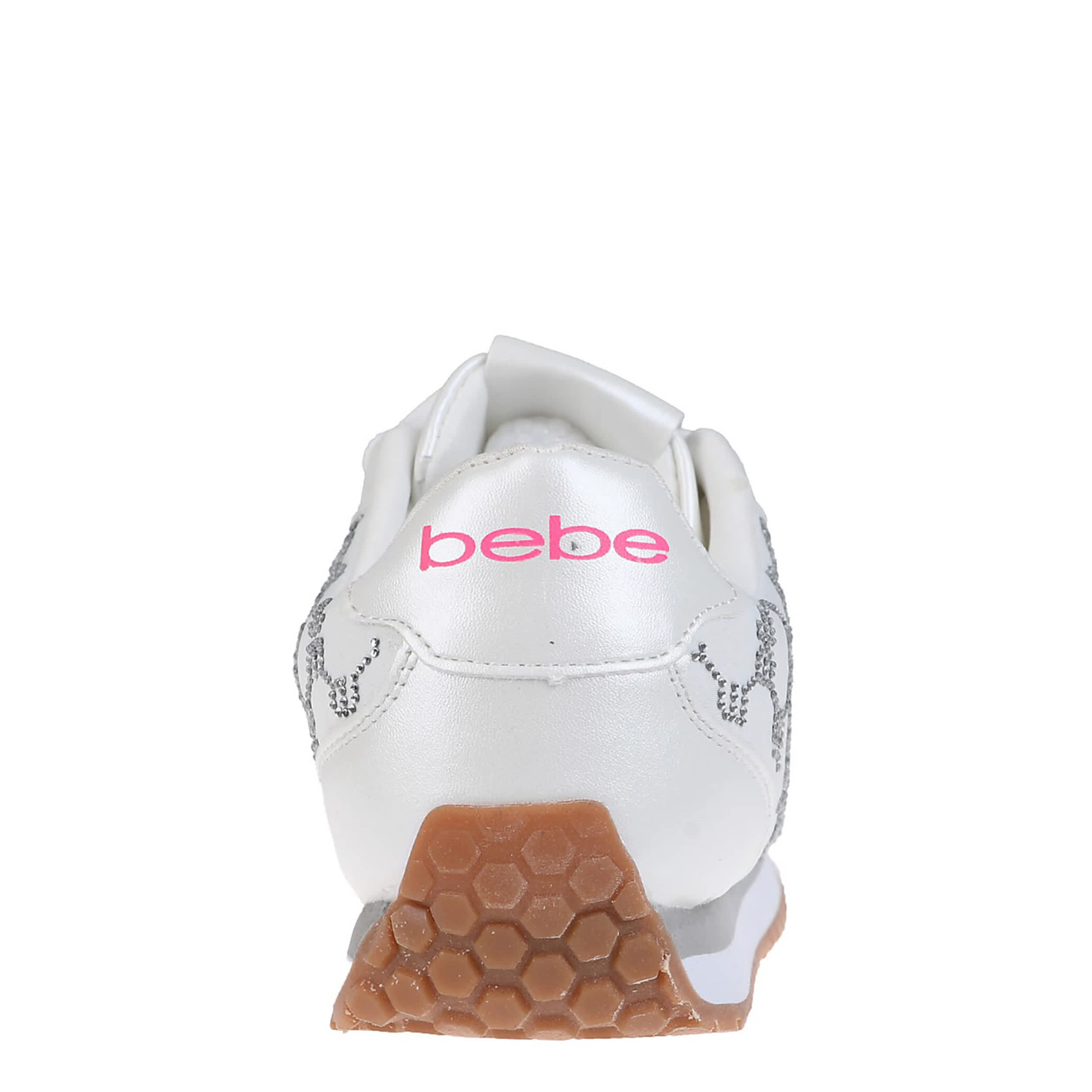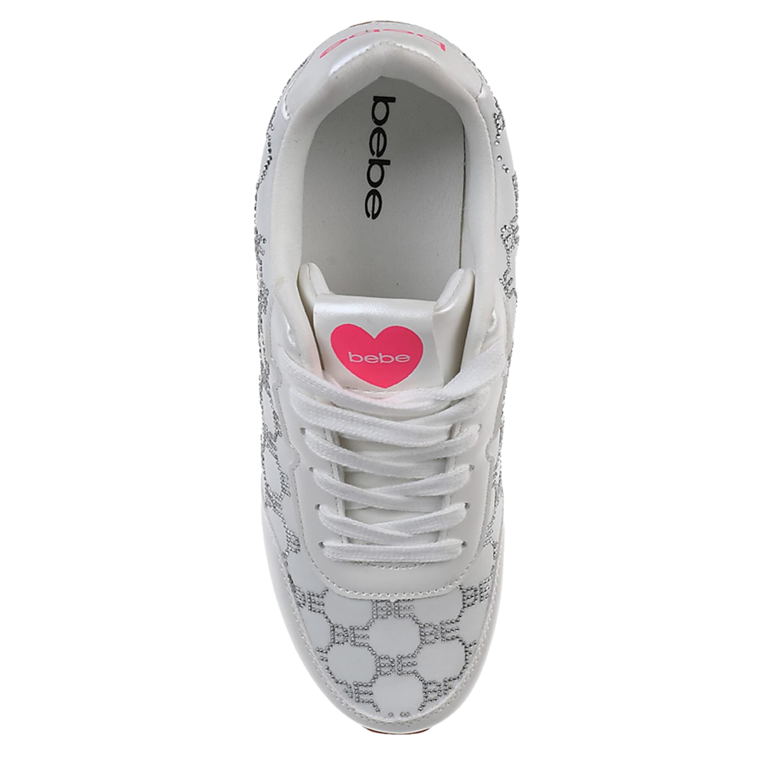 Switch up your everyday look with the bebe Polly sneaker. This shoe exudes sporty elegance with a sleek faux leather upper and allover symmetrical print. The cushioned footbed comforts your steps, while the tread pattern outsole offers enhanced traction.