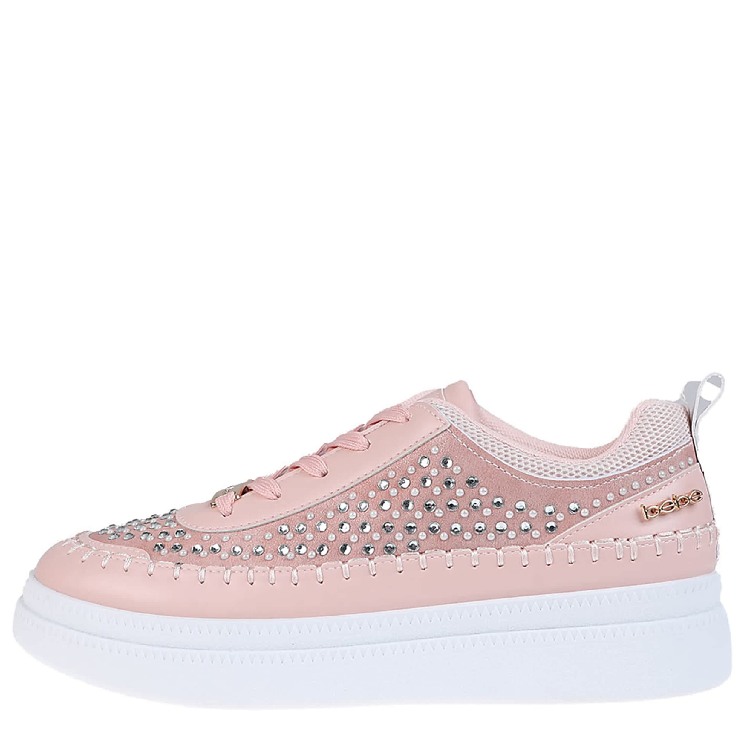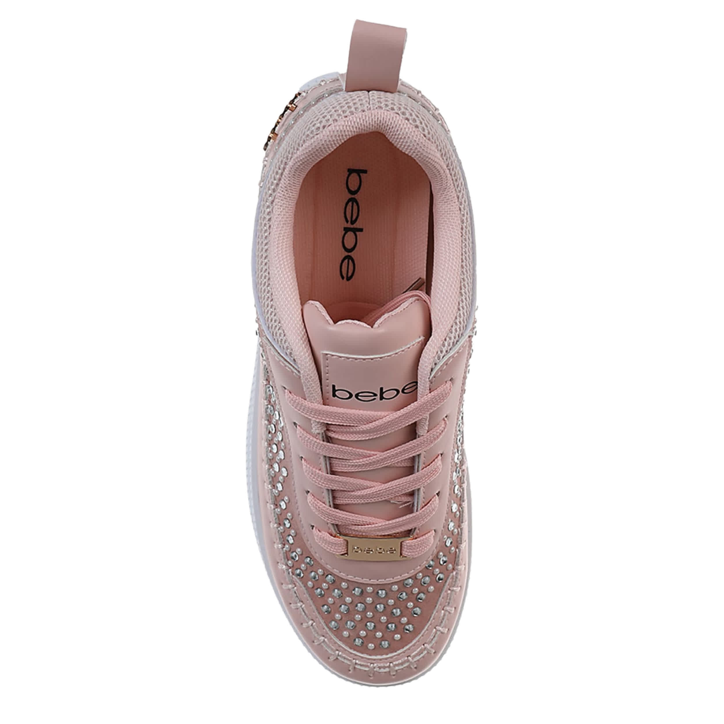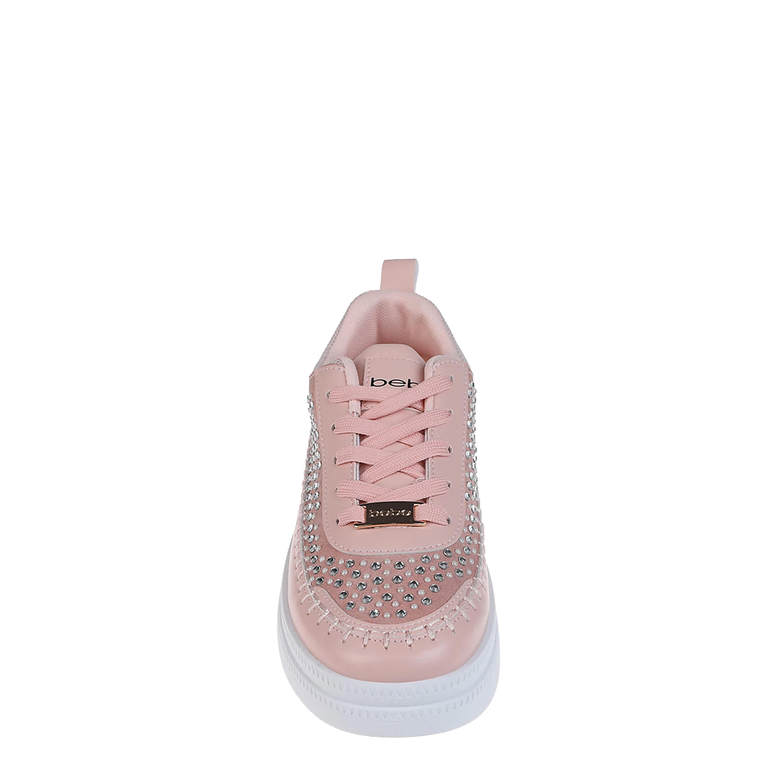 Glam up your sneaker game with the bebe Quinn sneaker. Featuring a faux leather upper with allover rhinestone detailing, this shoe adds a sparkly touch to any outfit. The cushioned footbed comforts your steps, while the platform sole adds some height to your look.