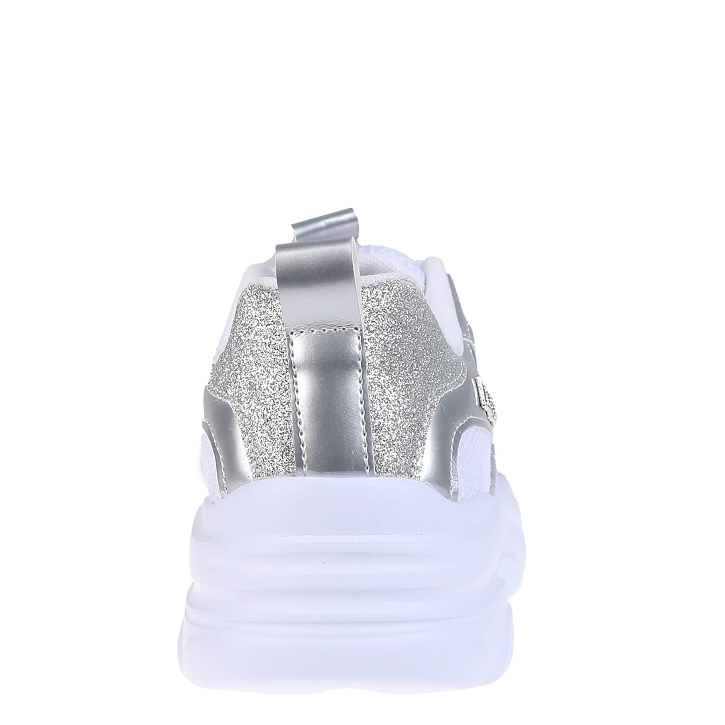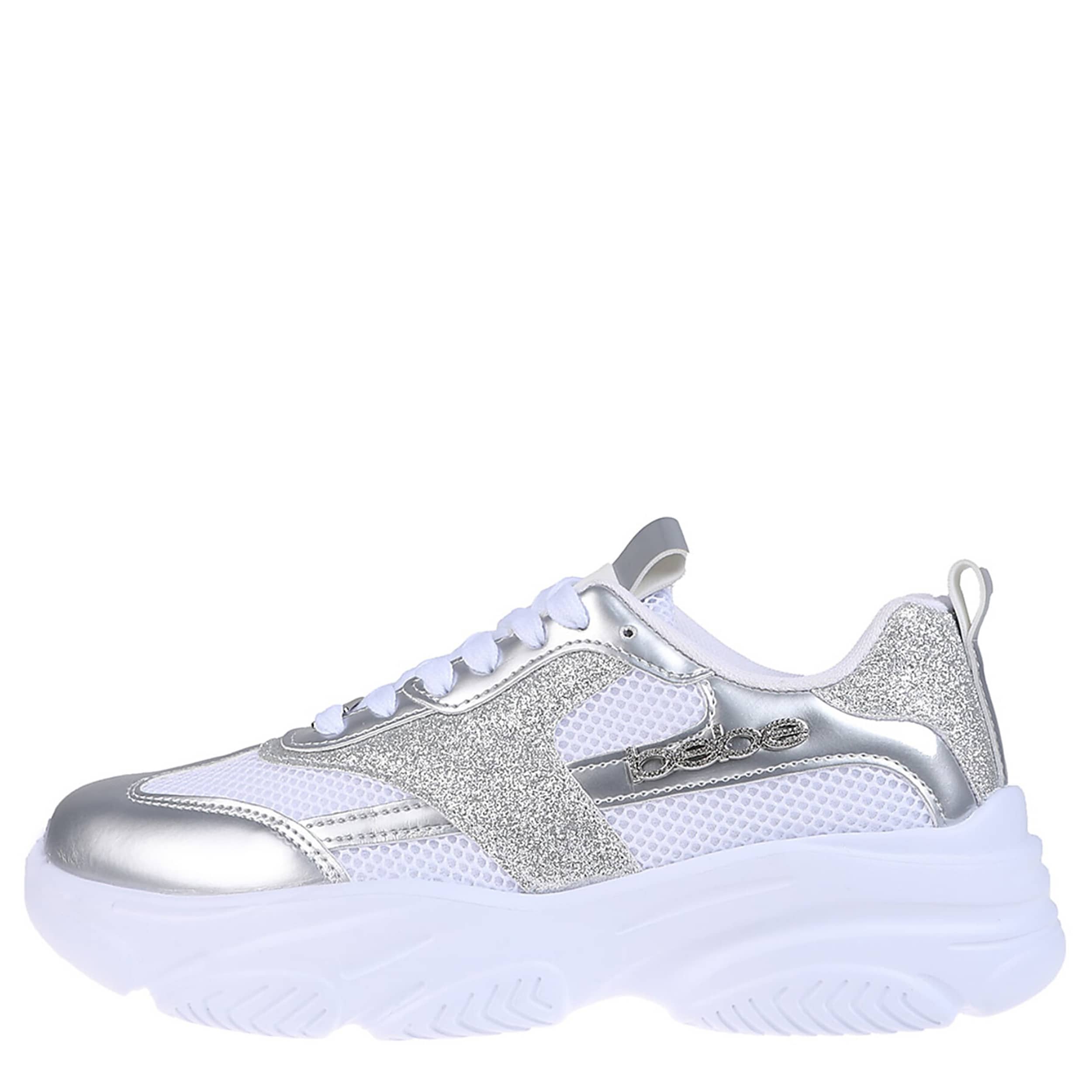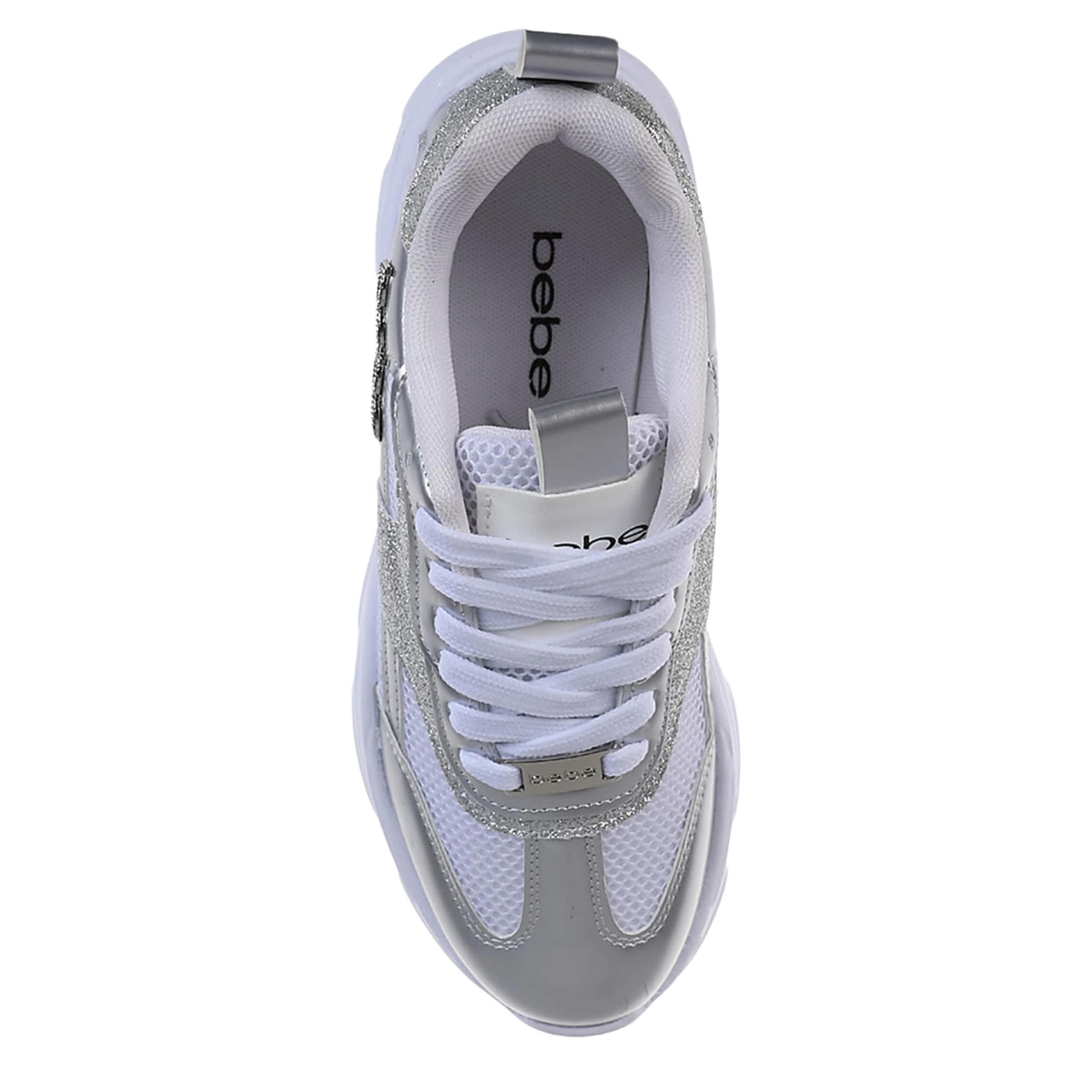 Embody Y2K style this summer in the bebe Sadie sneaker. Featuring a faux leather upper with sparkly and metallic accents, this shoe is nostalgic yet modern with its timeless silhouette. The heel pull tab ensures easy entry, while the cushioned footbed and synthetic outsole offer all-day support.