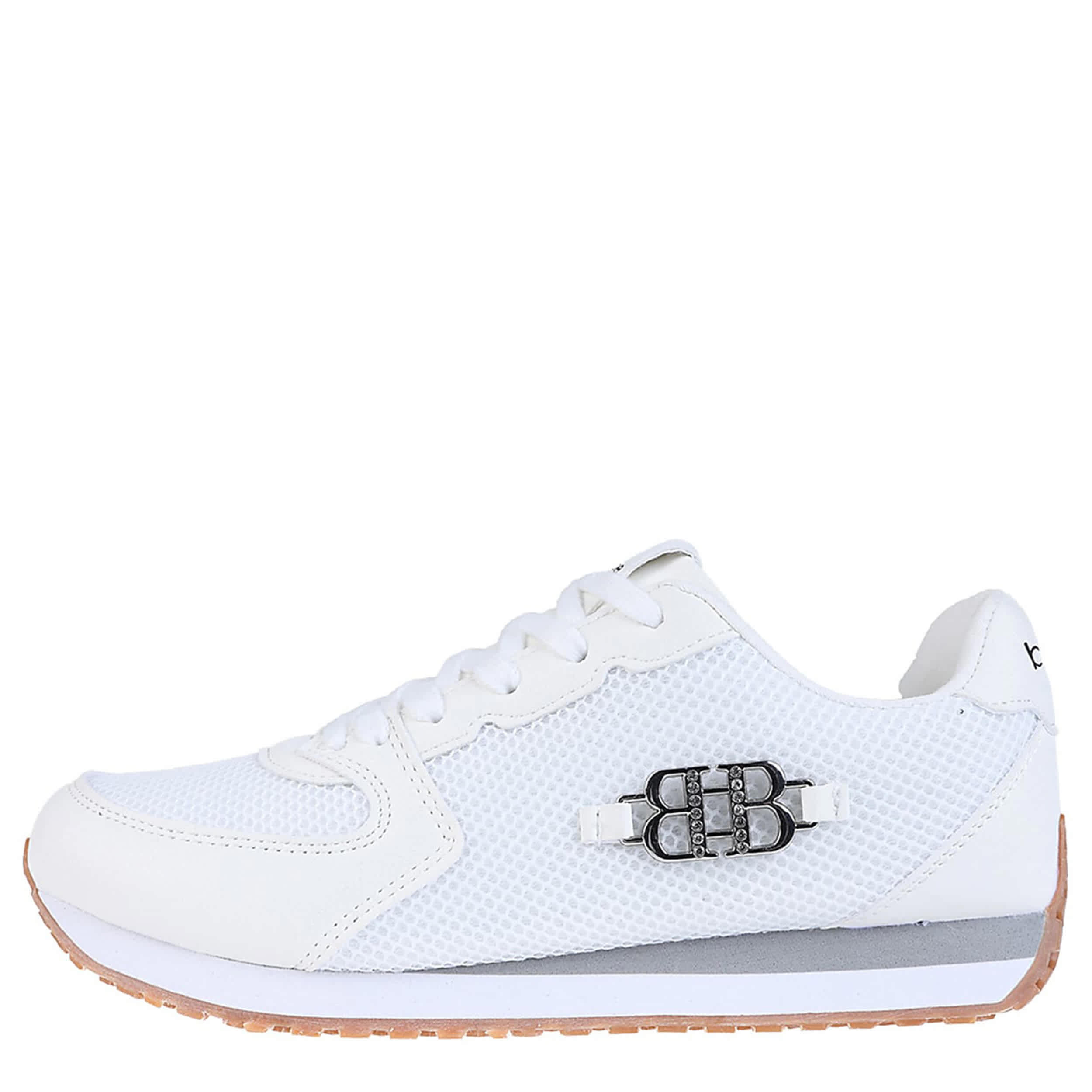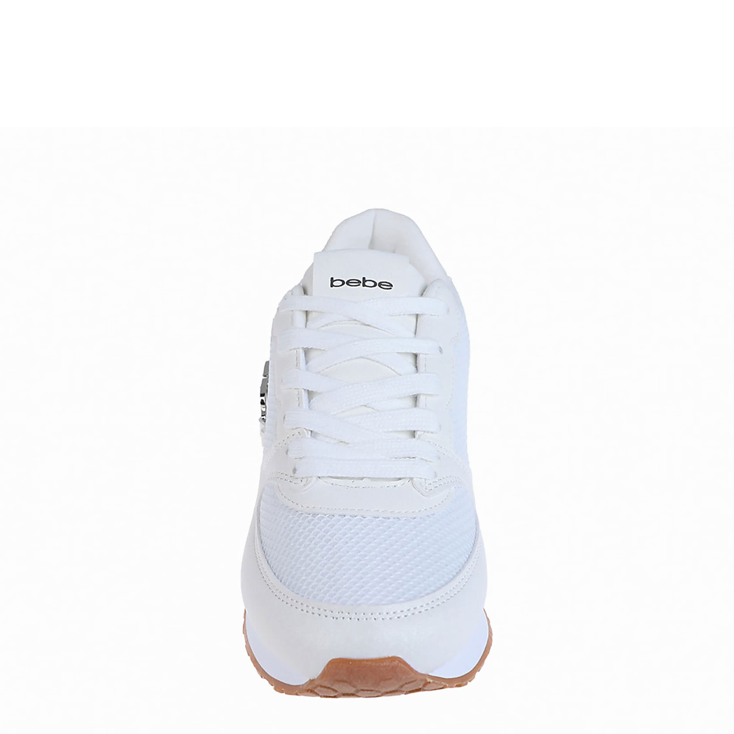 The bebe Sapphire sneaker will be your new summer sneaker. With a faux leather upper featuring a sleek metal detail on the side, this pair gives a stylish, sporty touch to any outfit. The cushioned footbed offers all-day comfort, while the traction outsole keeps you grounded.