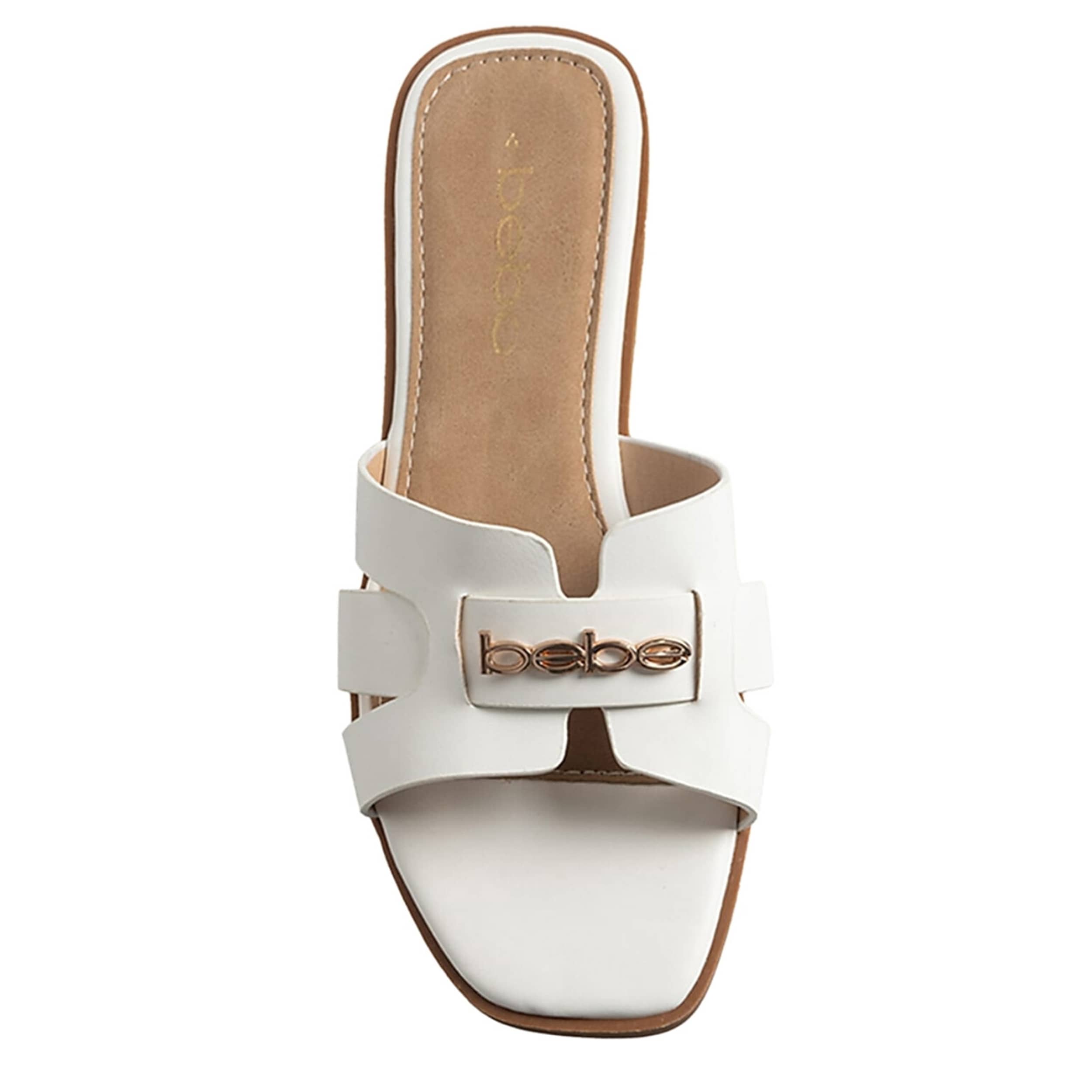 Slide on chic sophistication this summer with the bebe Viv slide sandal. Featuring a faux leather upper with a “bebe" logo detail for extra style, this H-strap sandal exudes savoir-faire. The insole soothes your foot, while the durable outsole adds textured traction.