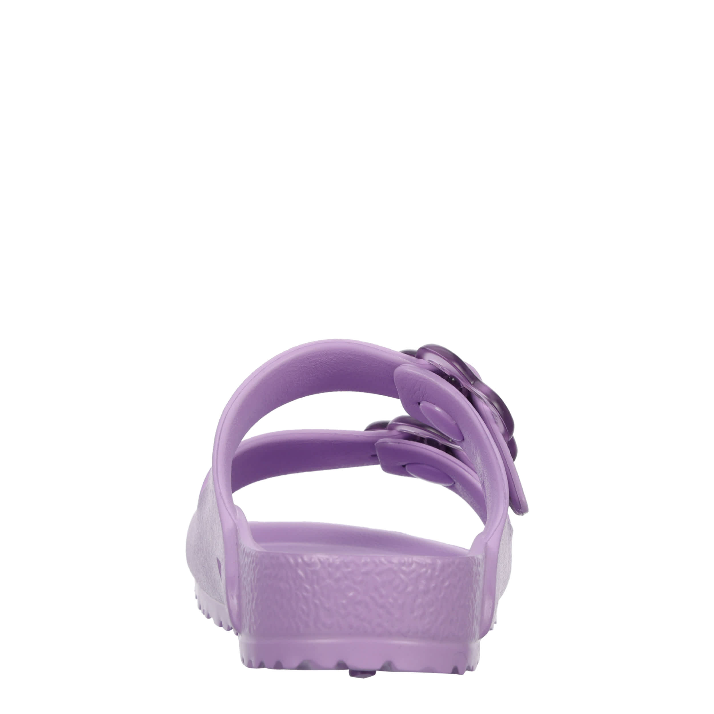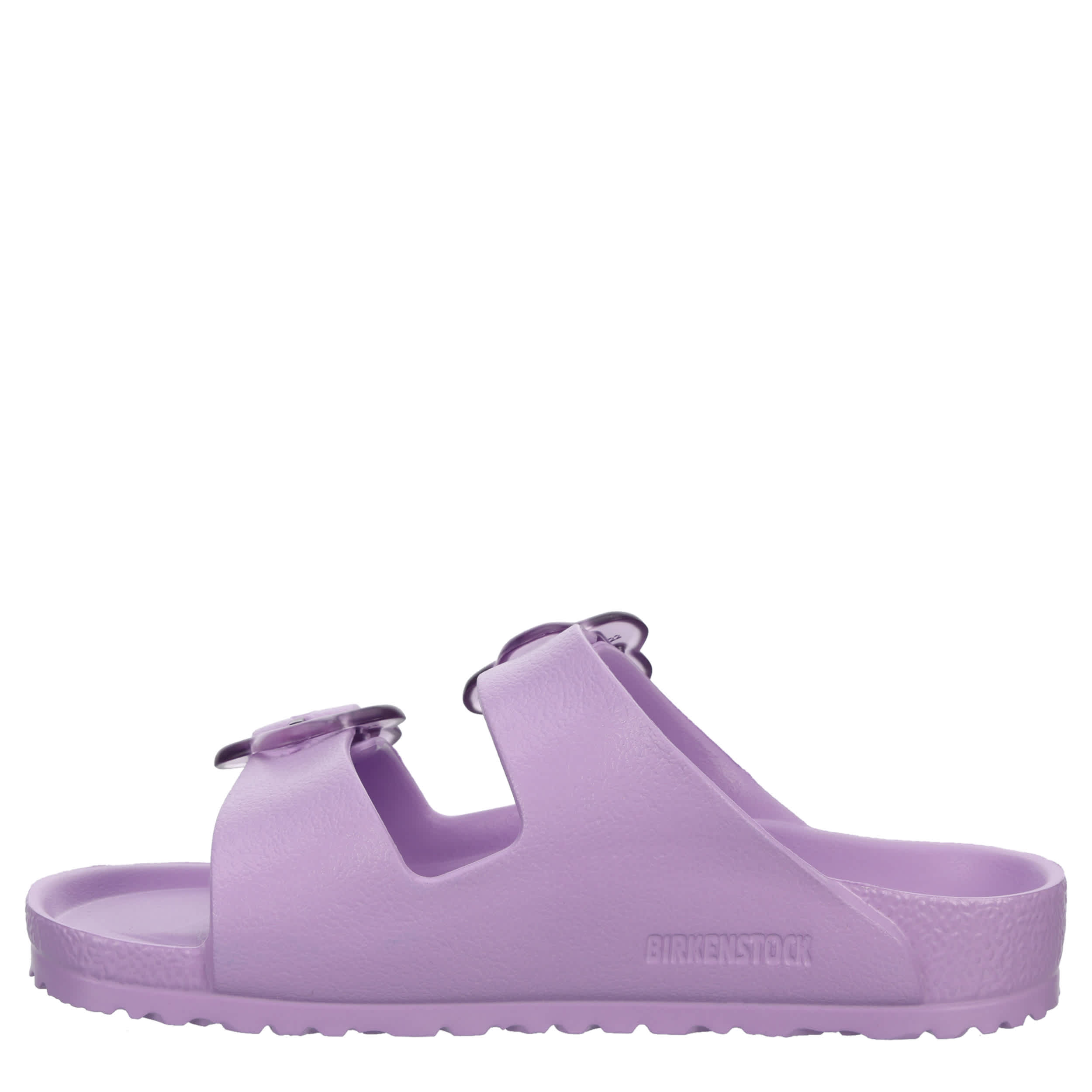 Take the fun outside in the BIRKENSTOCK Arizona Flower Buckle girls' footbed sandal. With an EVA upper, this sandal still offers the pronounced arch support, roomy toe box, and deep heel cup your little one absolutely loves. Two straps with translucent floral buckles provide an adjustable fit.