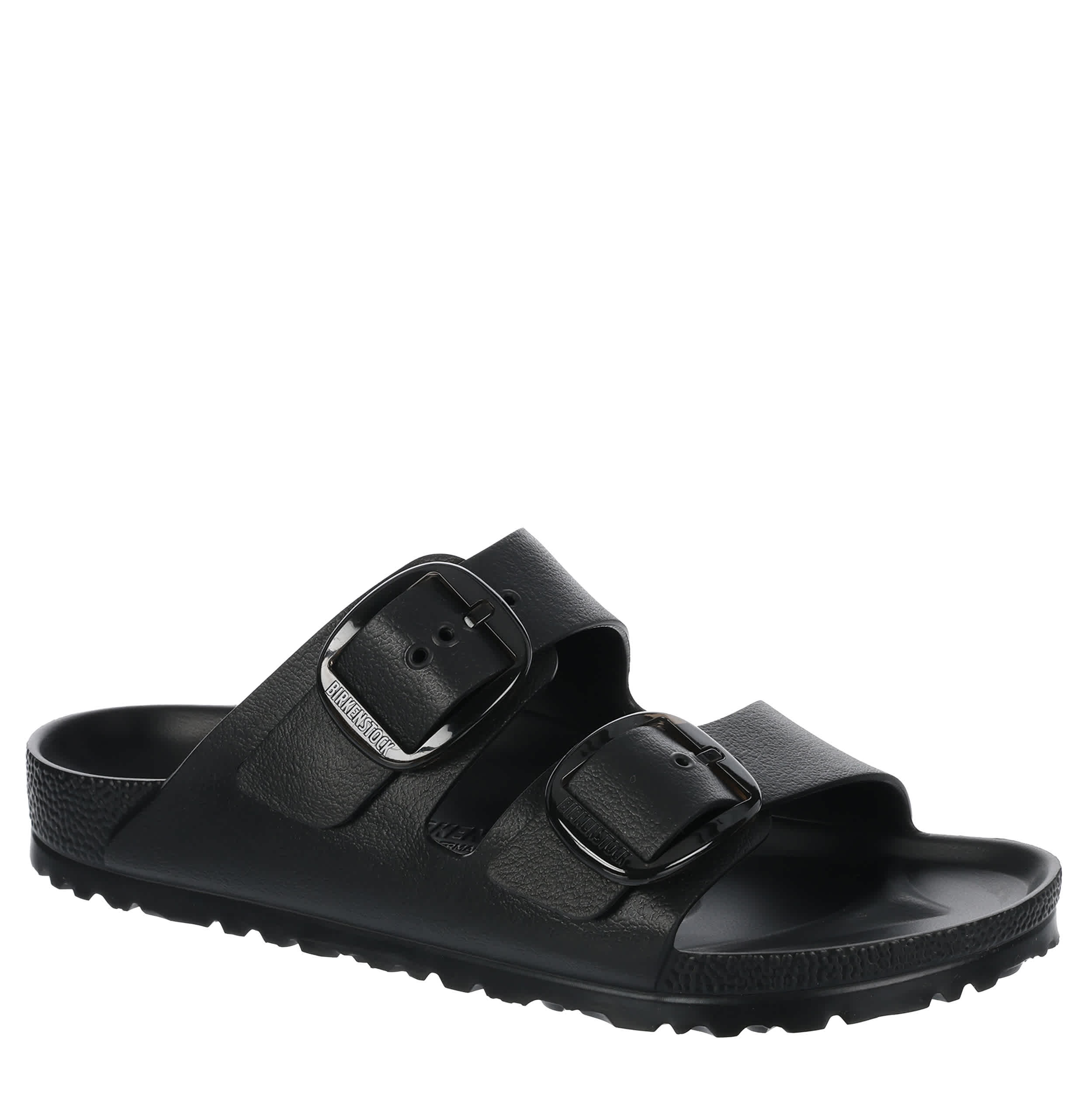 A true pioneer of laid-back comfort, the Arizona Essentials Big Buckle women's slide sandal by BIRKENSTOCK provides the essentials: an EVA footbed that contours to support, a roomy toe box, and a deep heel cup. Two large pin buckle straps provide an adjustable fit that'll accompany you around the house and everywhere else come summer.