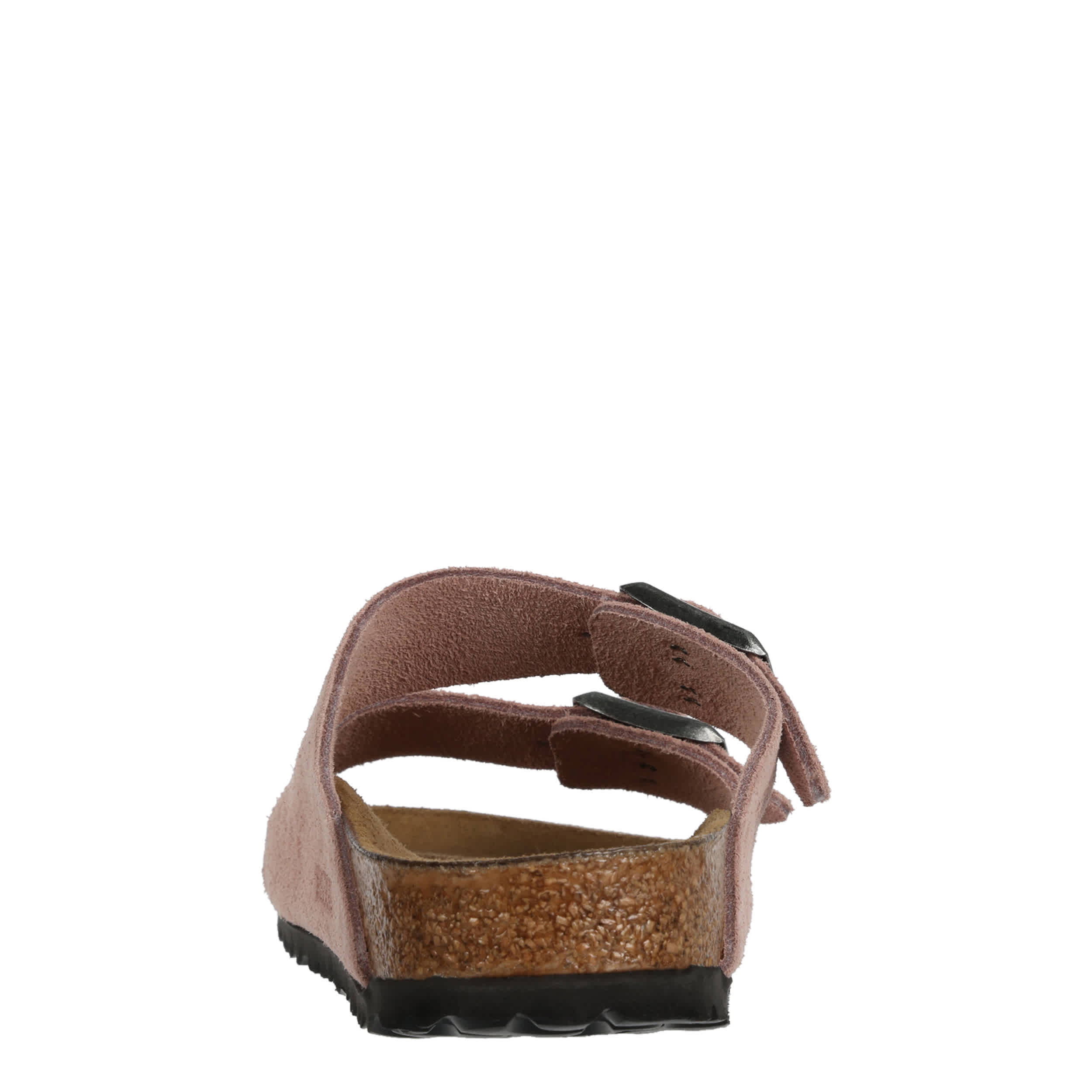 A true pioneer of laid-back comfort, the Arizona women's sandal from BIRKENSTOCK features the original footbed with pronounced arch support, a roomy toe box, and a deep heel cup. Two soft Birkibuc® straps with buckles provide an adjustable fit.