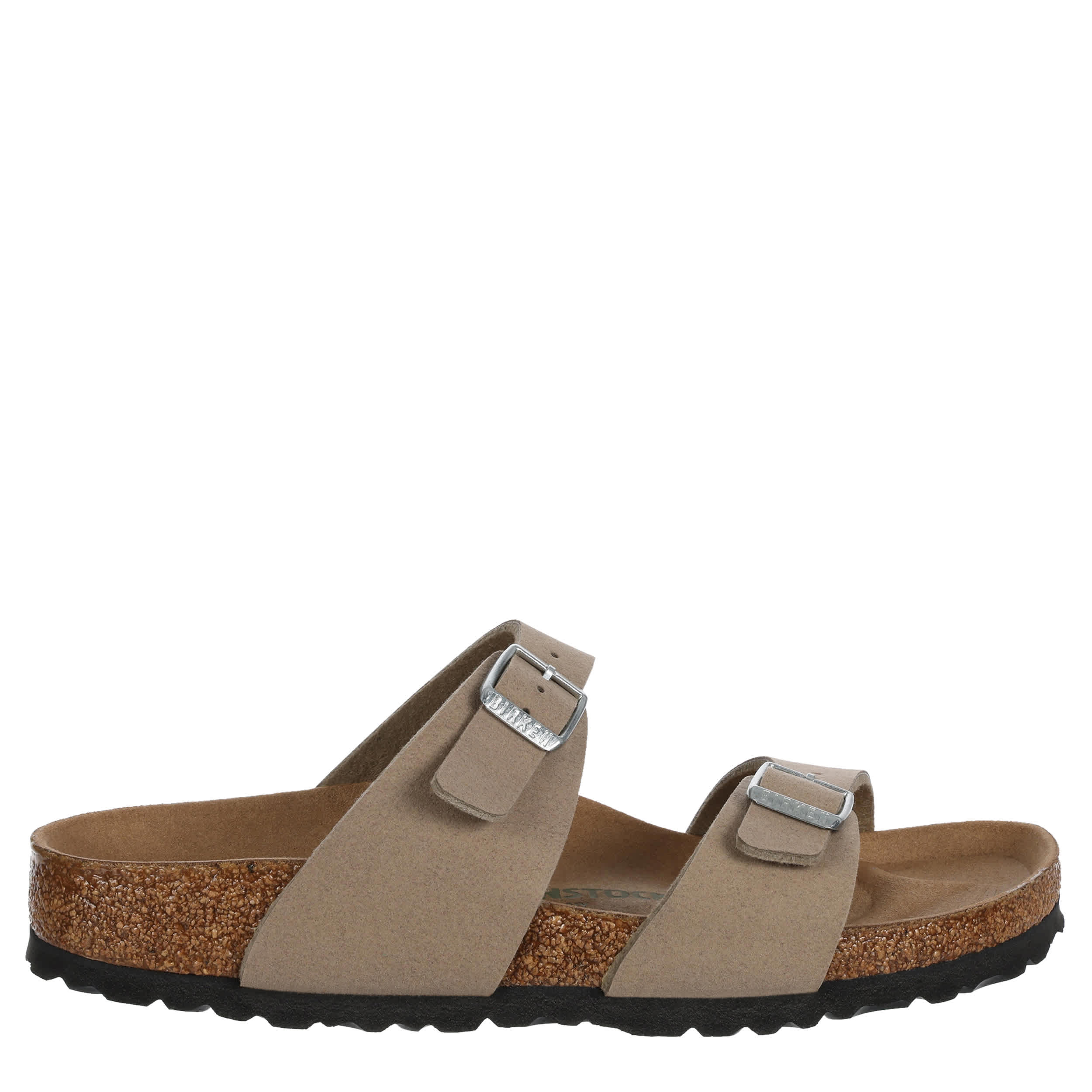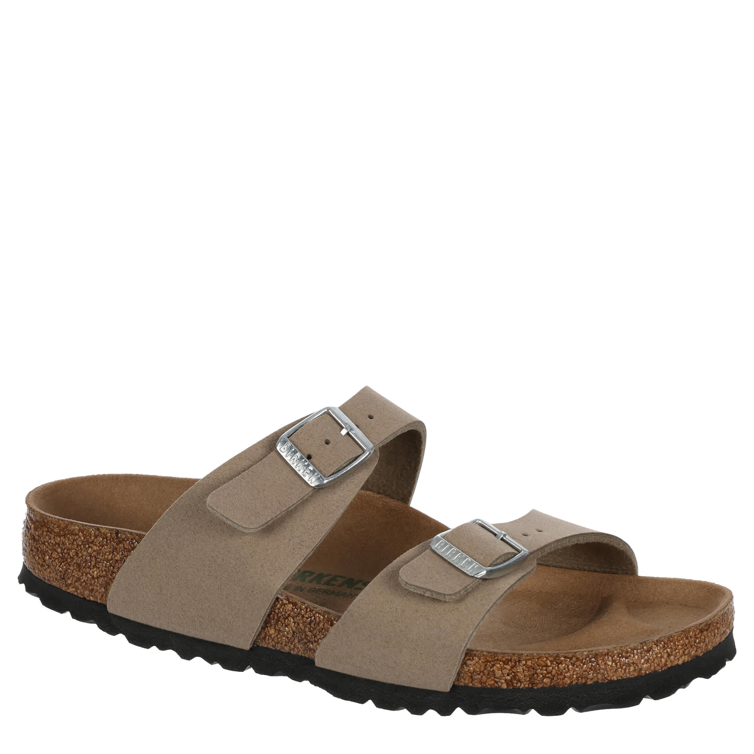 Turn your everyday sandal into high fashion with the Sydney Vegan footbed sandal from Birkenstock. Featuring a synthetic upper with modern, edgy style, this dual buckle strap sandal creates a chic look. The microfiber insole & contoured footbed comfortably support your foot with each step.
