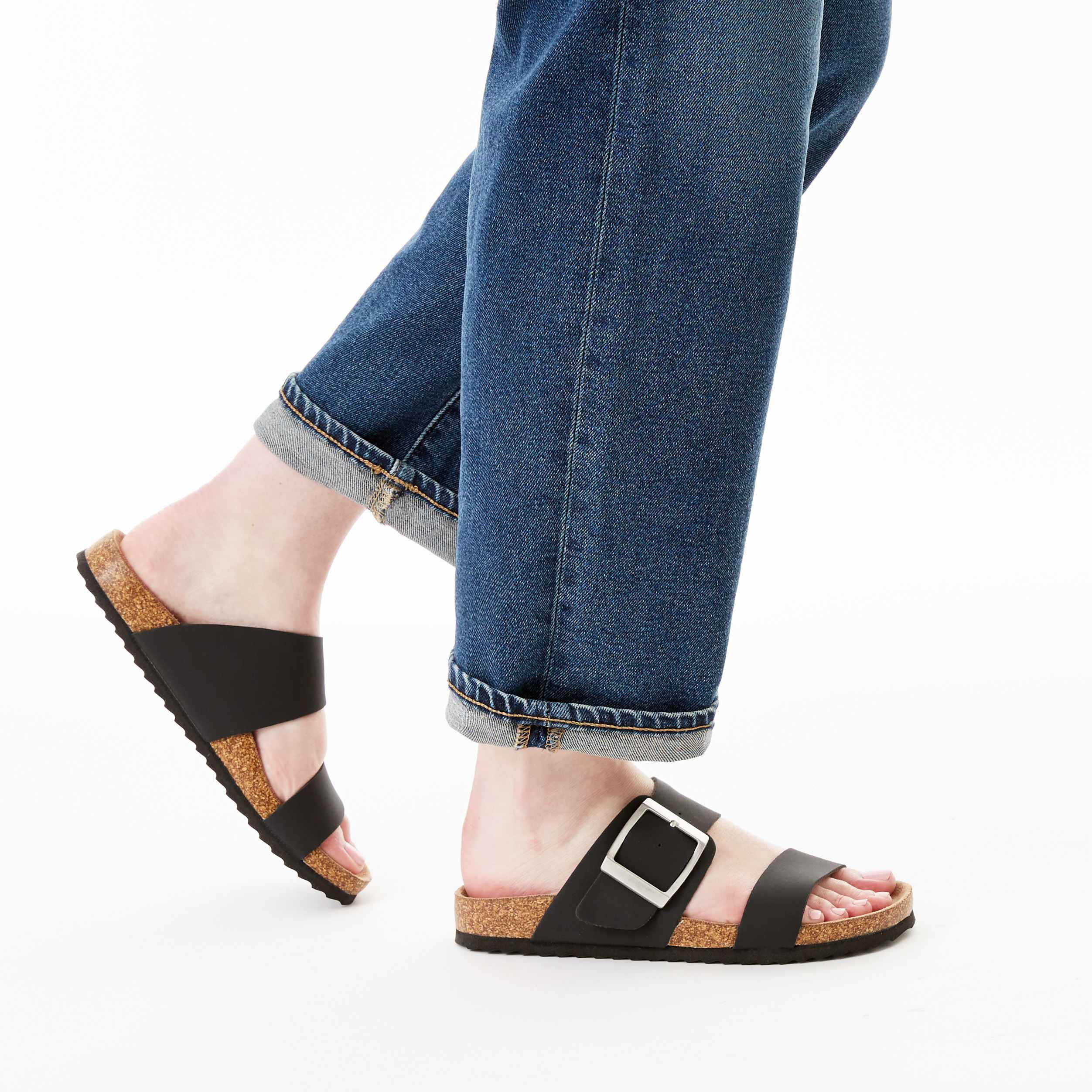 Enjoy everyday comfort in the Courtney women's footbed sandal from Bjorndal. With a faux leather upper featuring an adjustable buckle strap for a custom fit, this slip-on sandal pairs well with jeans or a casual dress. The cushioned footbed & cork midsole cradle your foot, while the durable outsole provides excellent traction wherever you go.