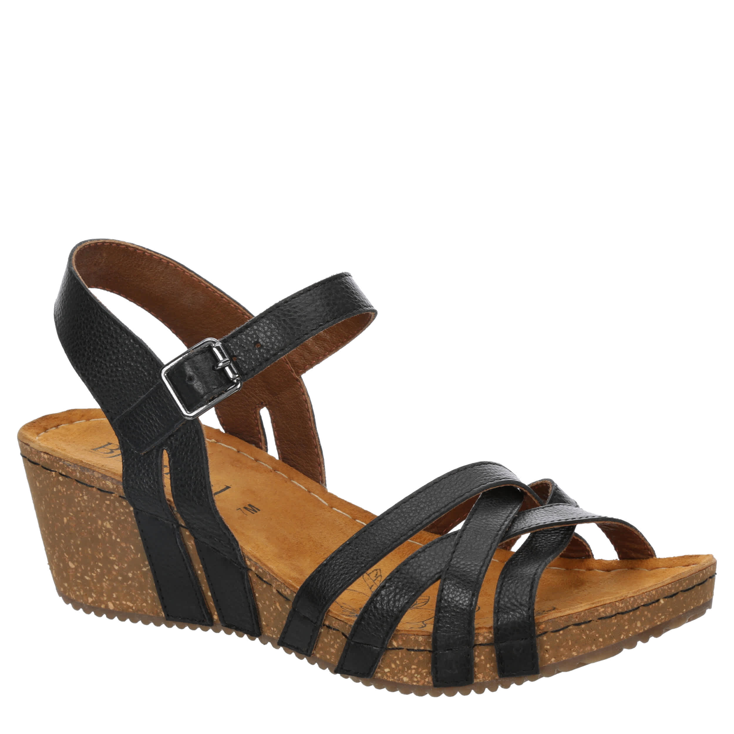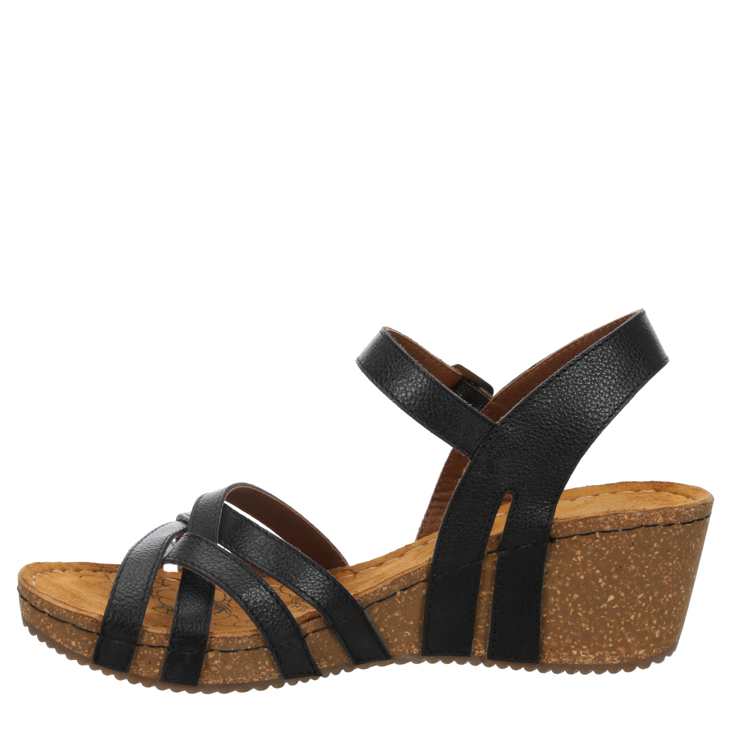 Move through summer in style with the Flora wedge sandal from Bjorndal. Featuring a strappy faux leather upper, this versatile sandal pairs well with jeans or a dress. The footbed soothes, while the traction sole gives stability to a nice lift.